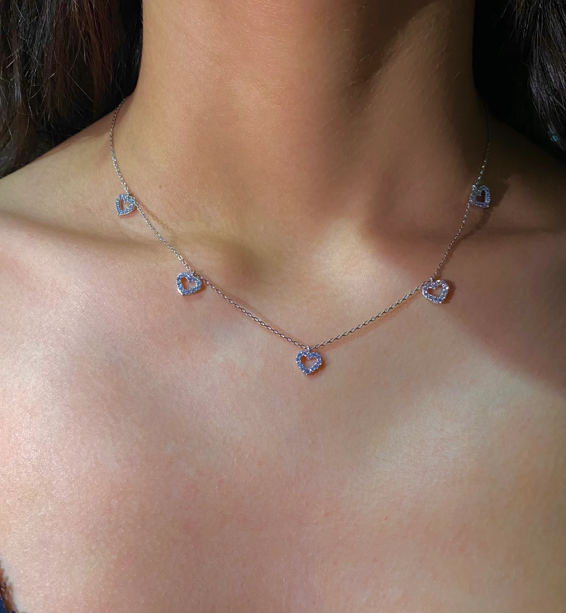 925 Ayar Gümüş 5 Kalpli Kolye