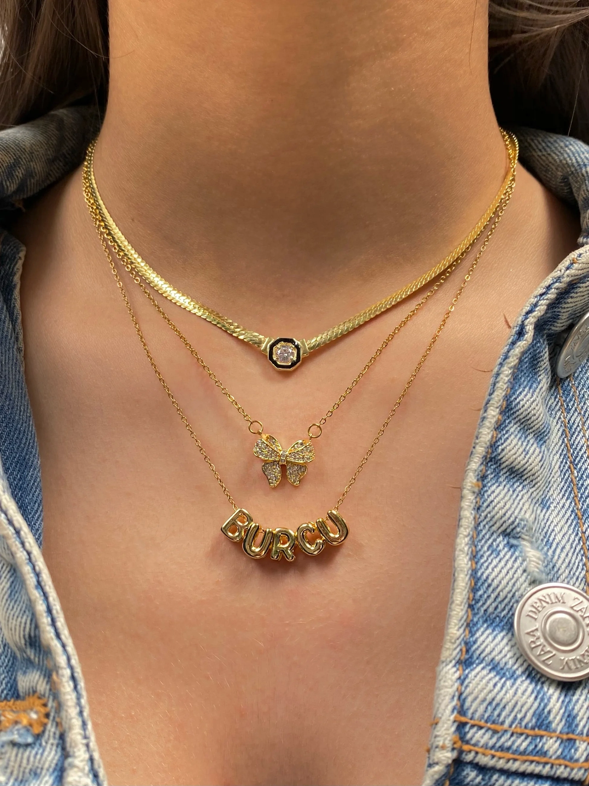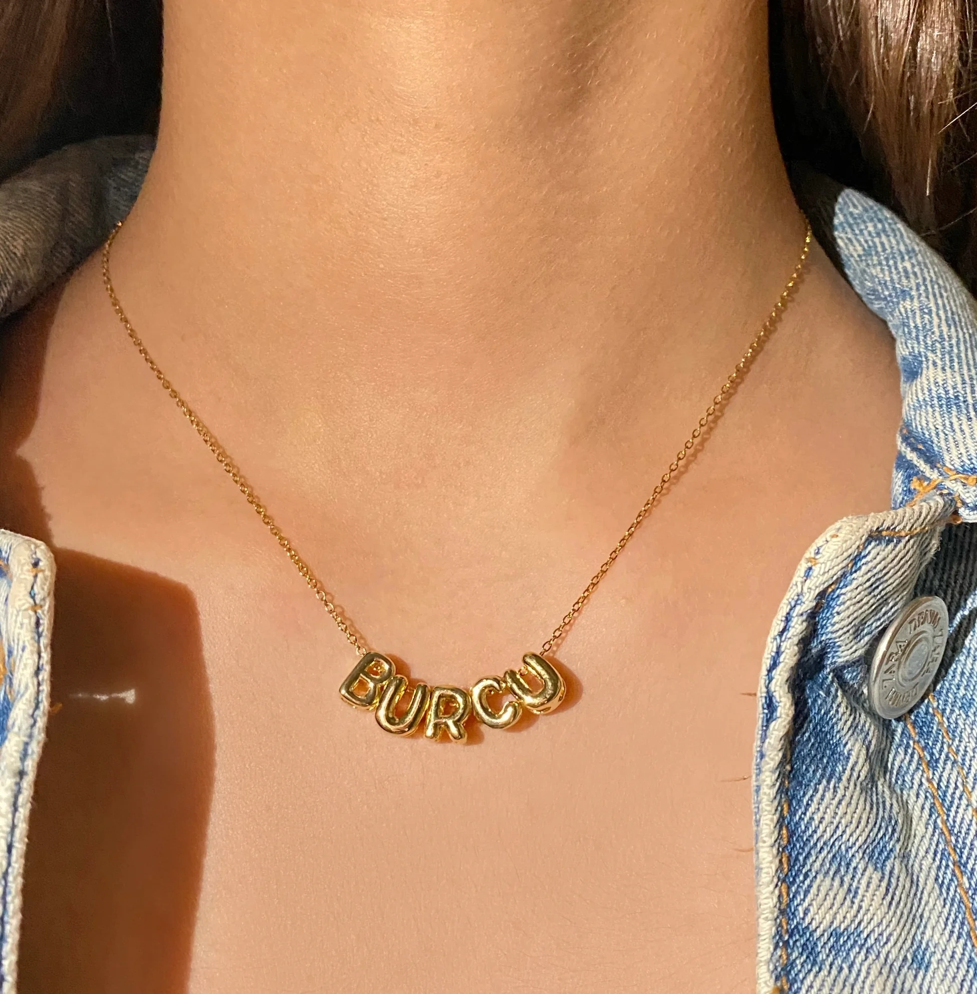 925 Ayar Gümüş Bombe Harf İsim Kolye