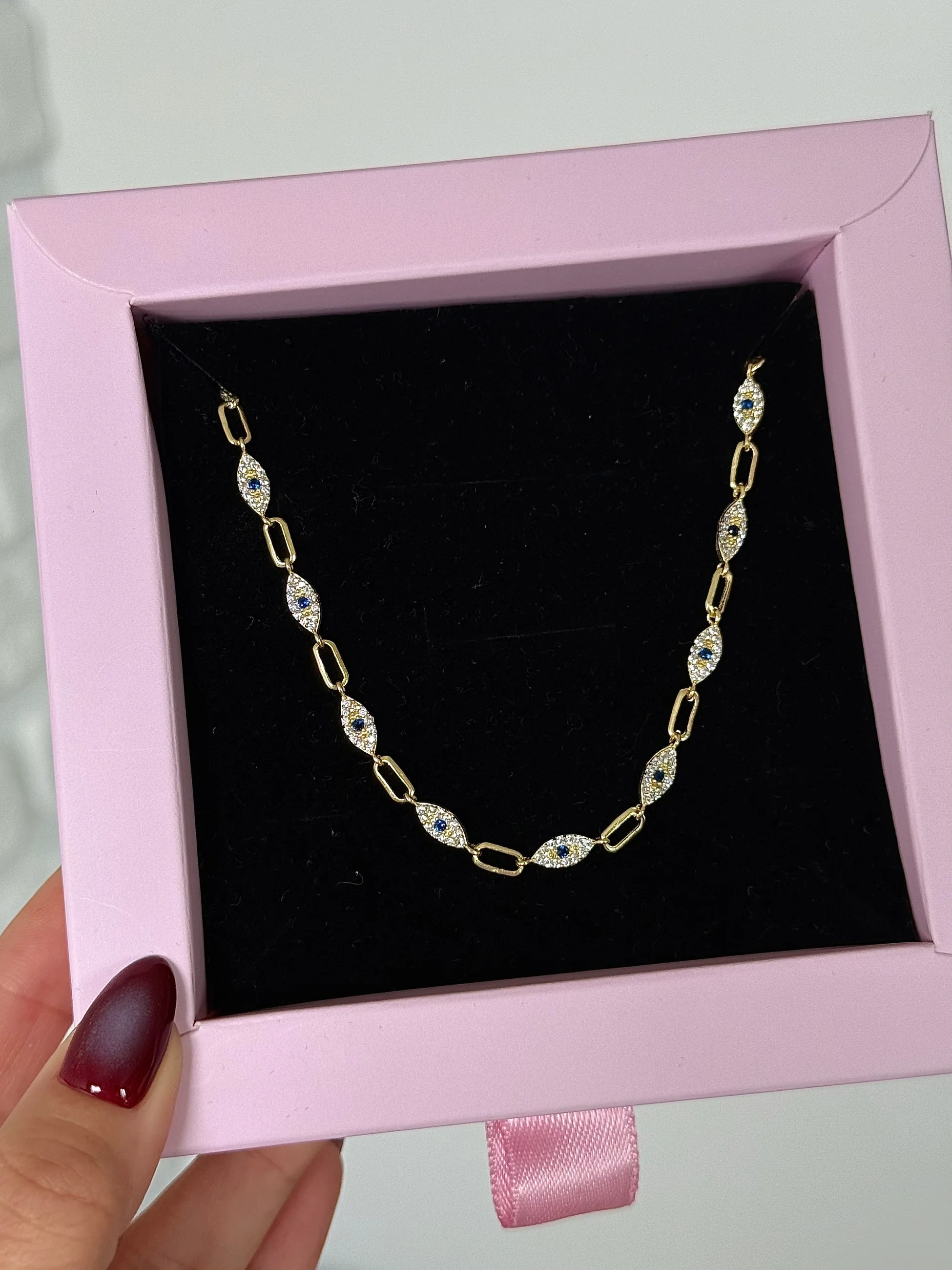 925 Ayar Gümüş Gold Göz Detay Kolye