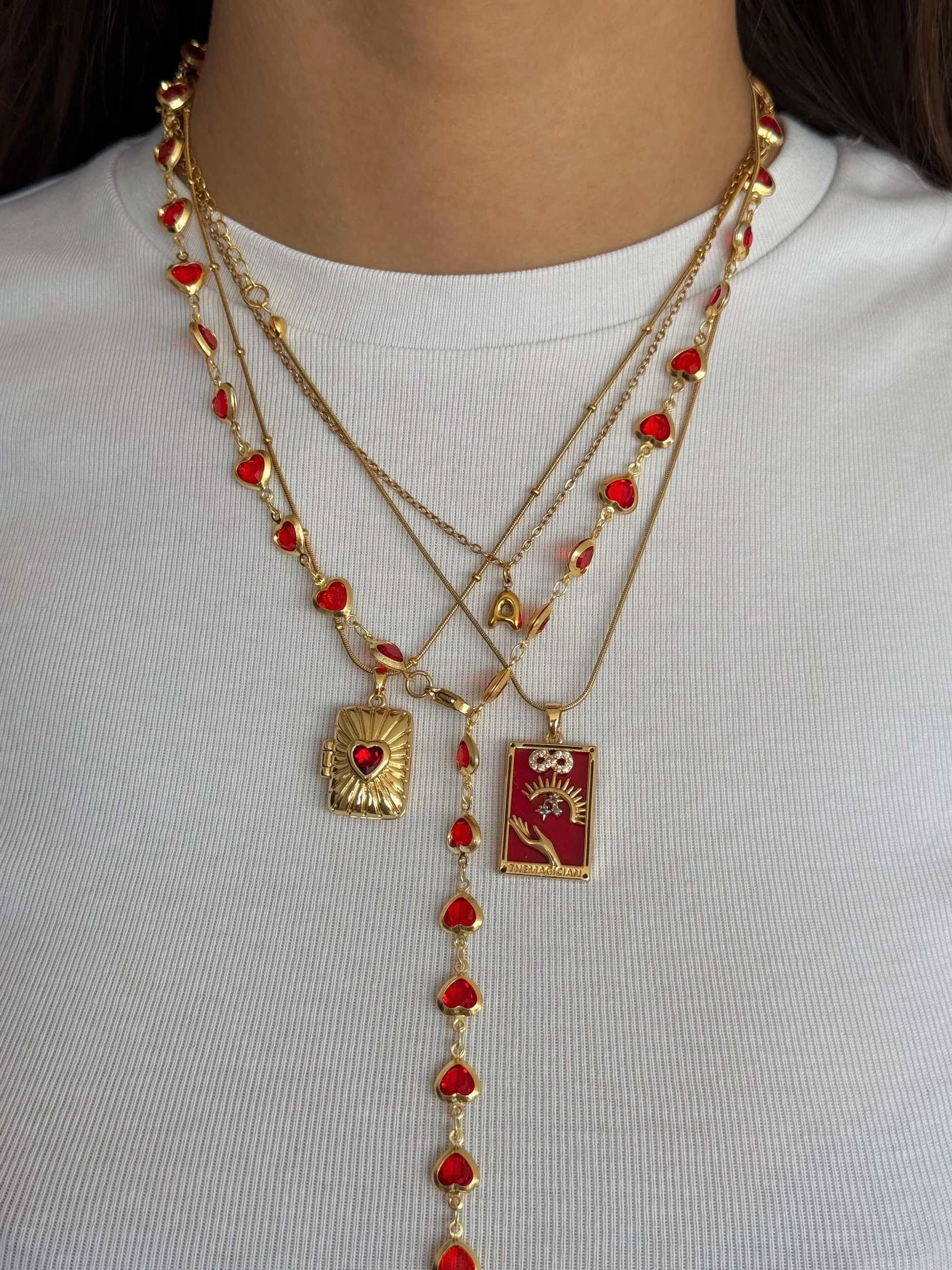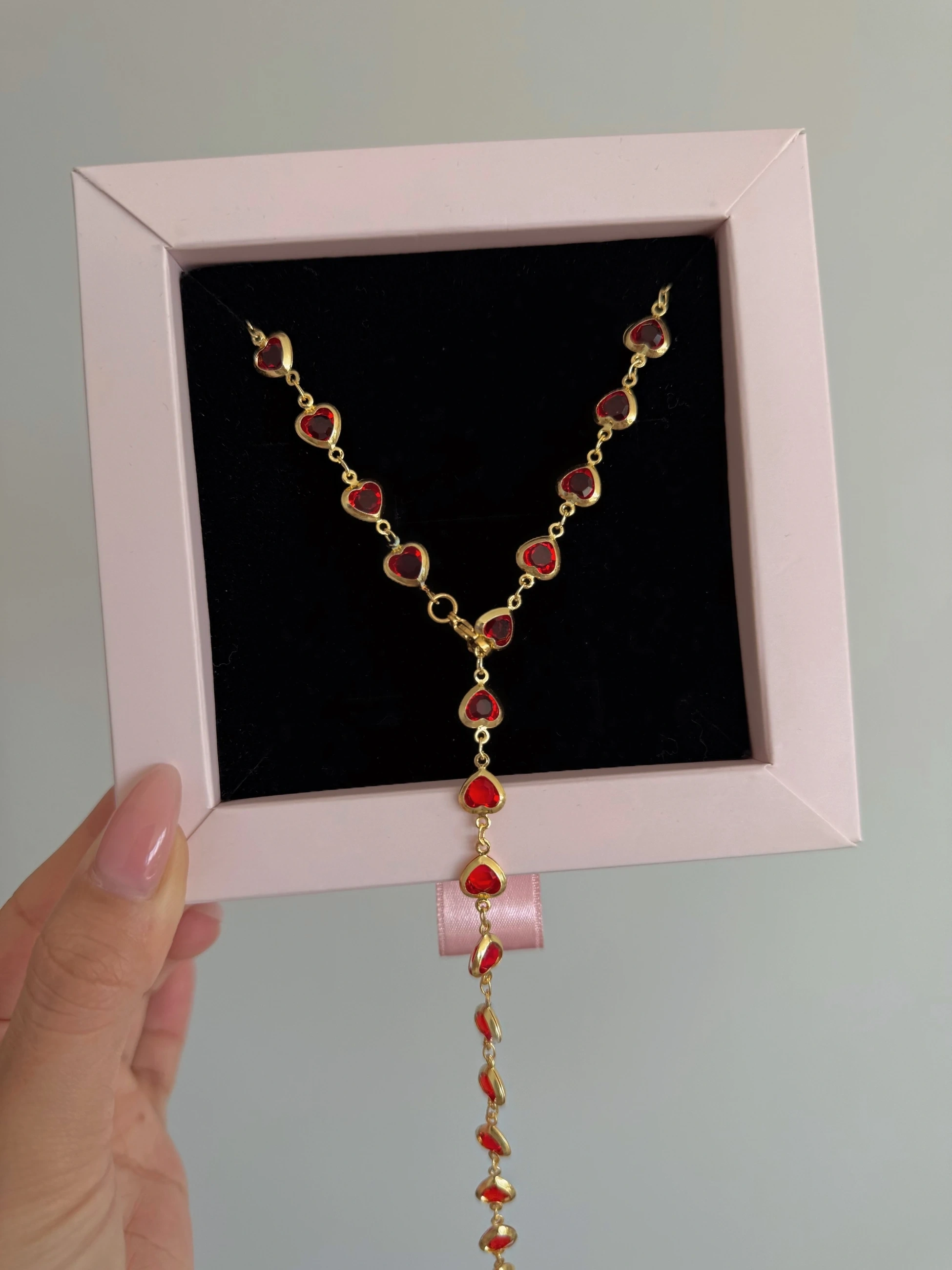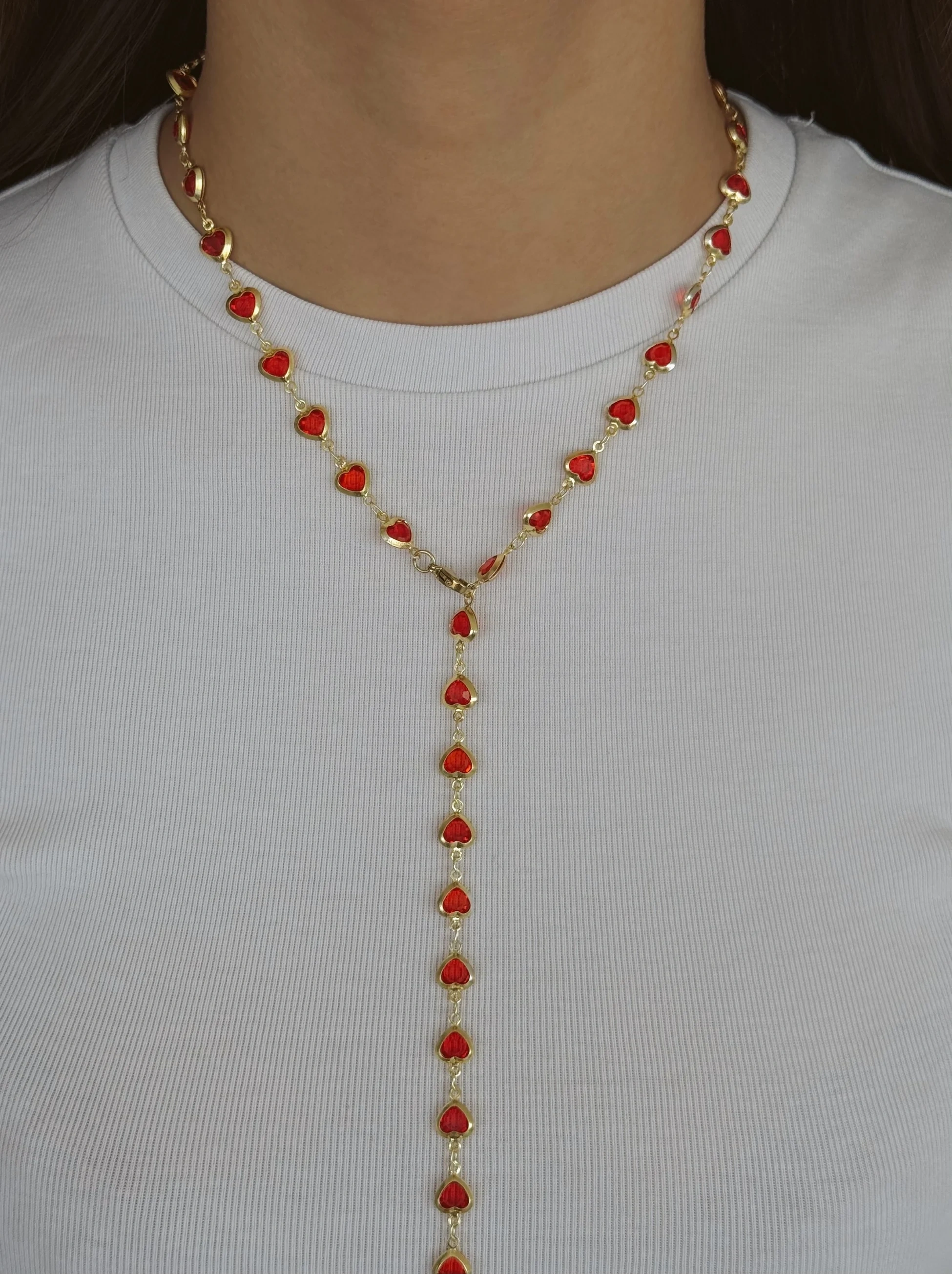 Çelik Kırmızı Kalpli Y Kolye