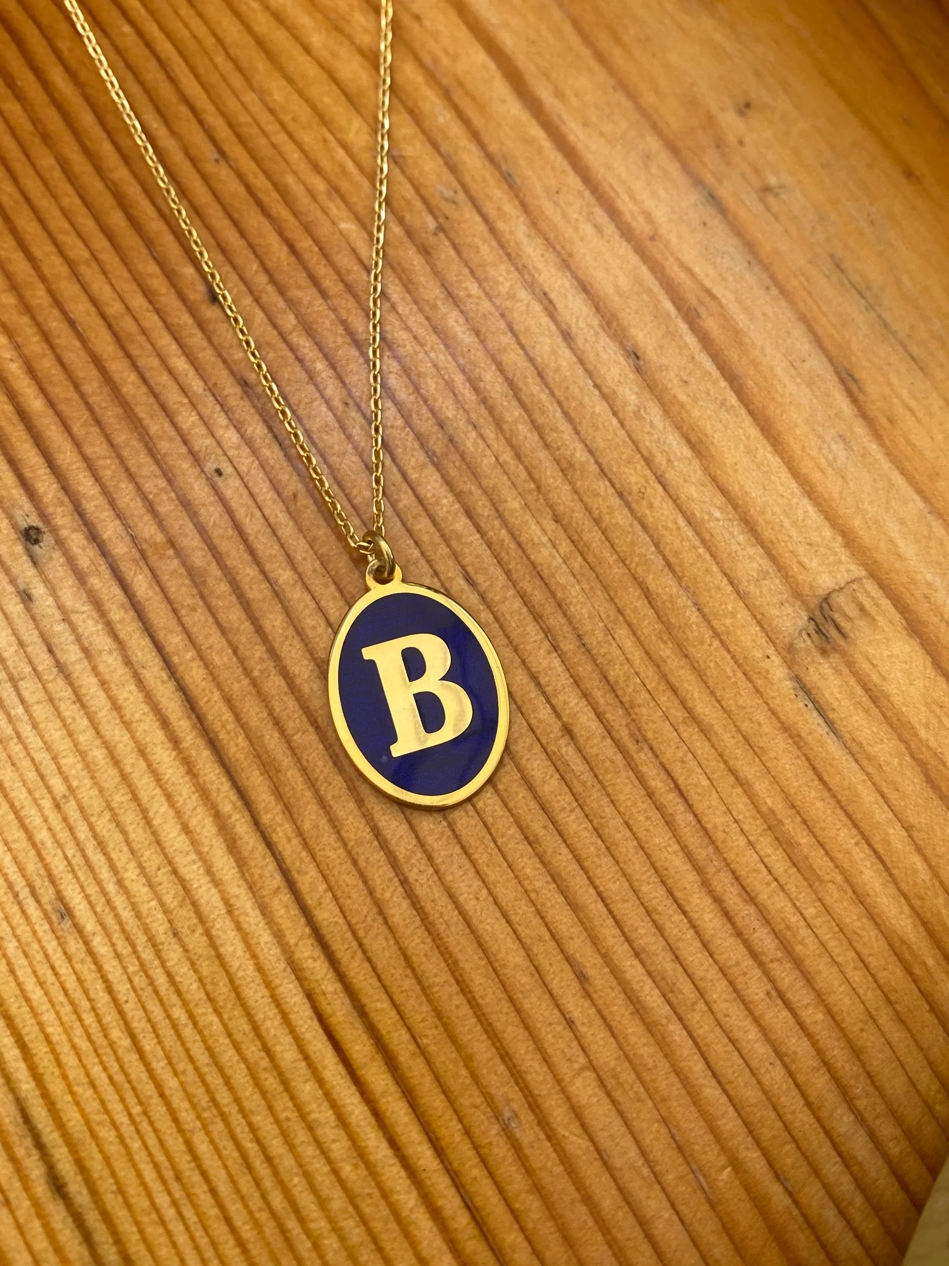 925 Ayar Gümüş Lacivert Mineli Harf Kolye