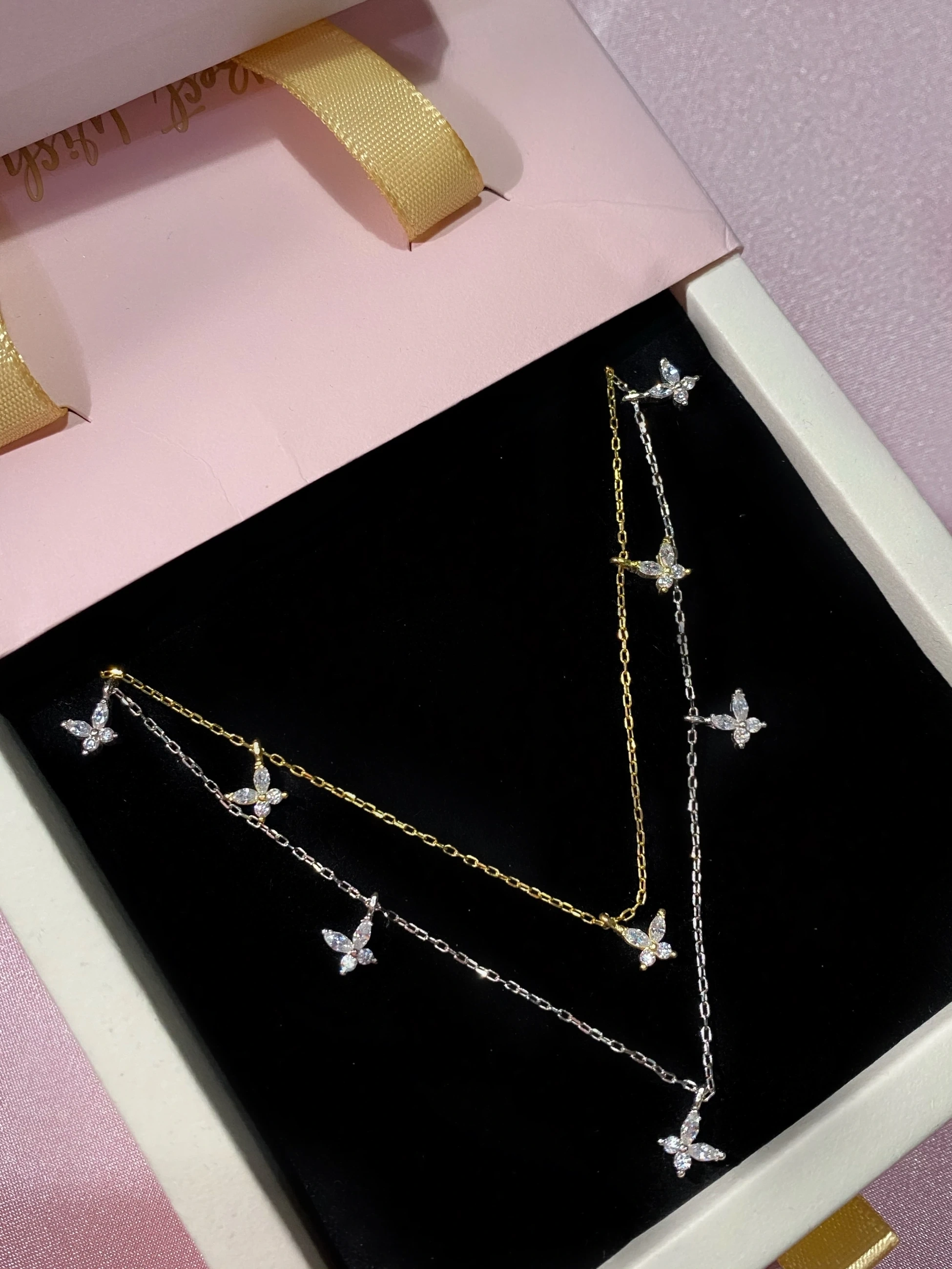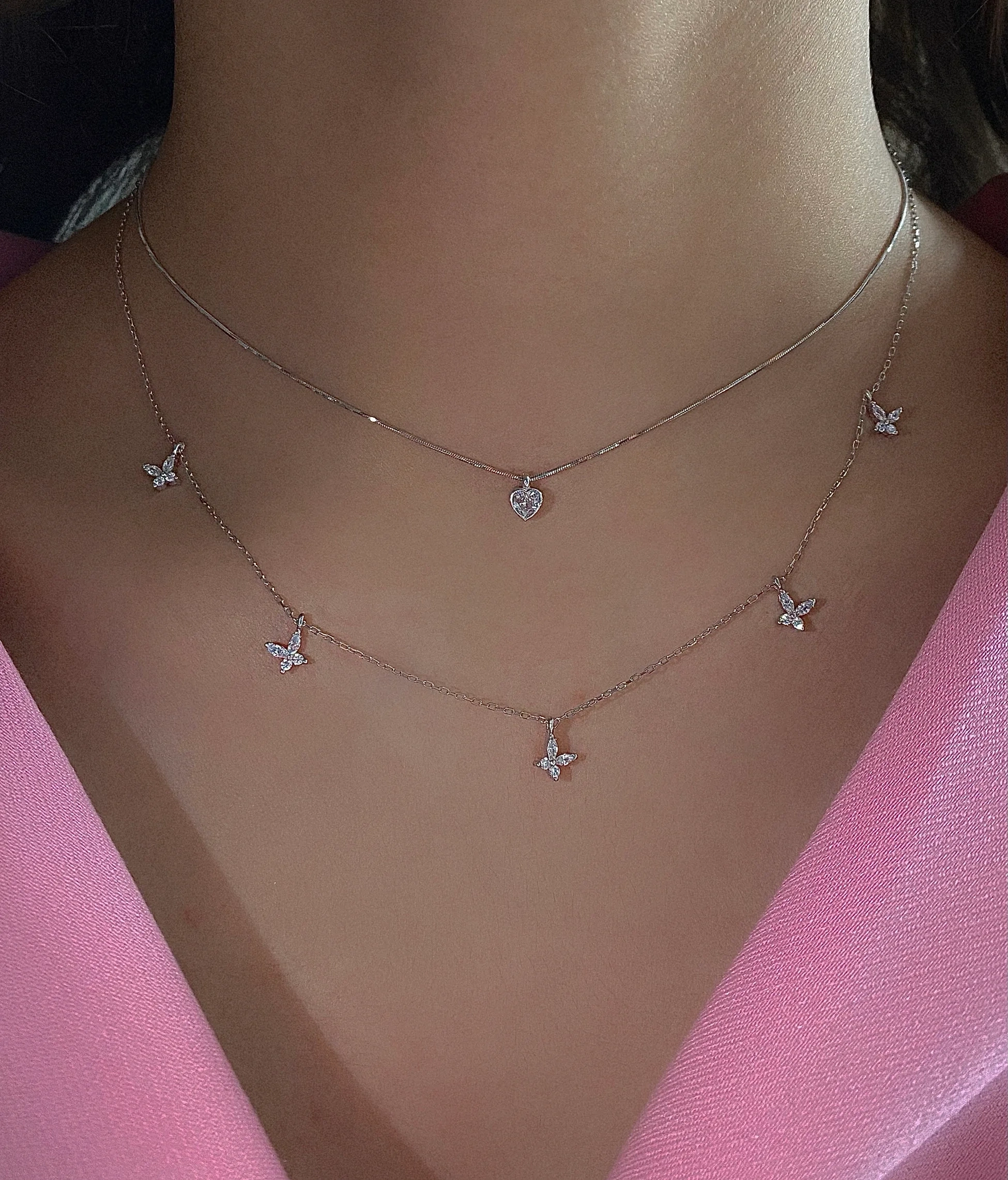 925 Ayar Gümüş Silver 5 Kelebekli Kolye