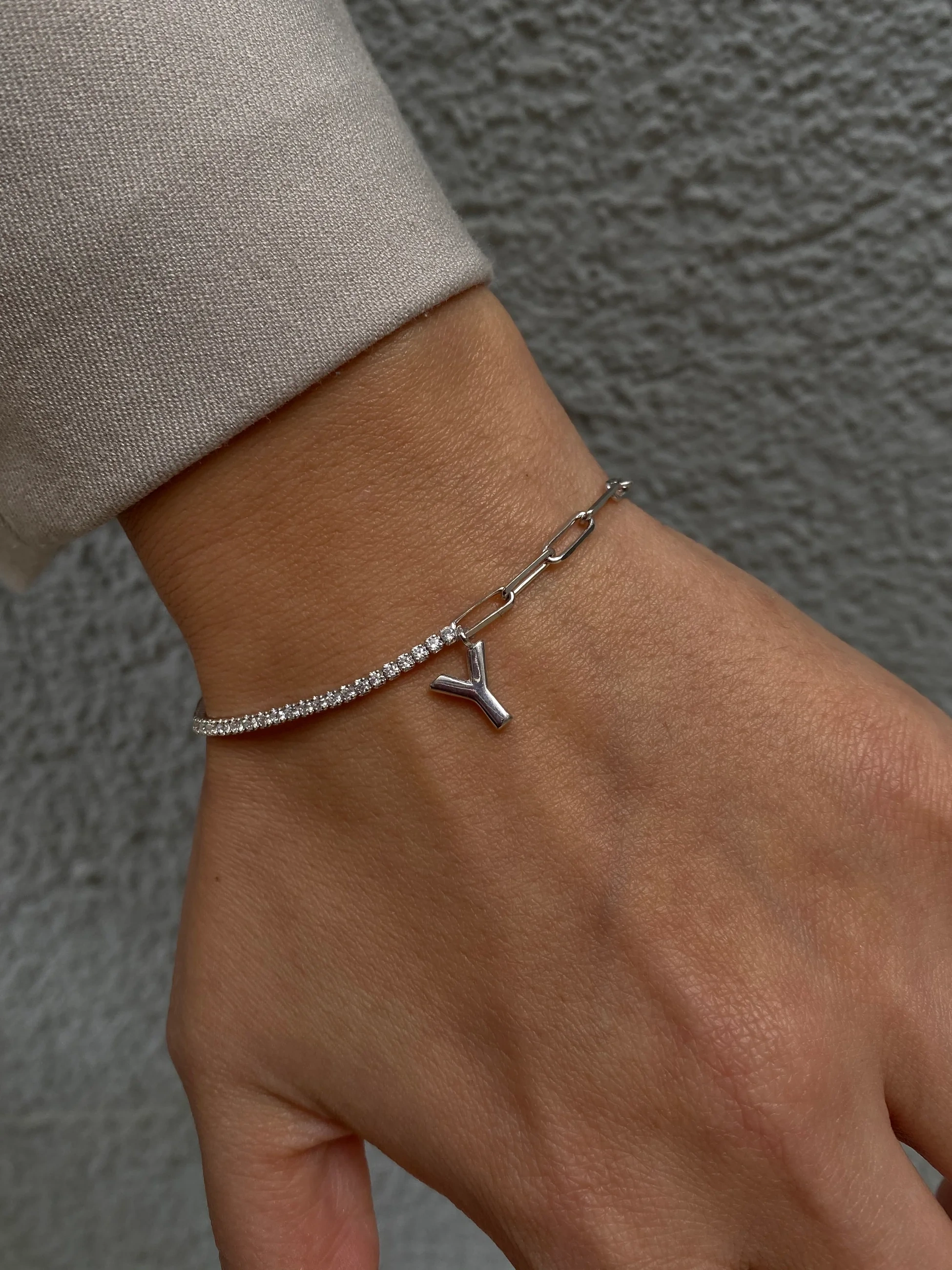 925 Ayar Gümüş Silver Harfli Bileklik