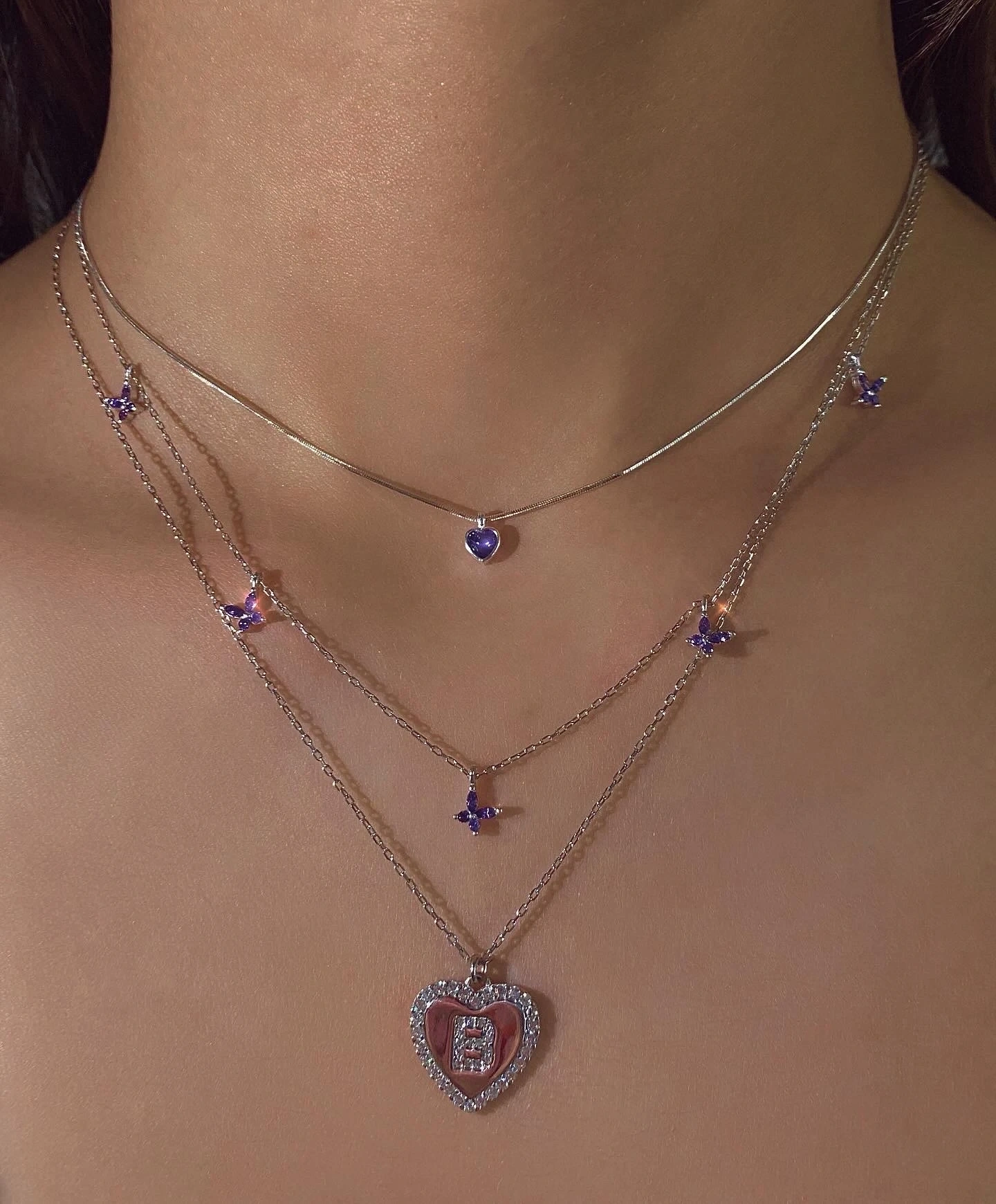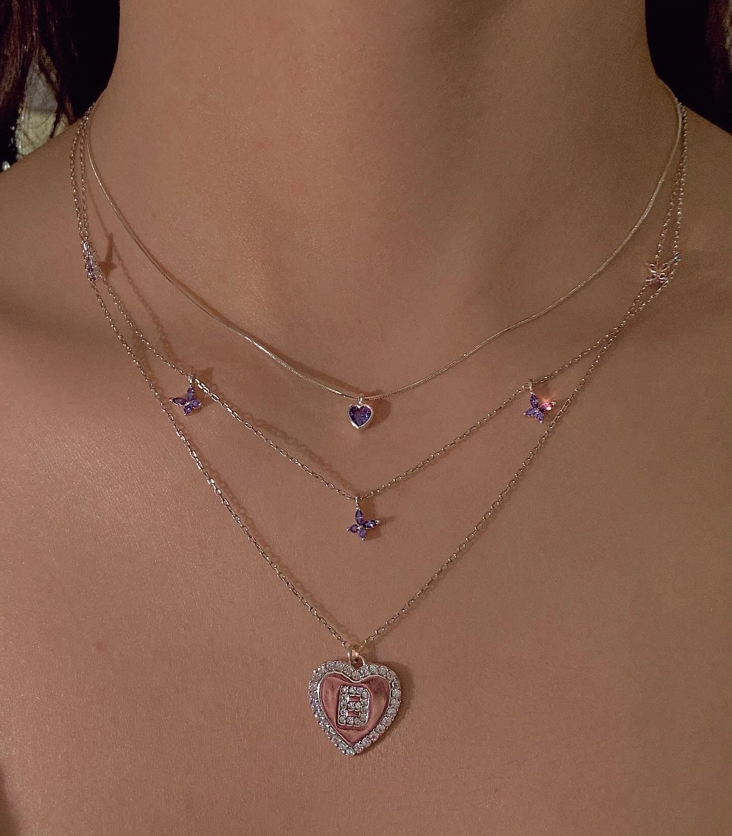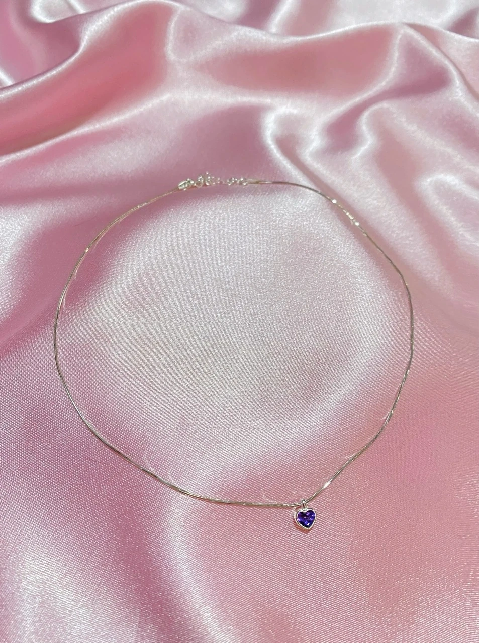 925 Ayar Gümüş Silver Mor Mini Kalp Choker