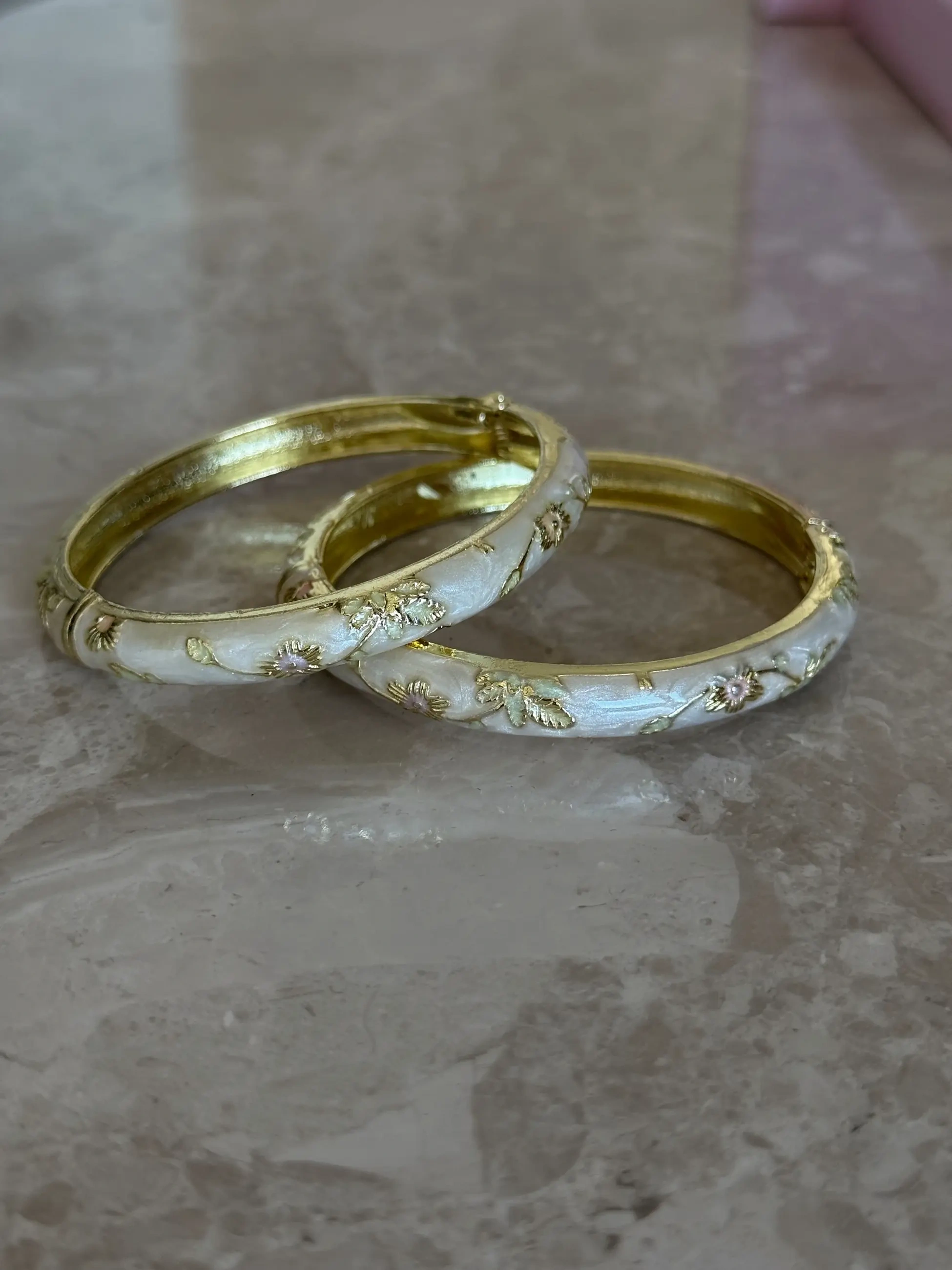 Çelik Beyaz Çiçekli Mineli Kelepçe Bileklik