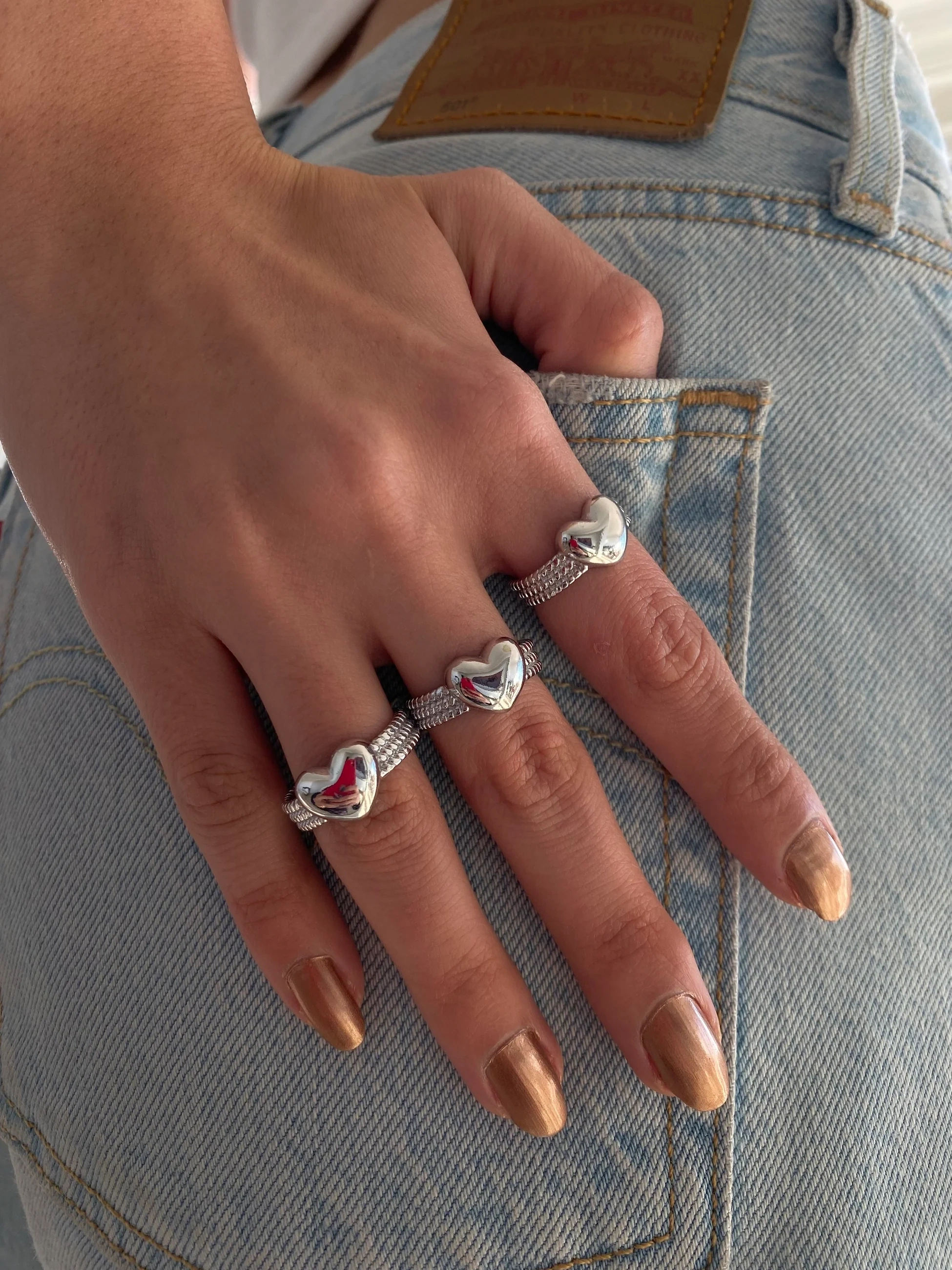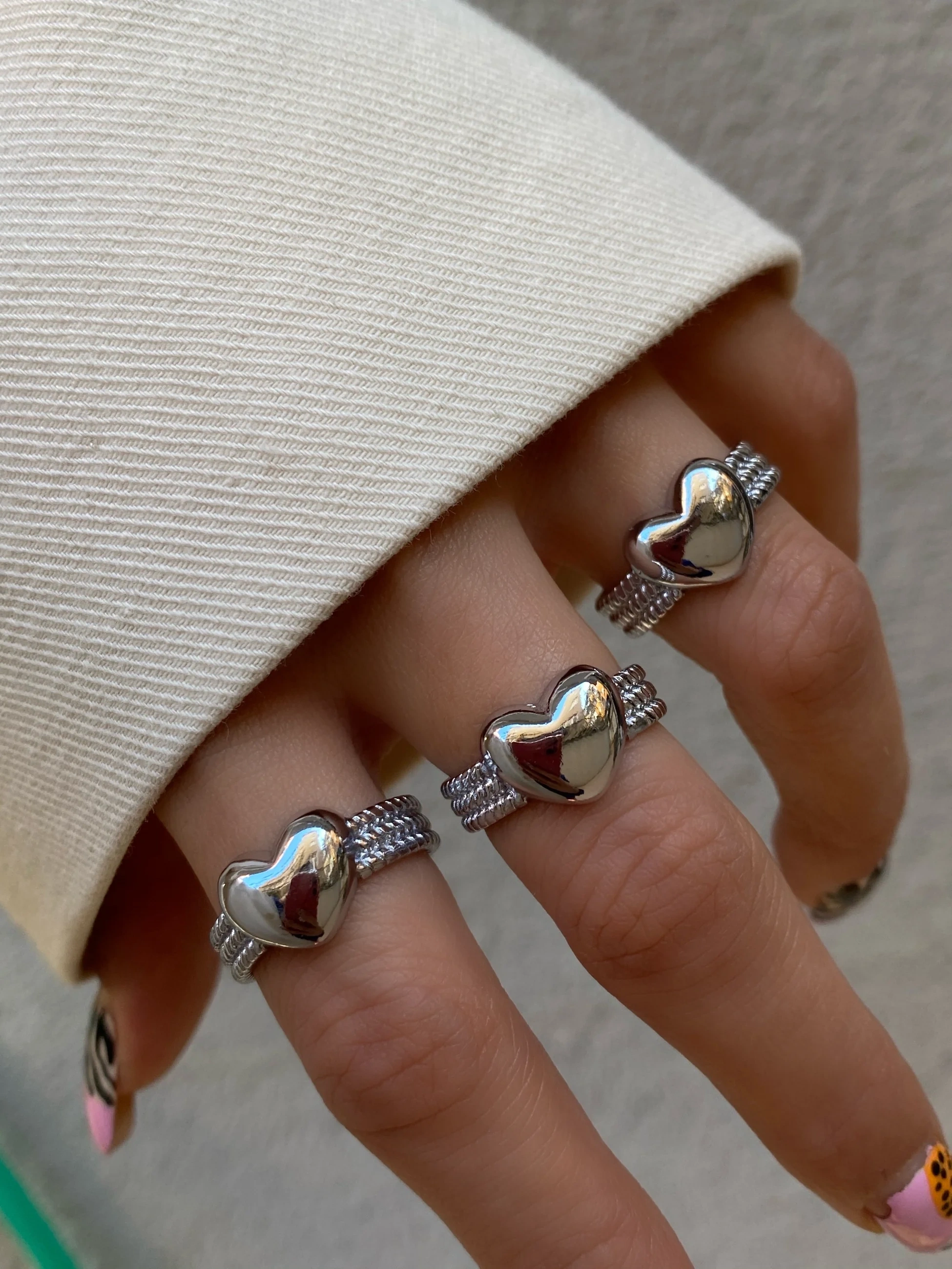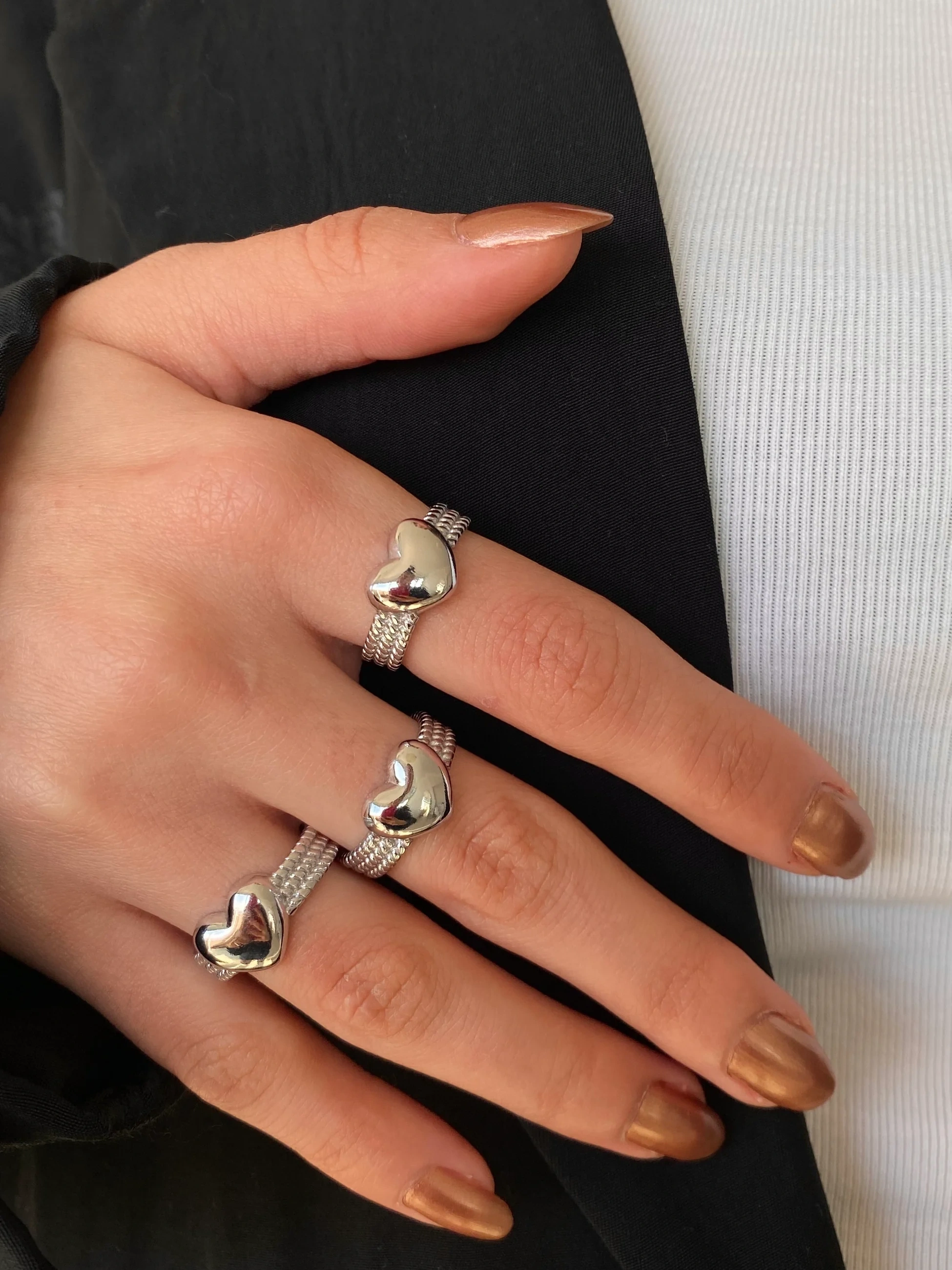 Bombeli Silver Kalp Yüzük