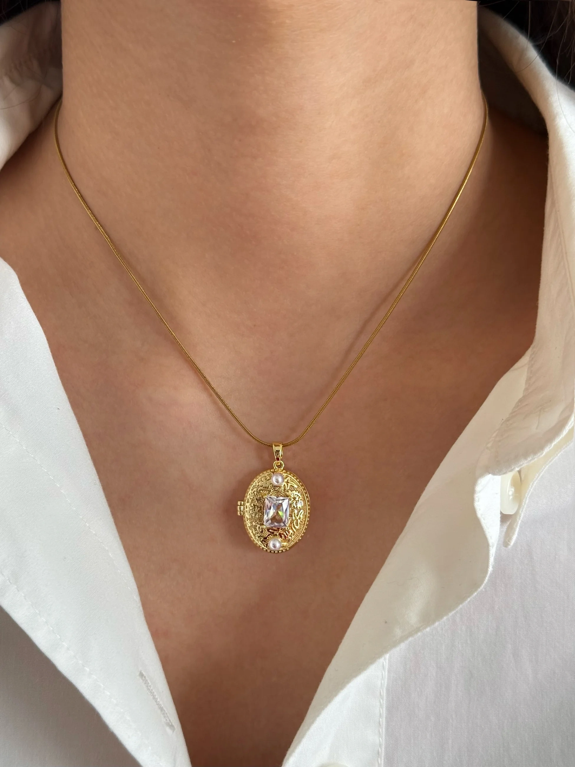 Çelik Baget Taşlı Kapaklı Kolye
