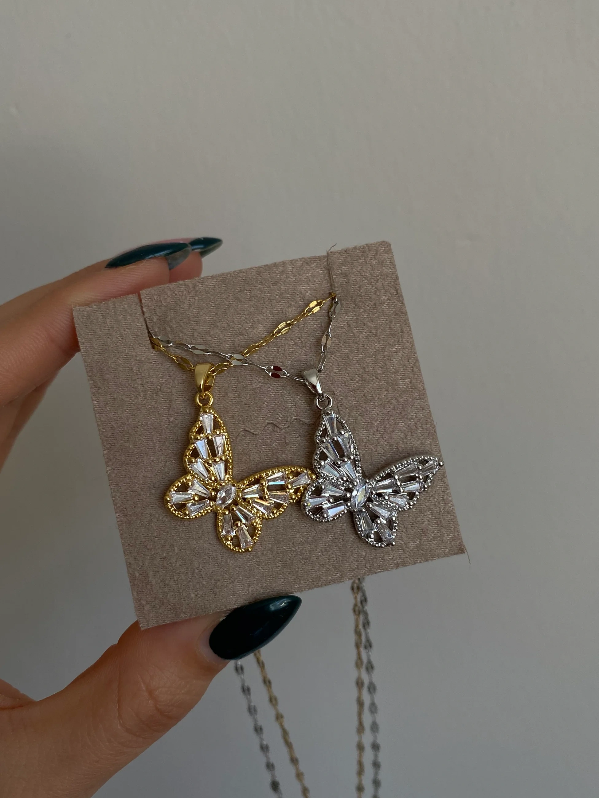 Çelik Baget Taşlı Kelebek Kolye