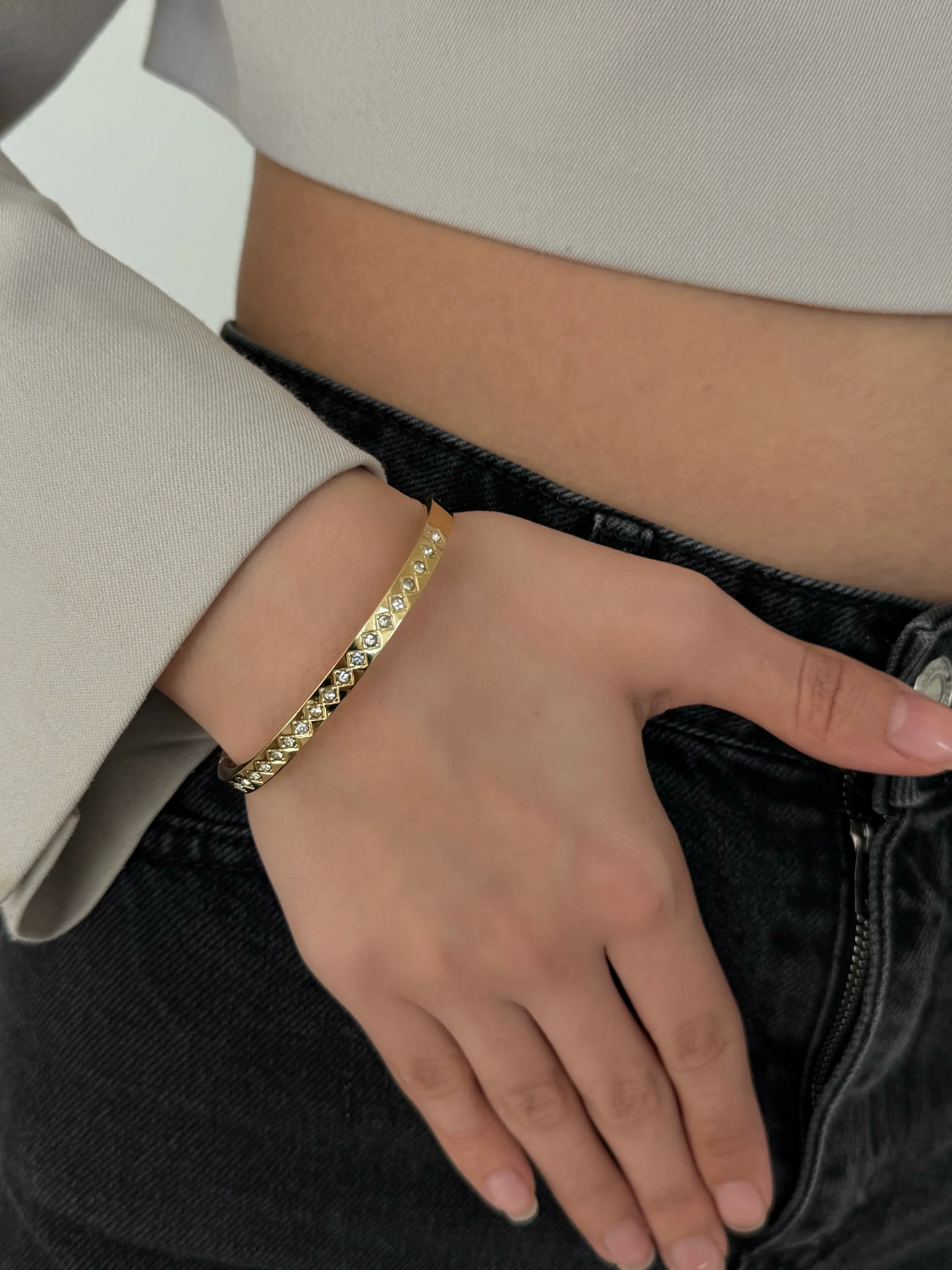 Çelik Baklava Detay Kelepçe Bileklik