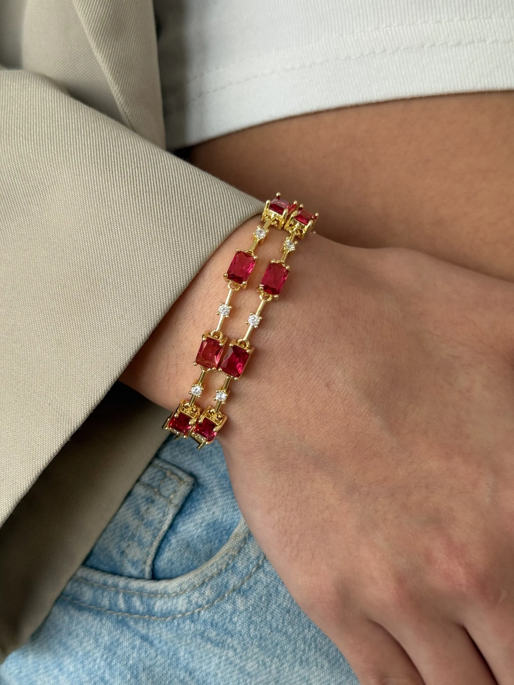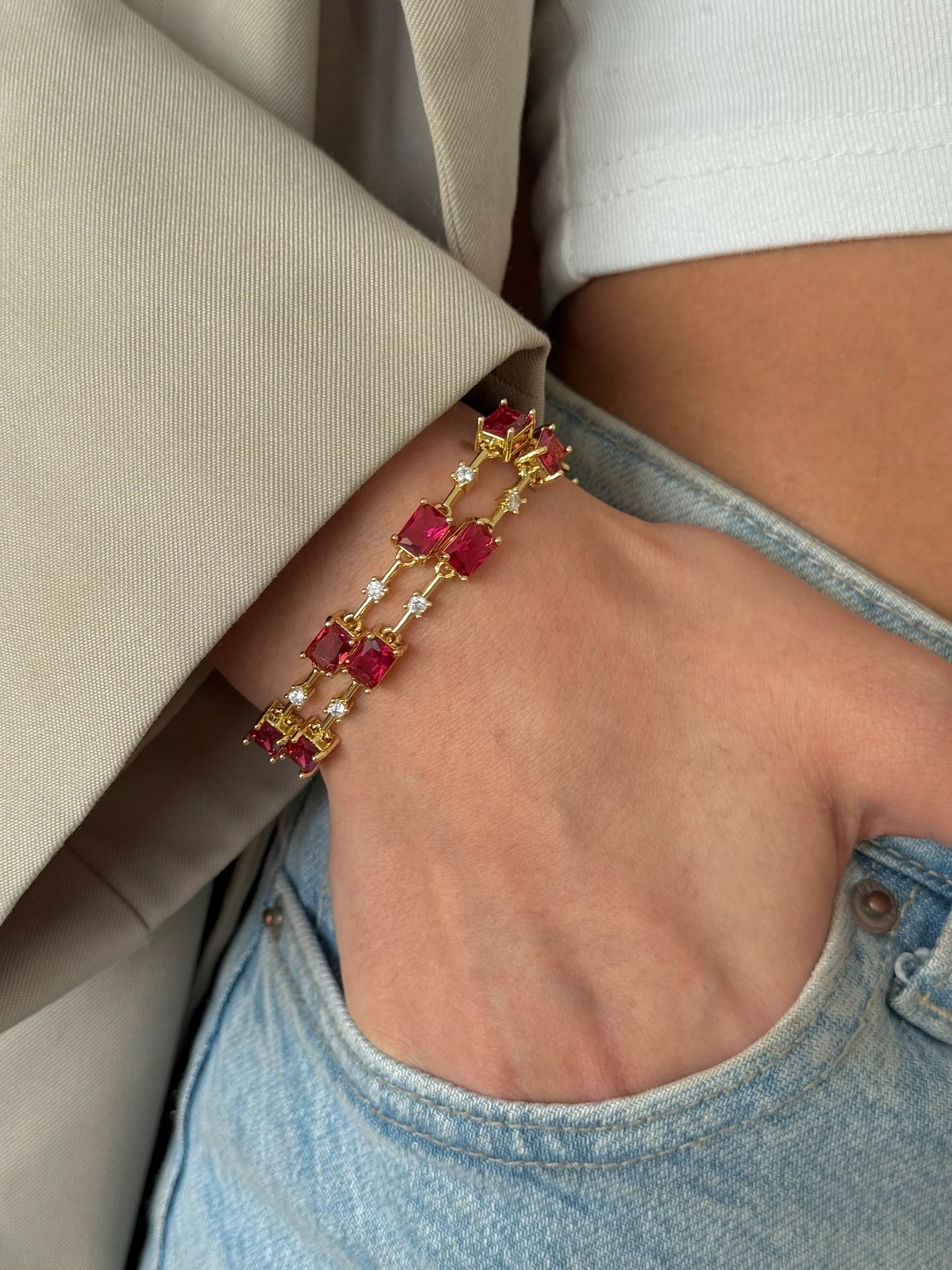 Çelik Bordo Detay Bileklik