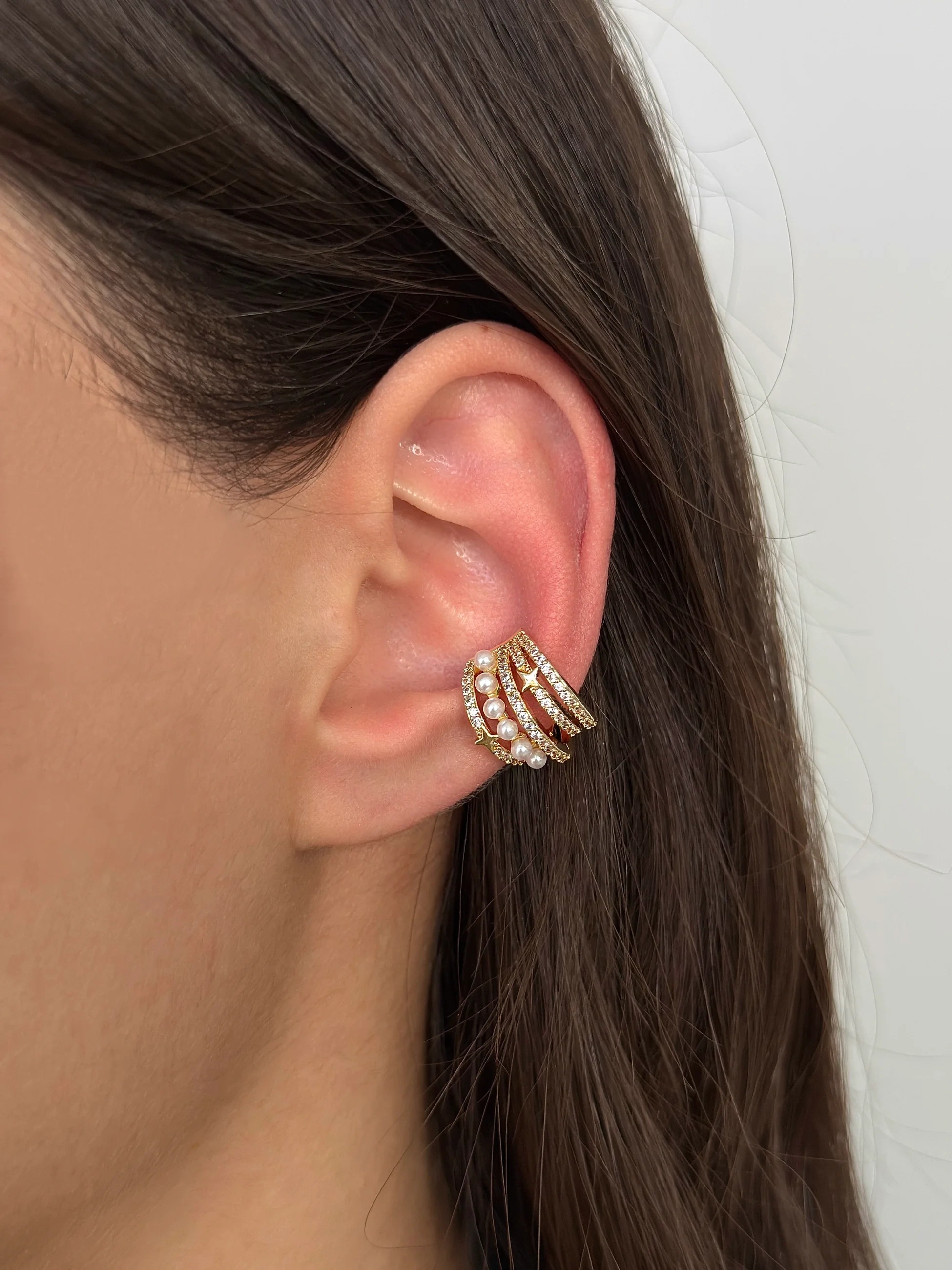 Çelik Gold İncili Earcuff