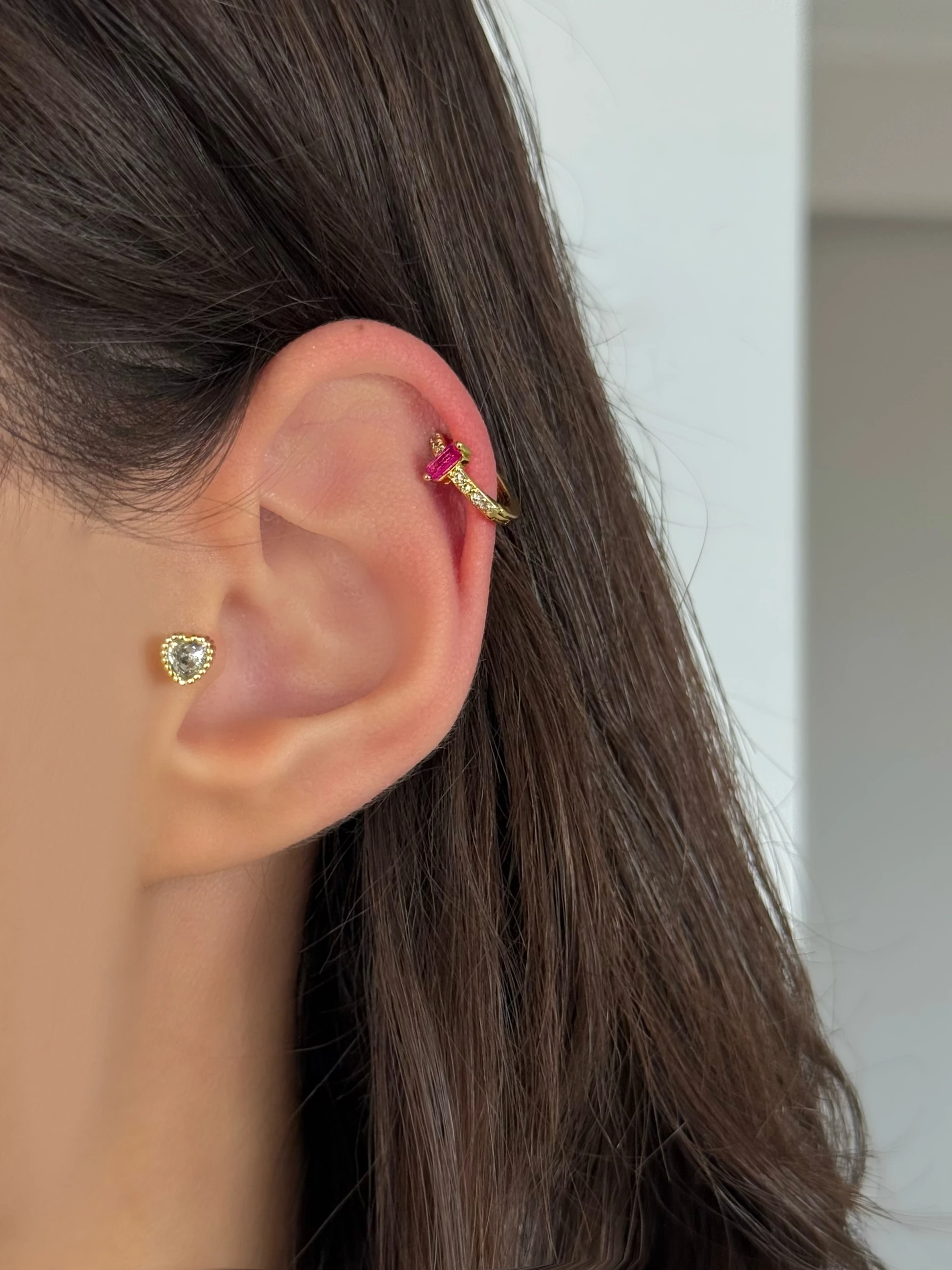 Çelik Gold Pembe Baget Taşlı Halka Piercing