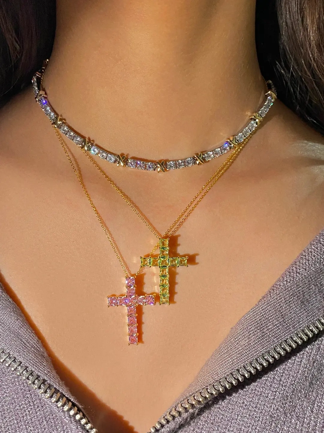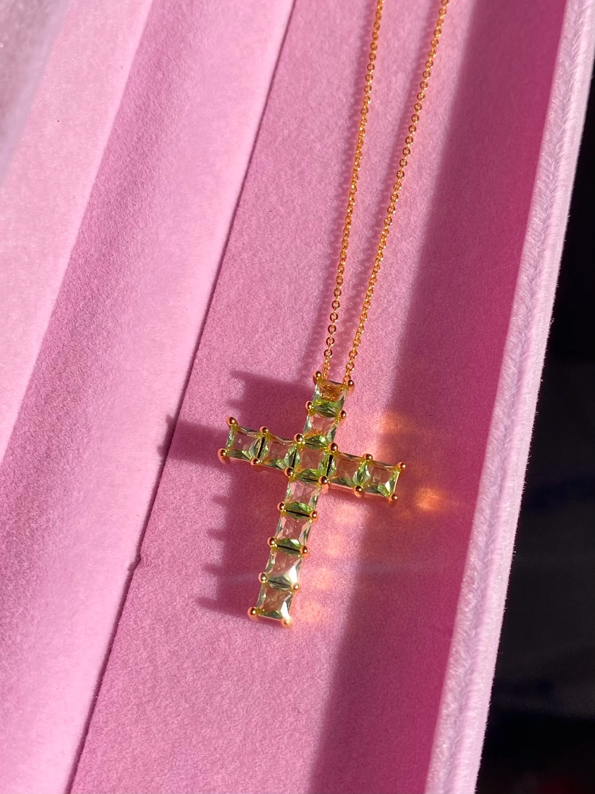 Çelik Gold Yeşil Taşlı Haç Kolye