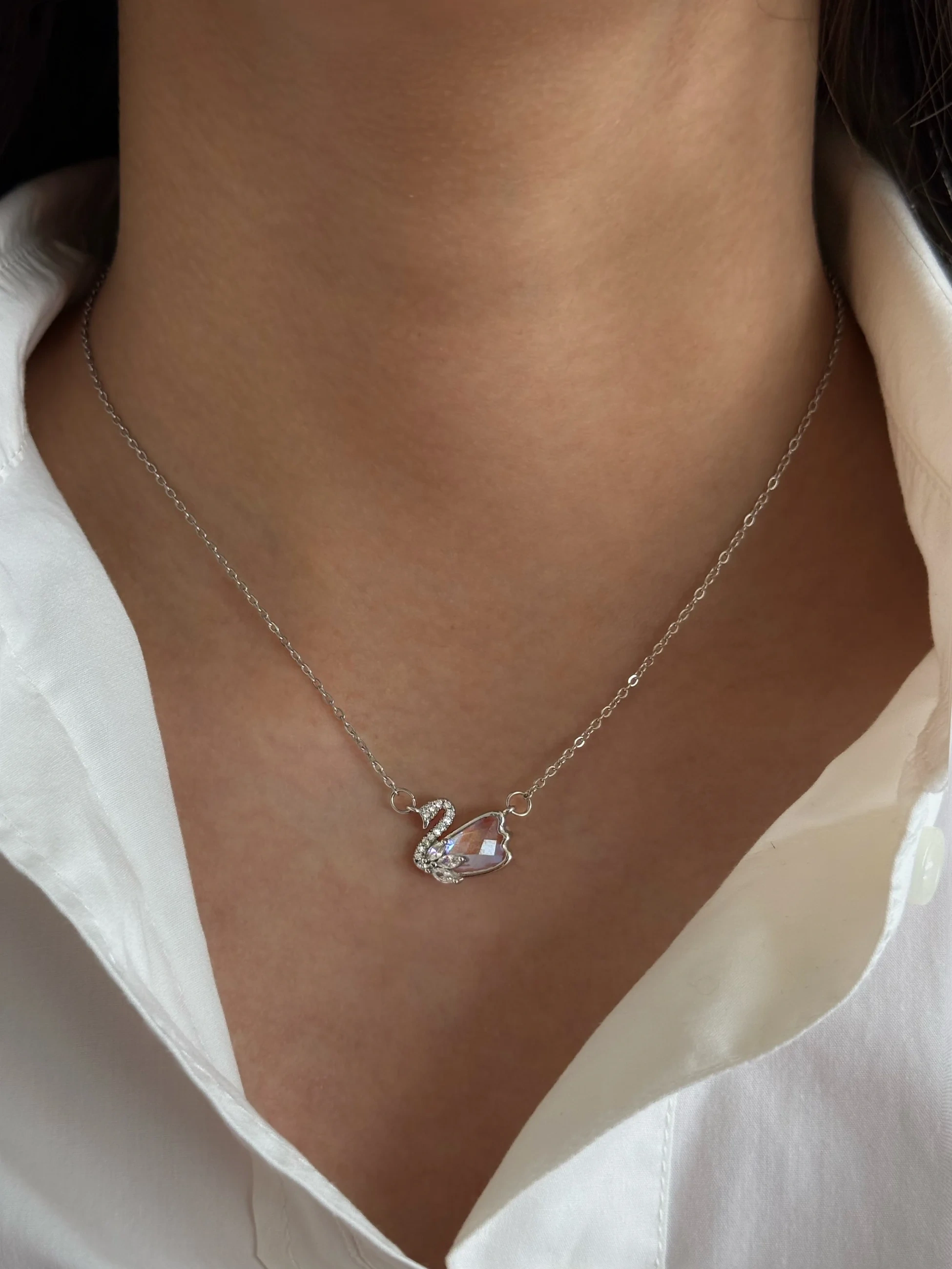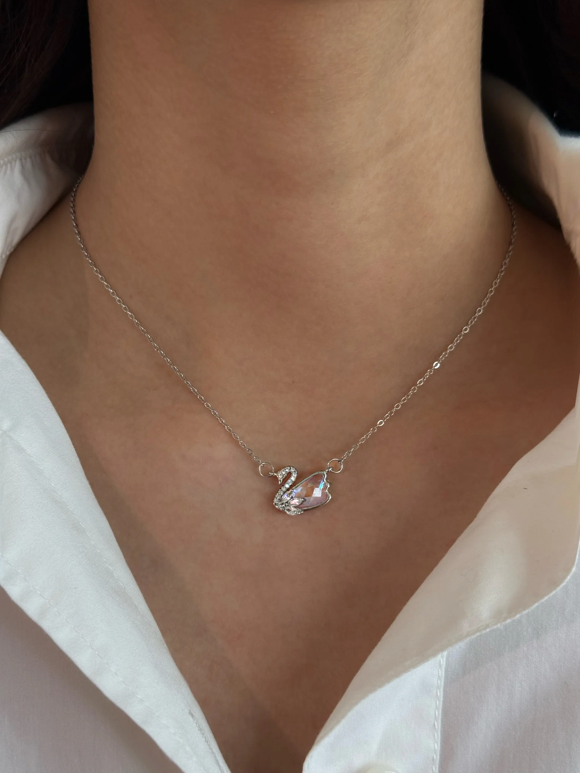 Çelik Hologramlı Kuğu Kolye