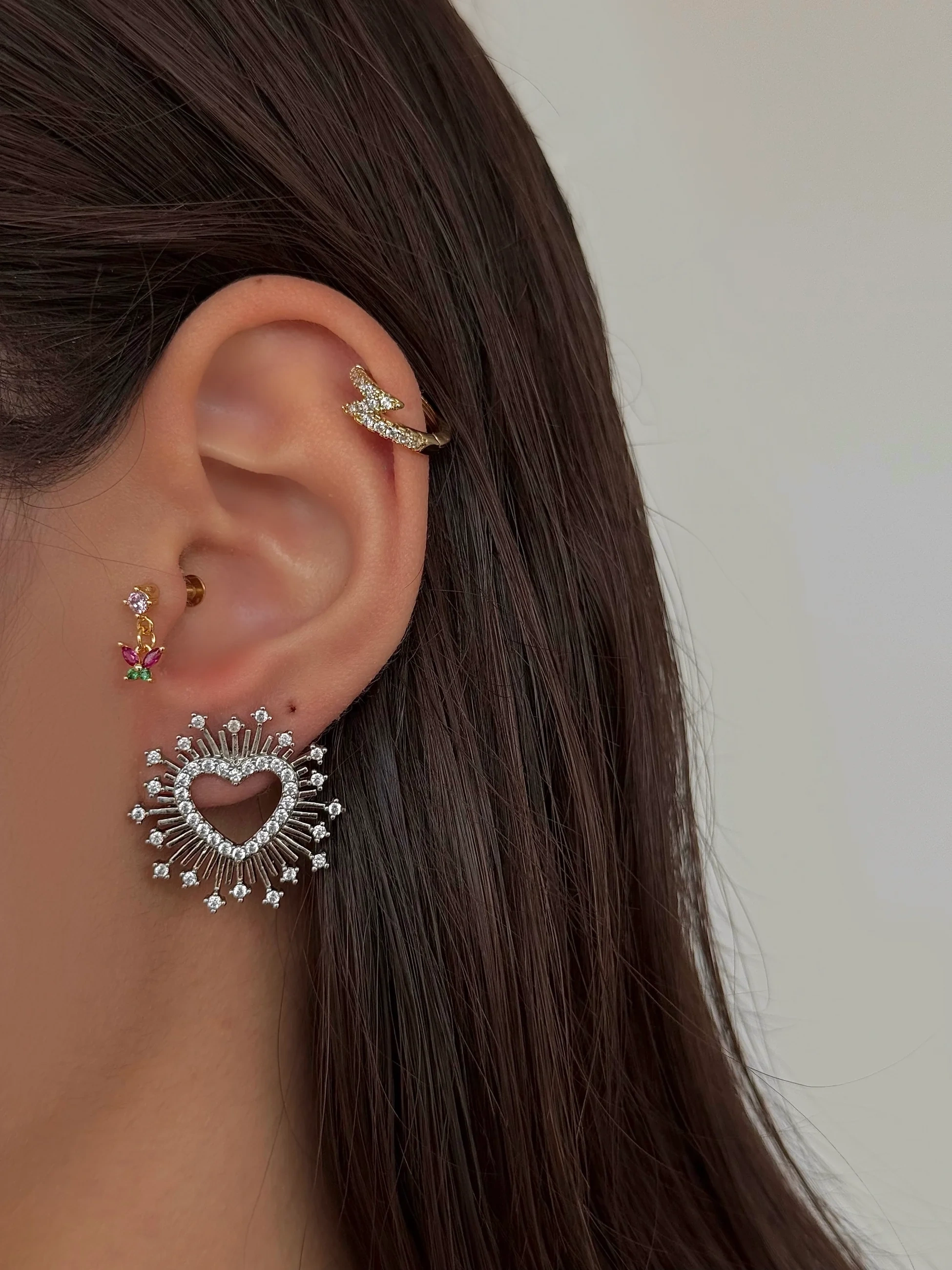Çelik Kalpli Işıltılı Küpe