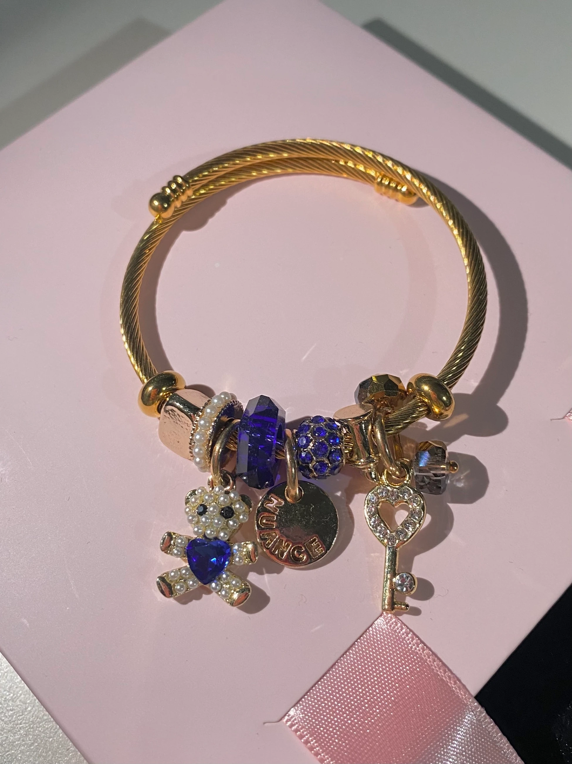 Çelik Kelepçeli Saks Renk Charm Bileklik