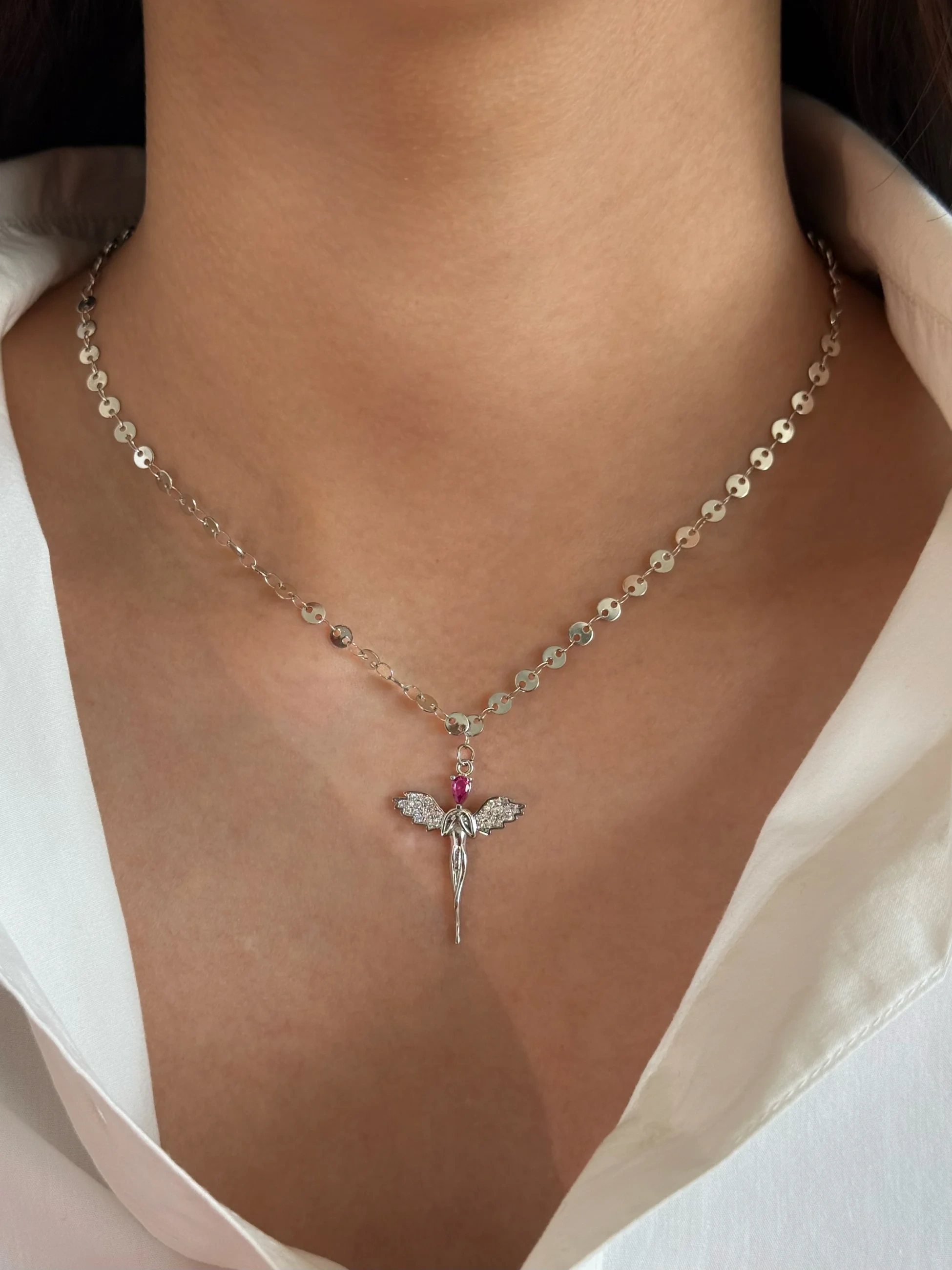 Çelik Kırmızı Kafalı Melek Kolye