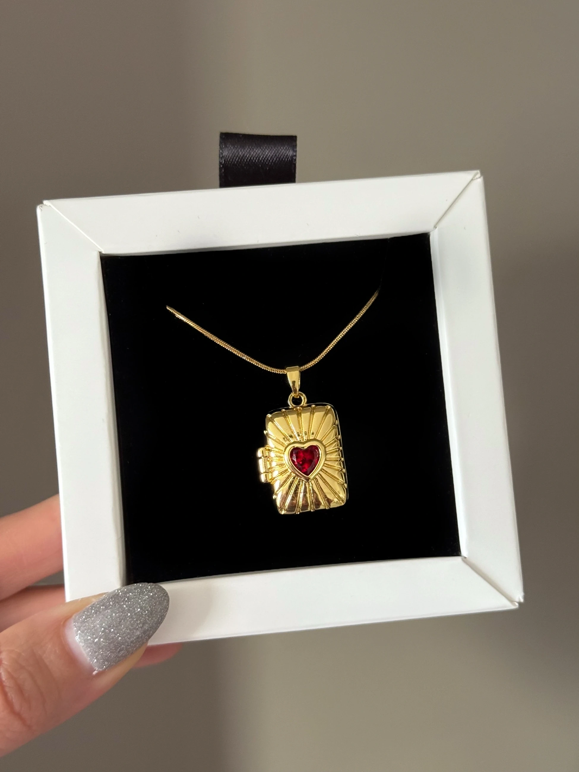 Çelik Kırmızı Kalpli Kapaklı Kolye