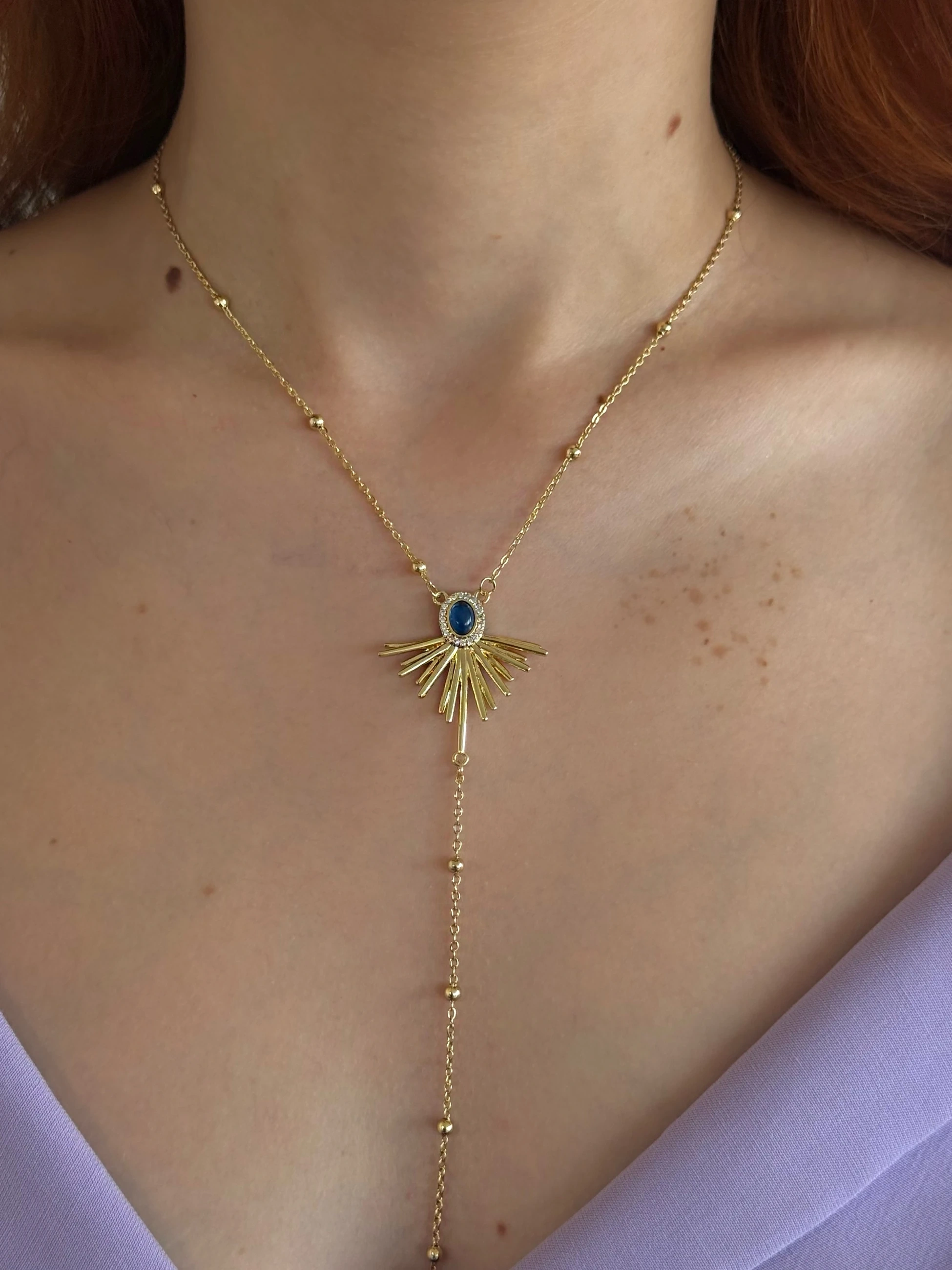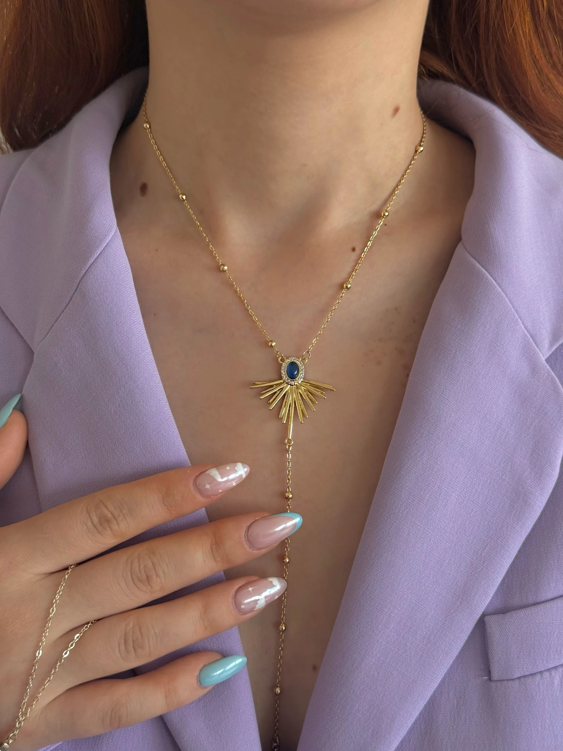 Çelik Lacivert Tasarım Y Kolye