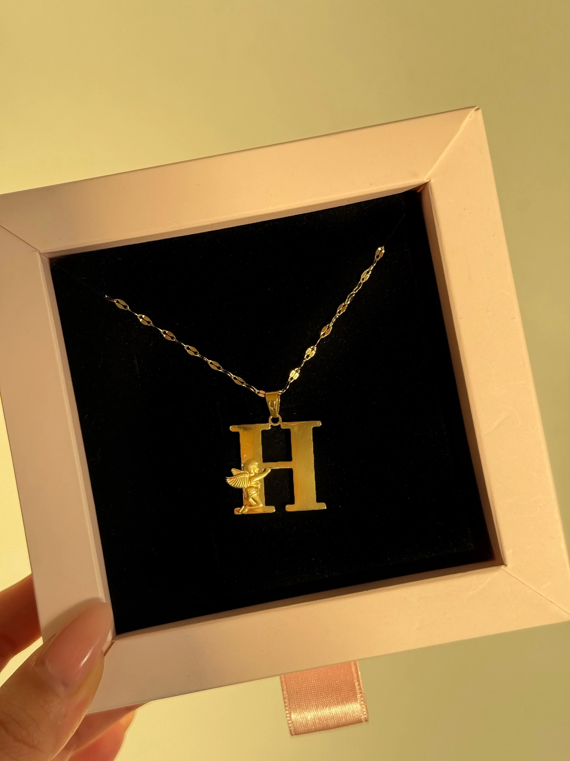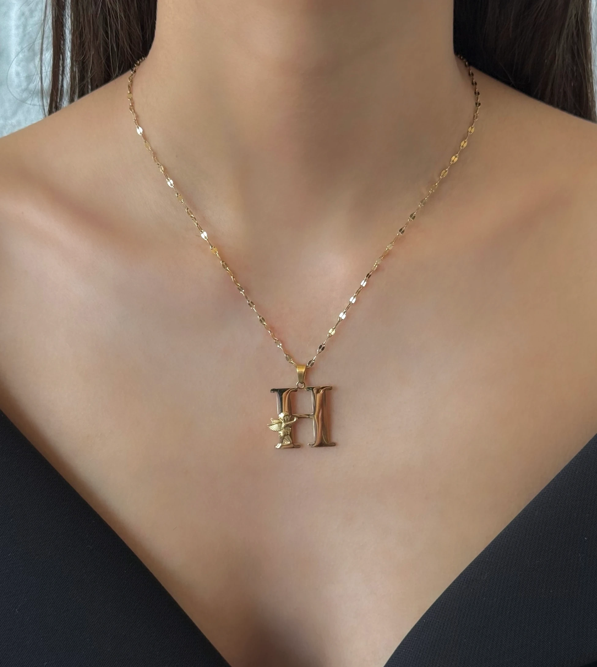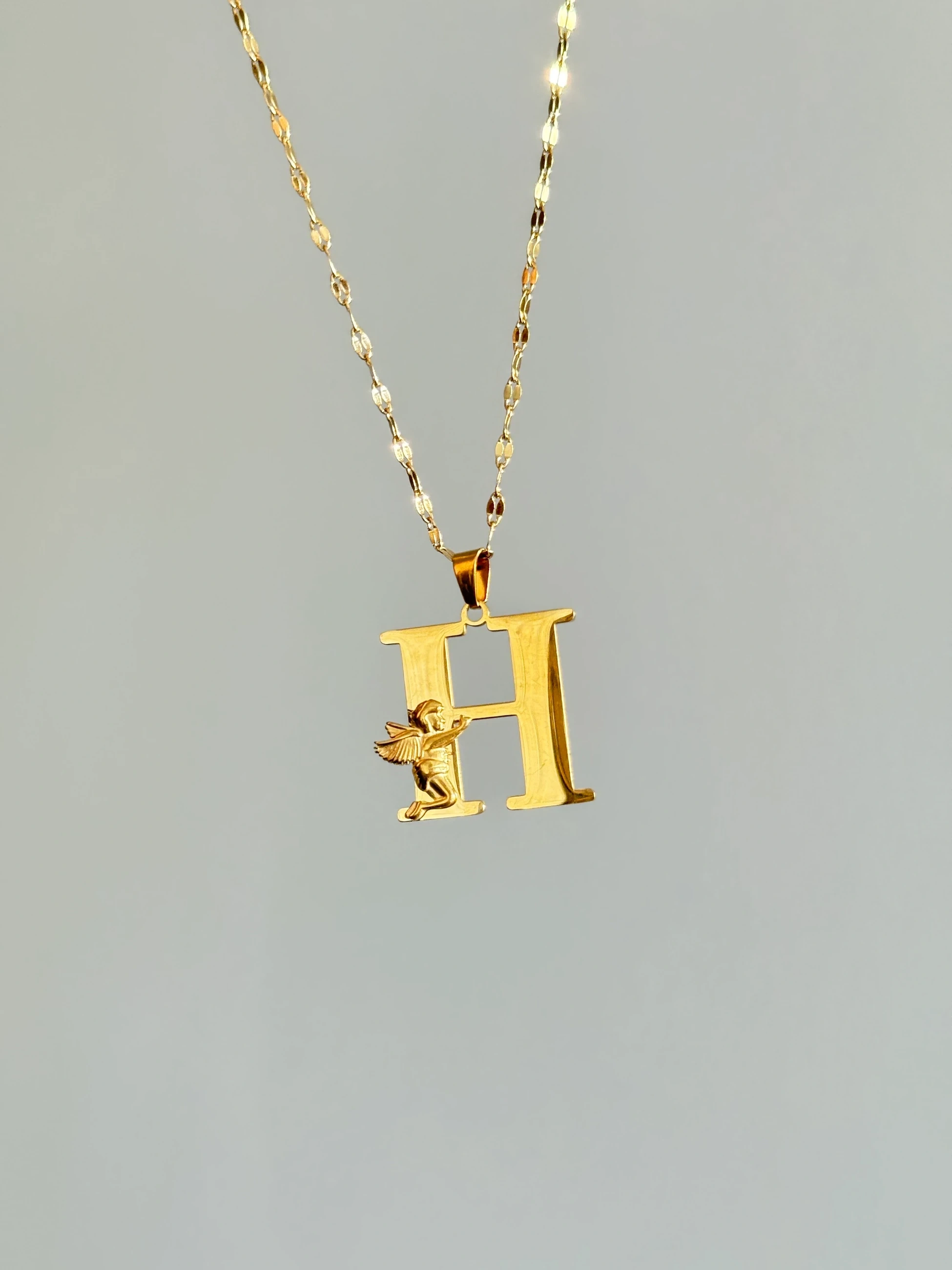 Çelik Melek Detaylı H Harfli Kolye