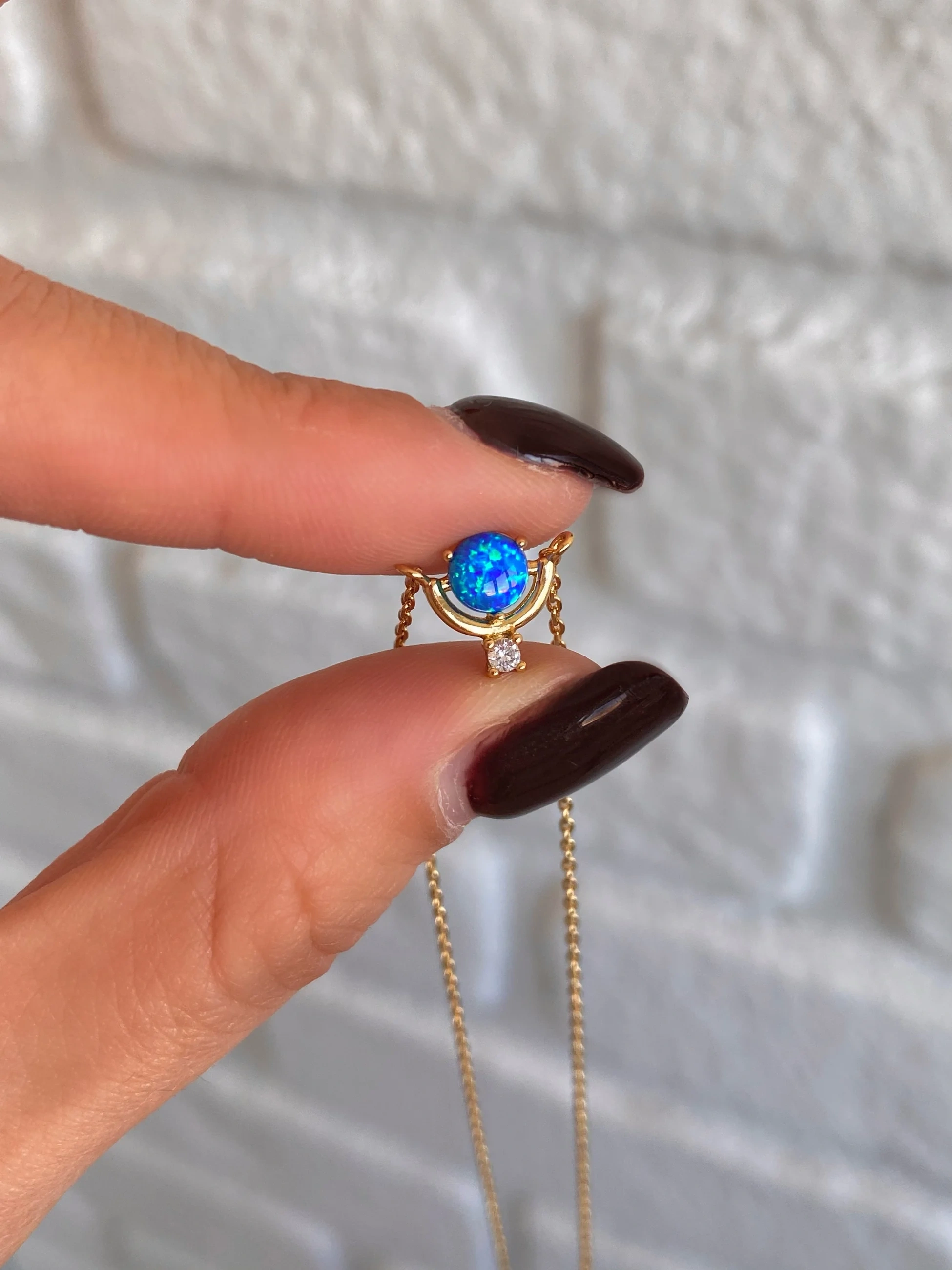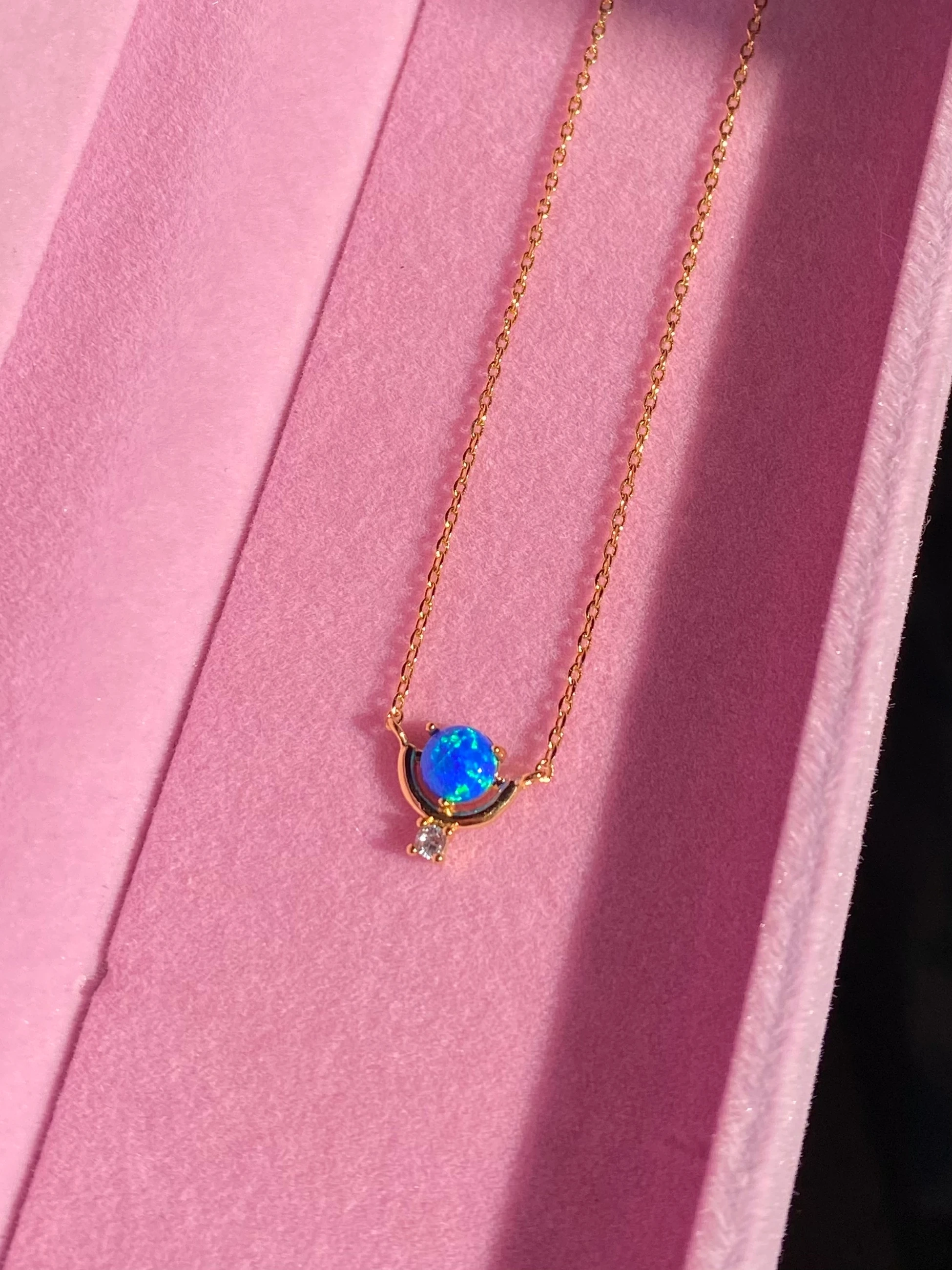 Çelik Minimal Mavi Opal Taşlı Kolye