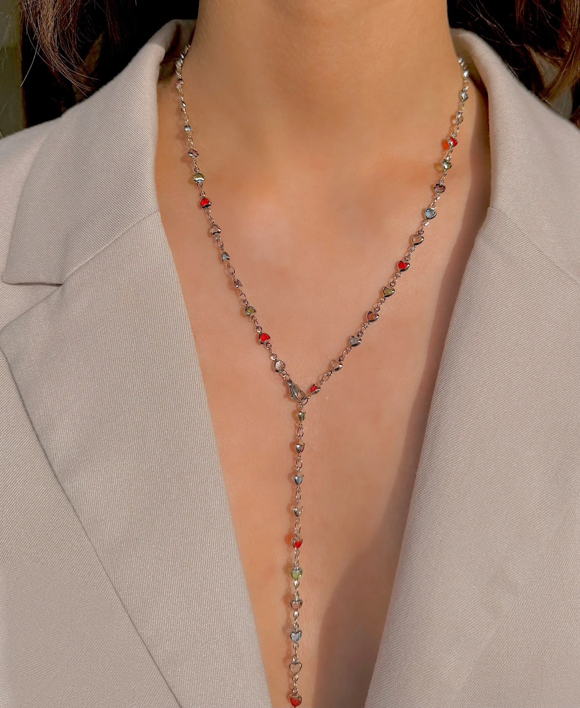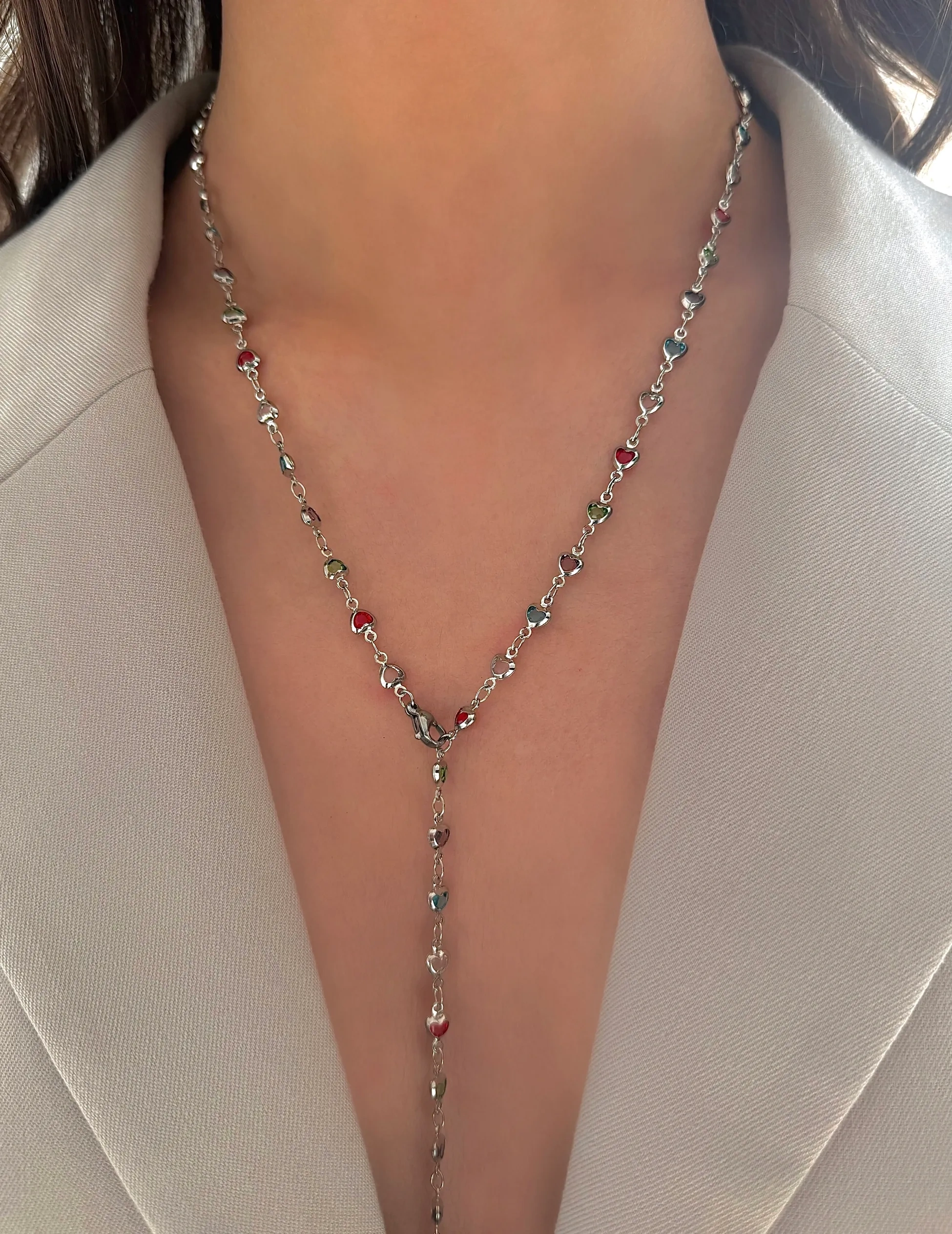 Çelik Minimal Renkli Kalpli Y Kolye