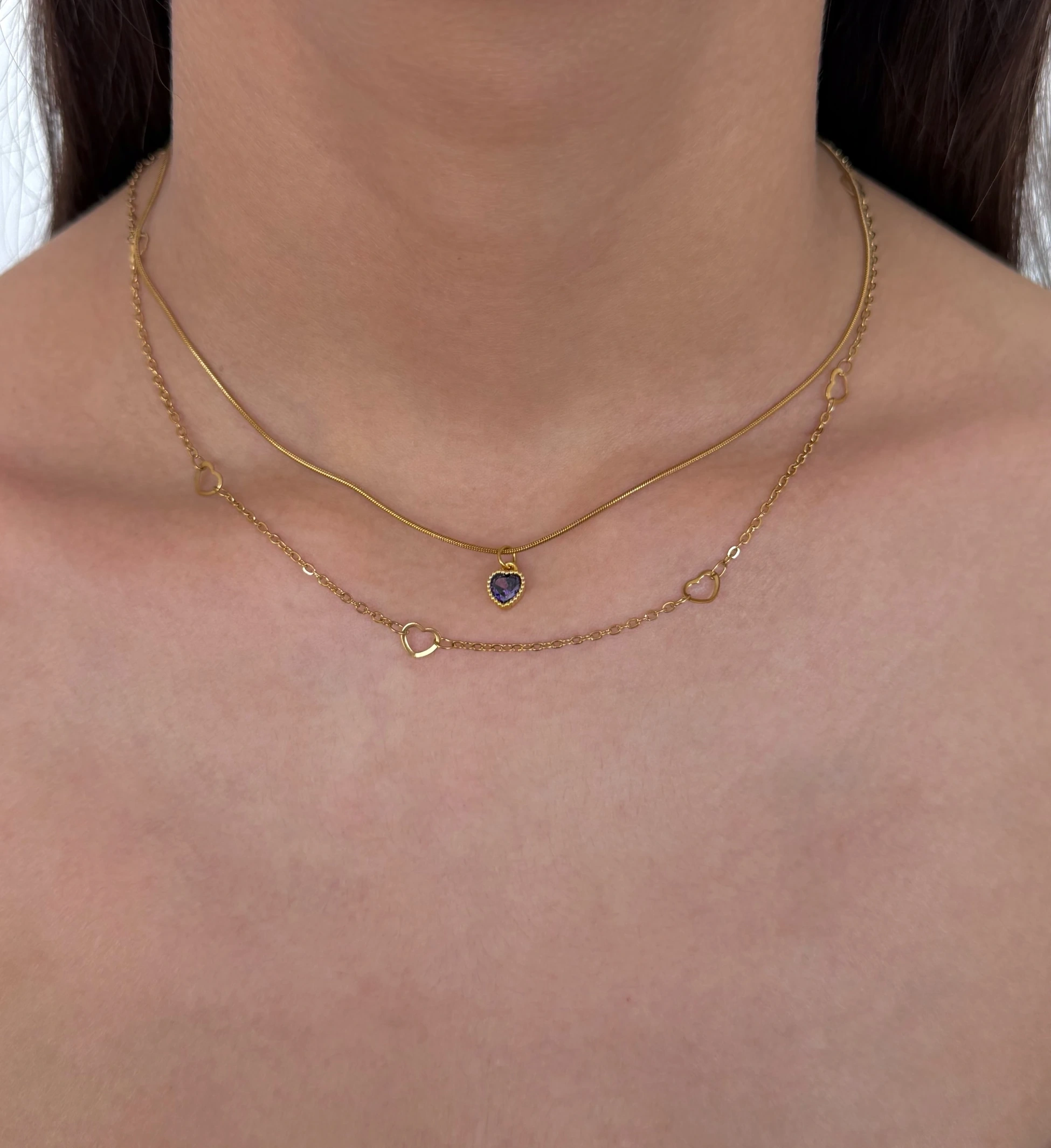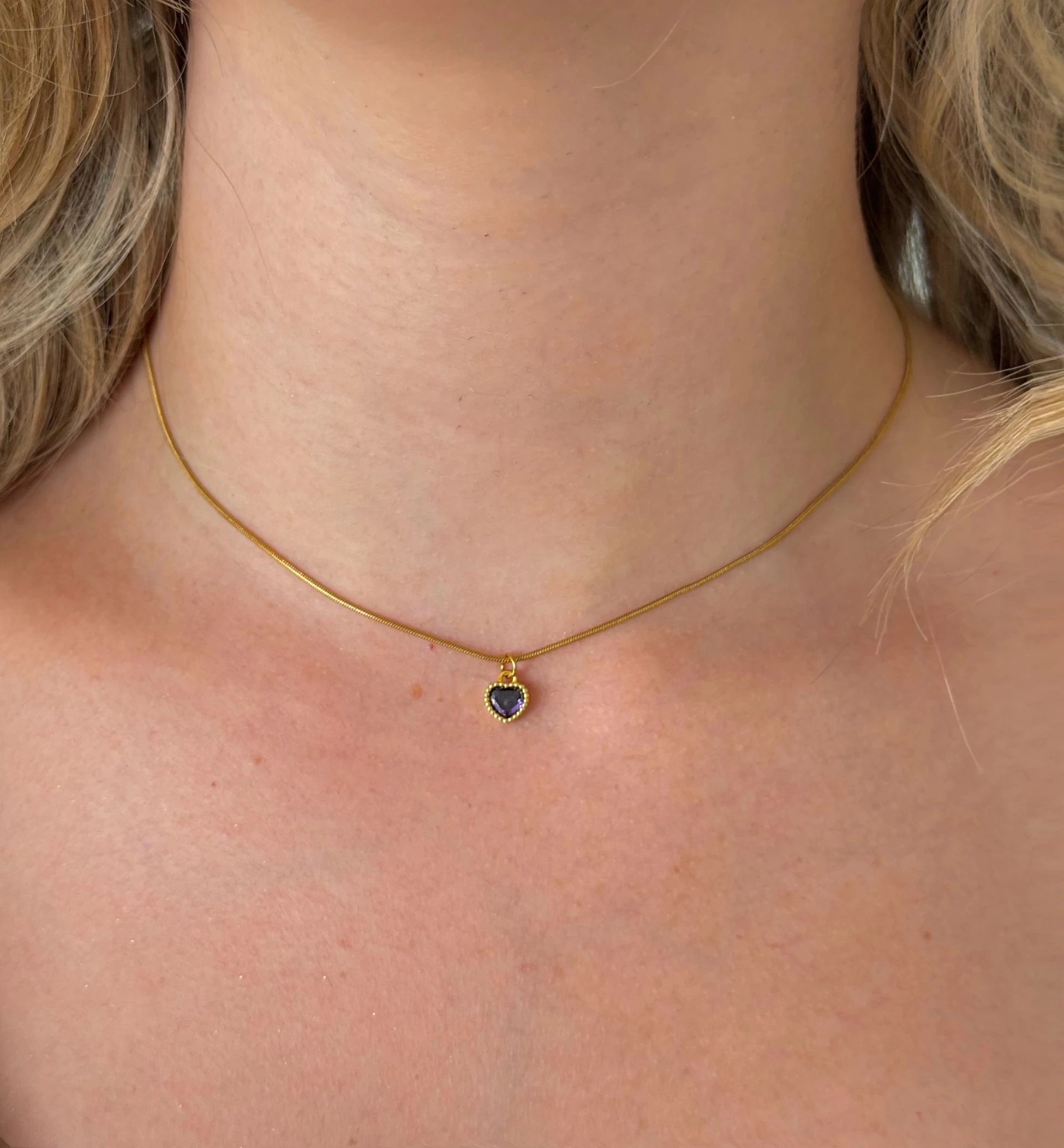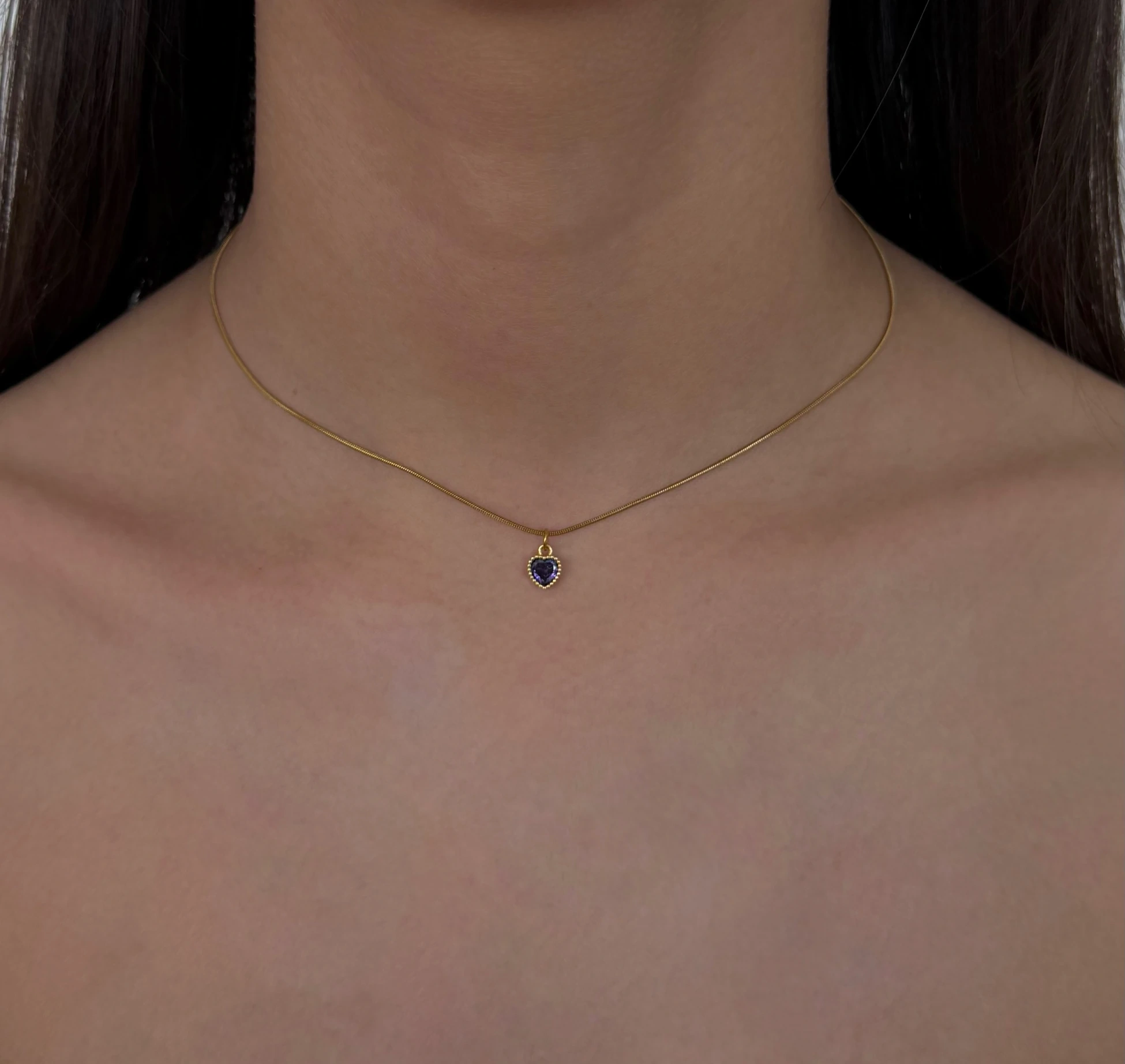 Çelik Mor Mini Kalp Choker