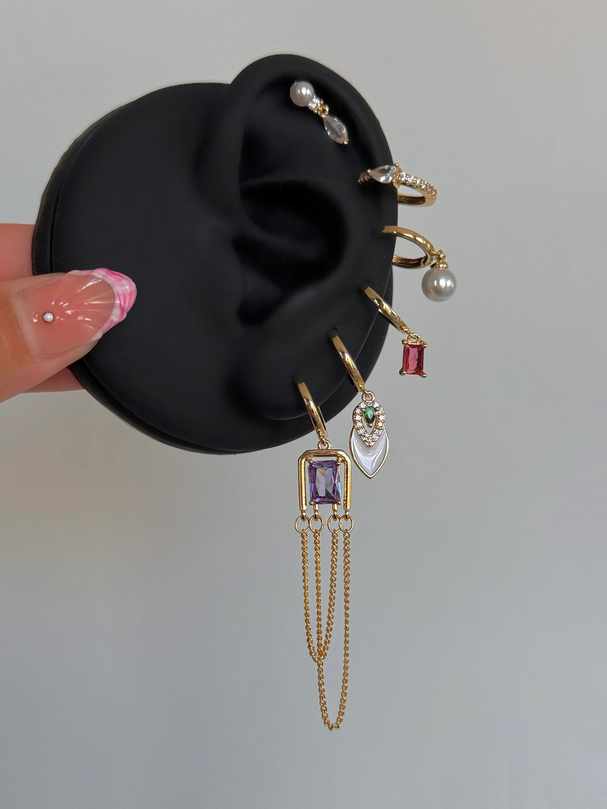 Çelik Mor Taşlı 6 Lı Küpe Seti