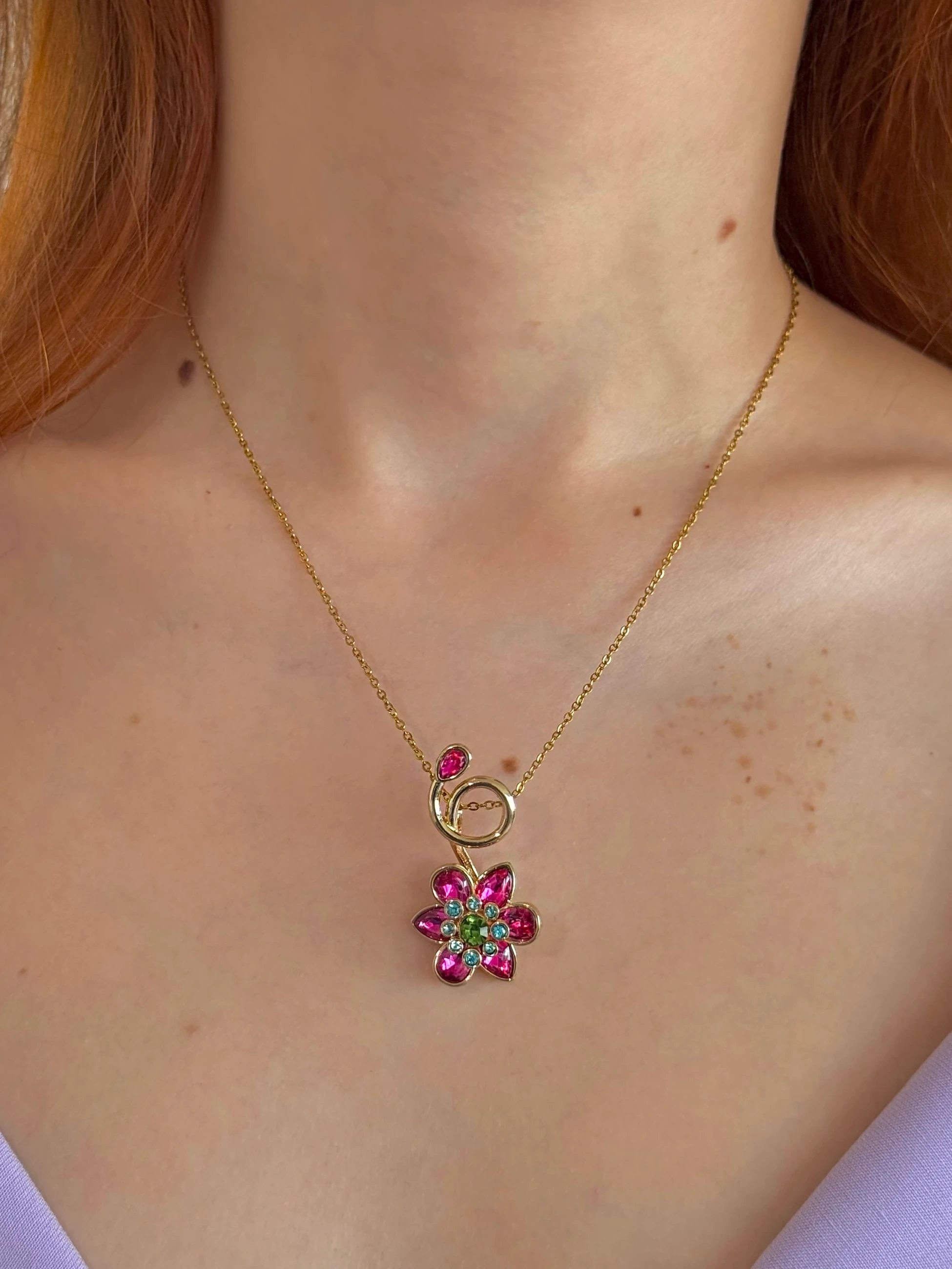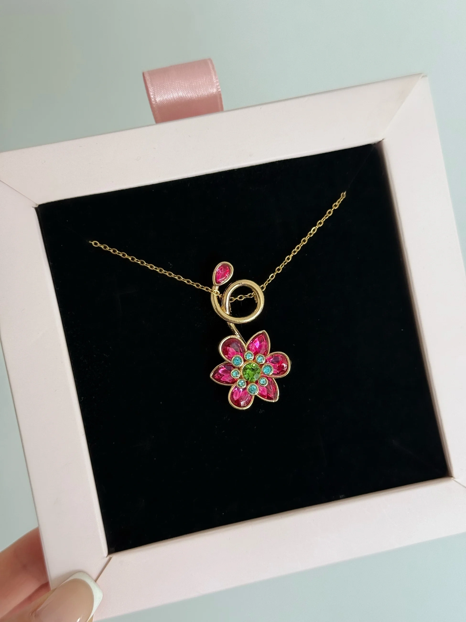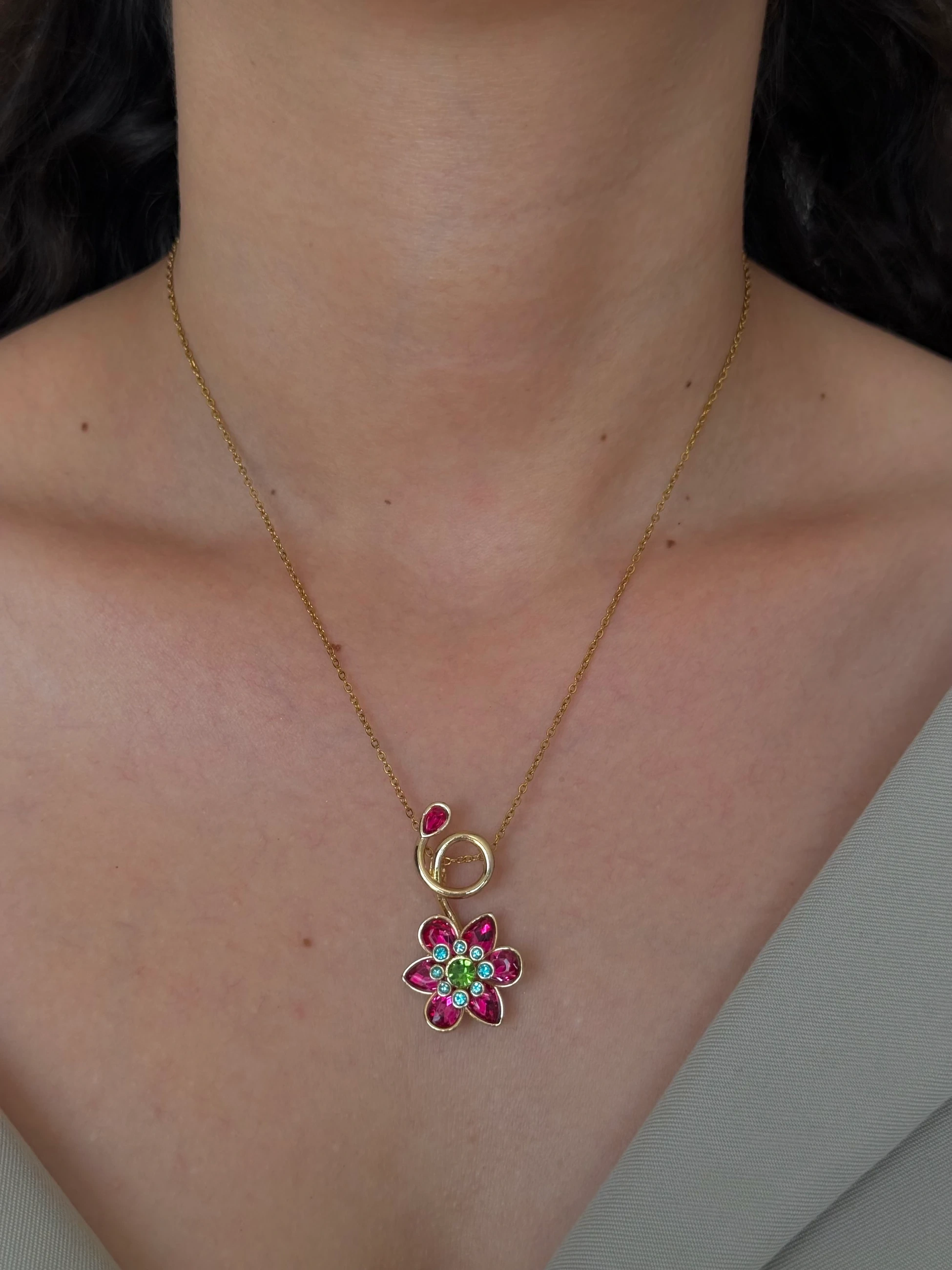 Çelik Pembe Çiçek Kolye