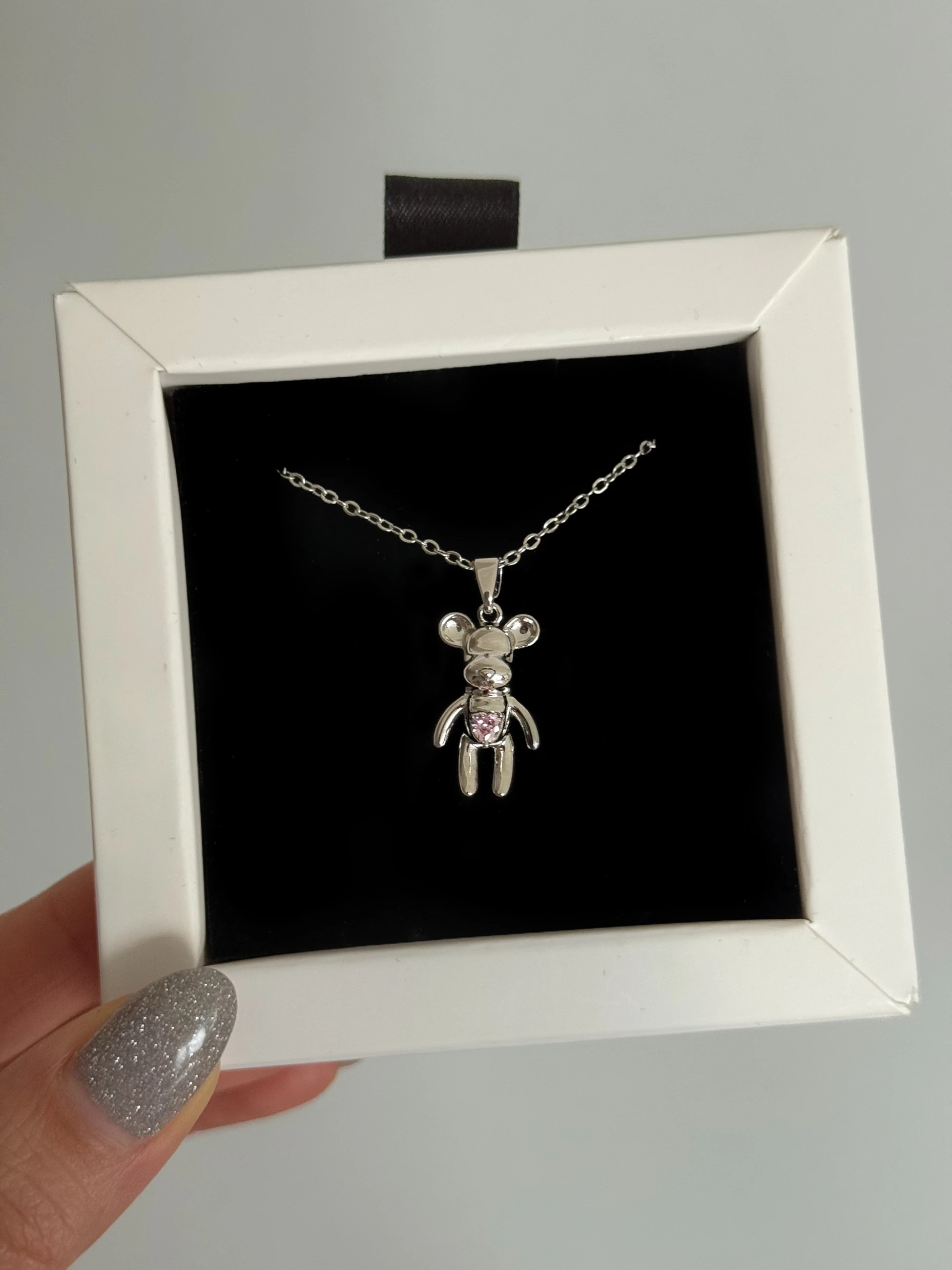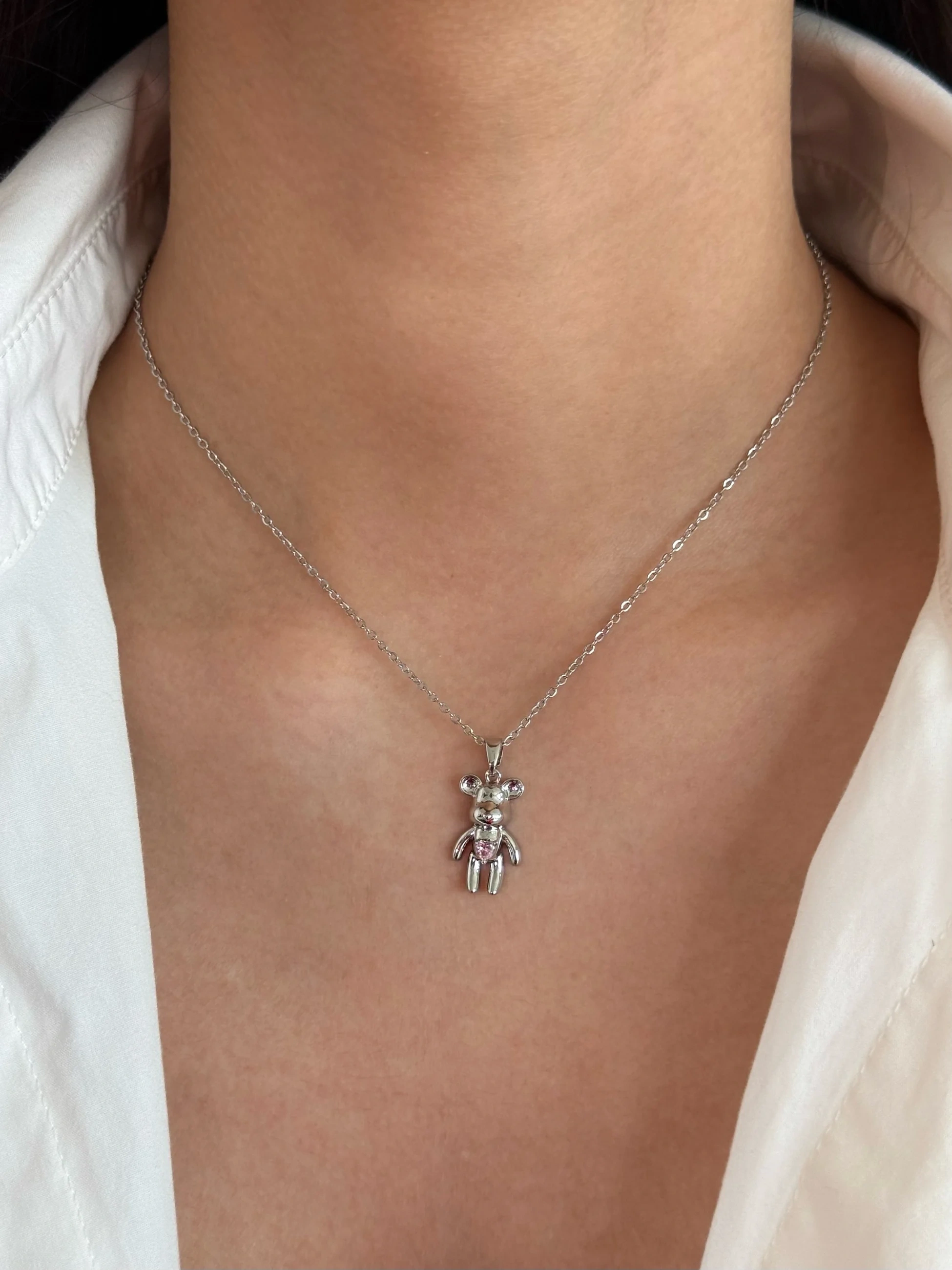 Çelik Pembe Kalpli Ayıcık Kolye