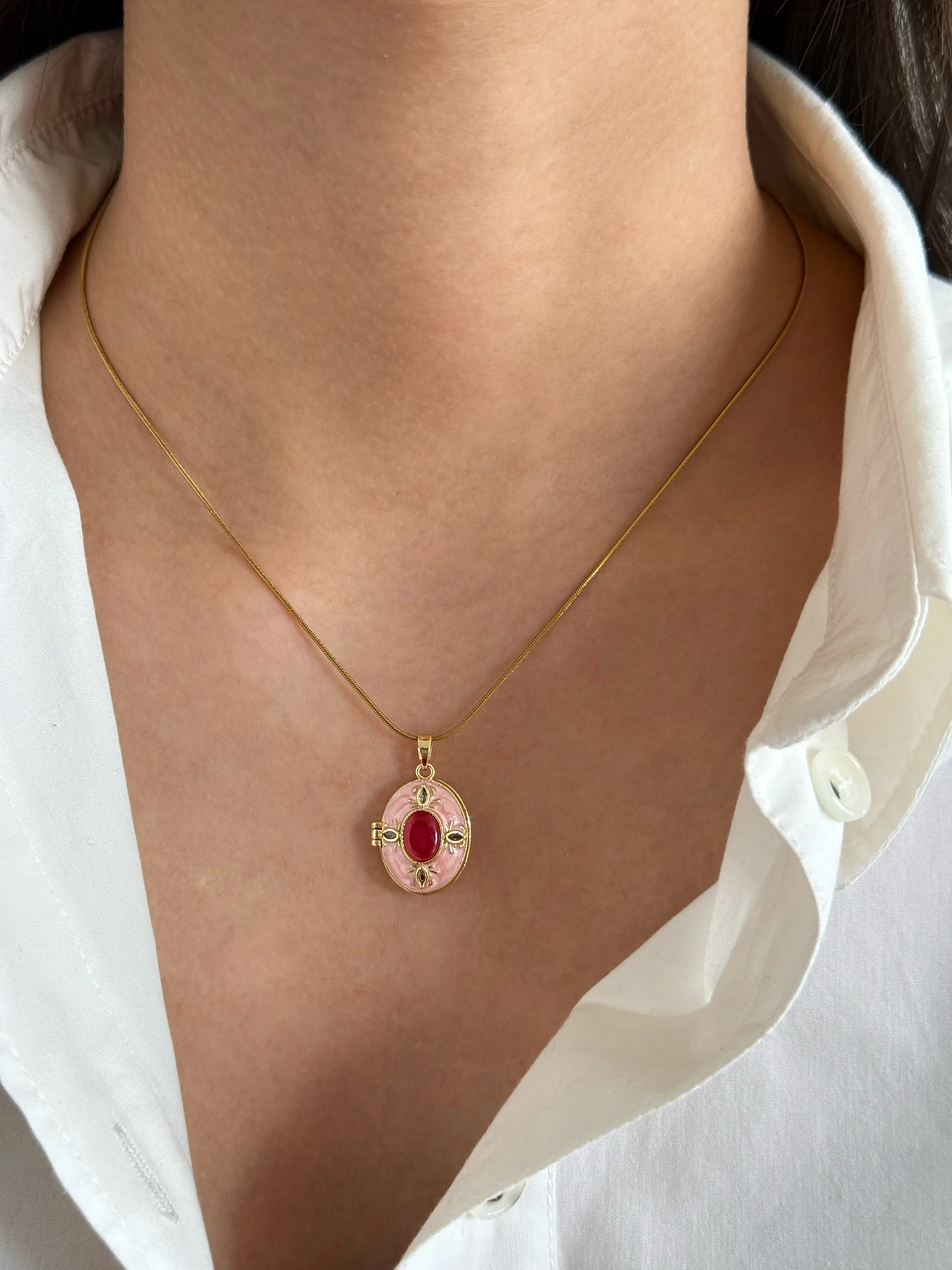 Çelik Pembe Kapaklı Kolye