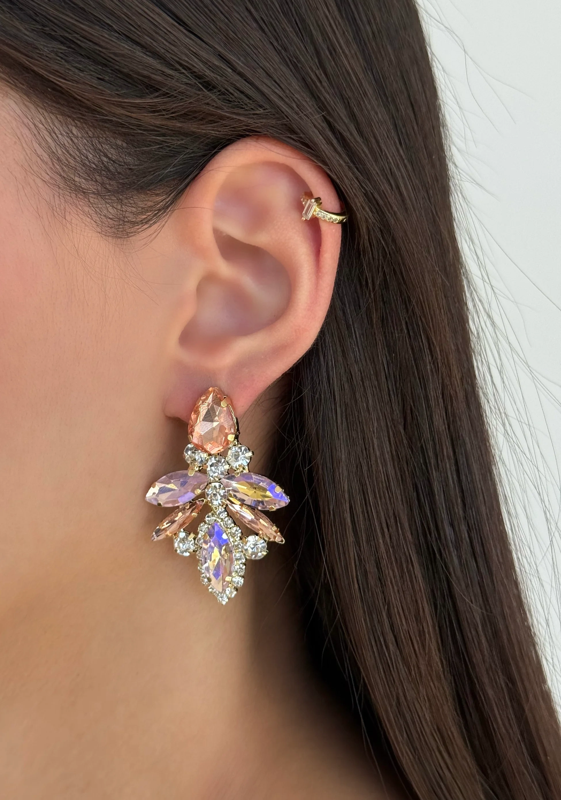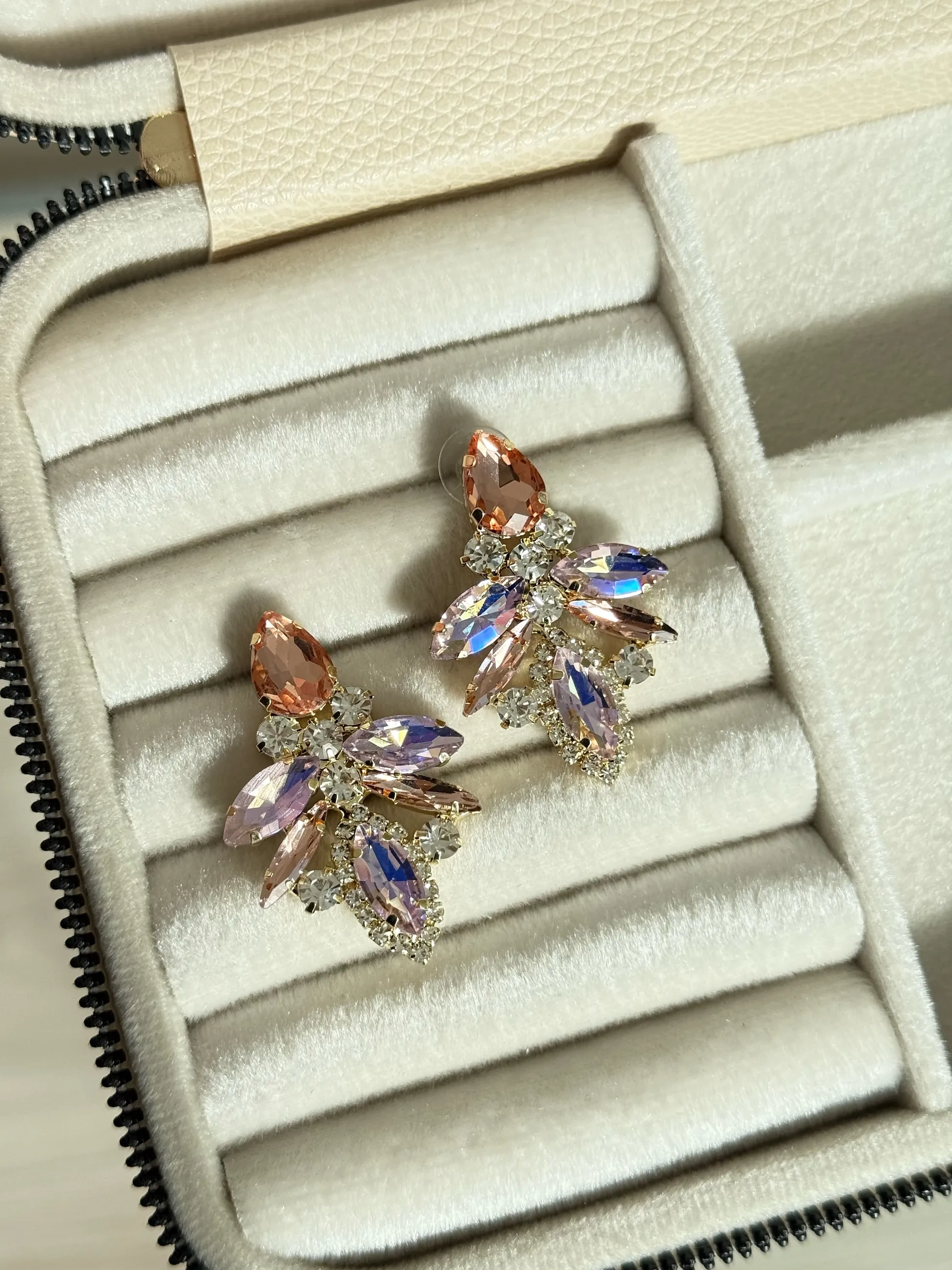 Çelik Pembe Kristal Taşlı Küpe