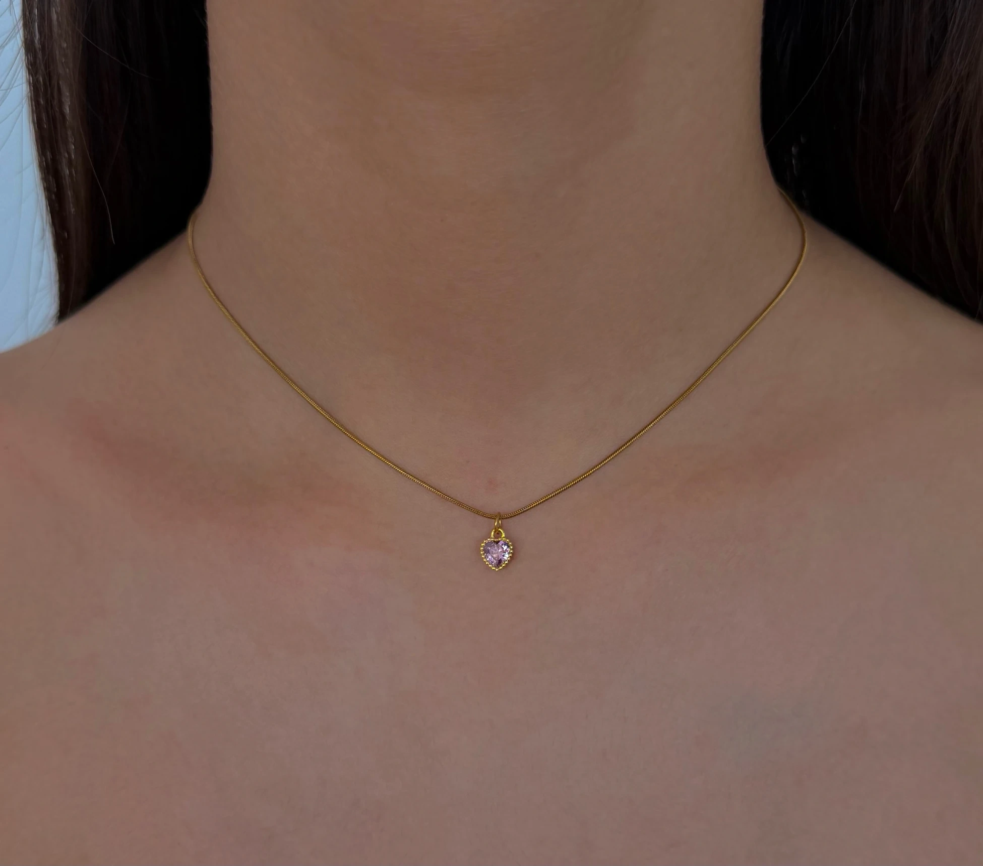 Çelik Pembe Mini Kalp Choker