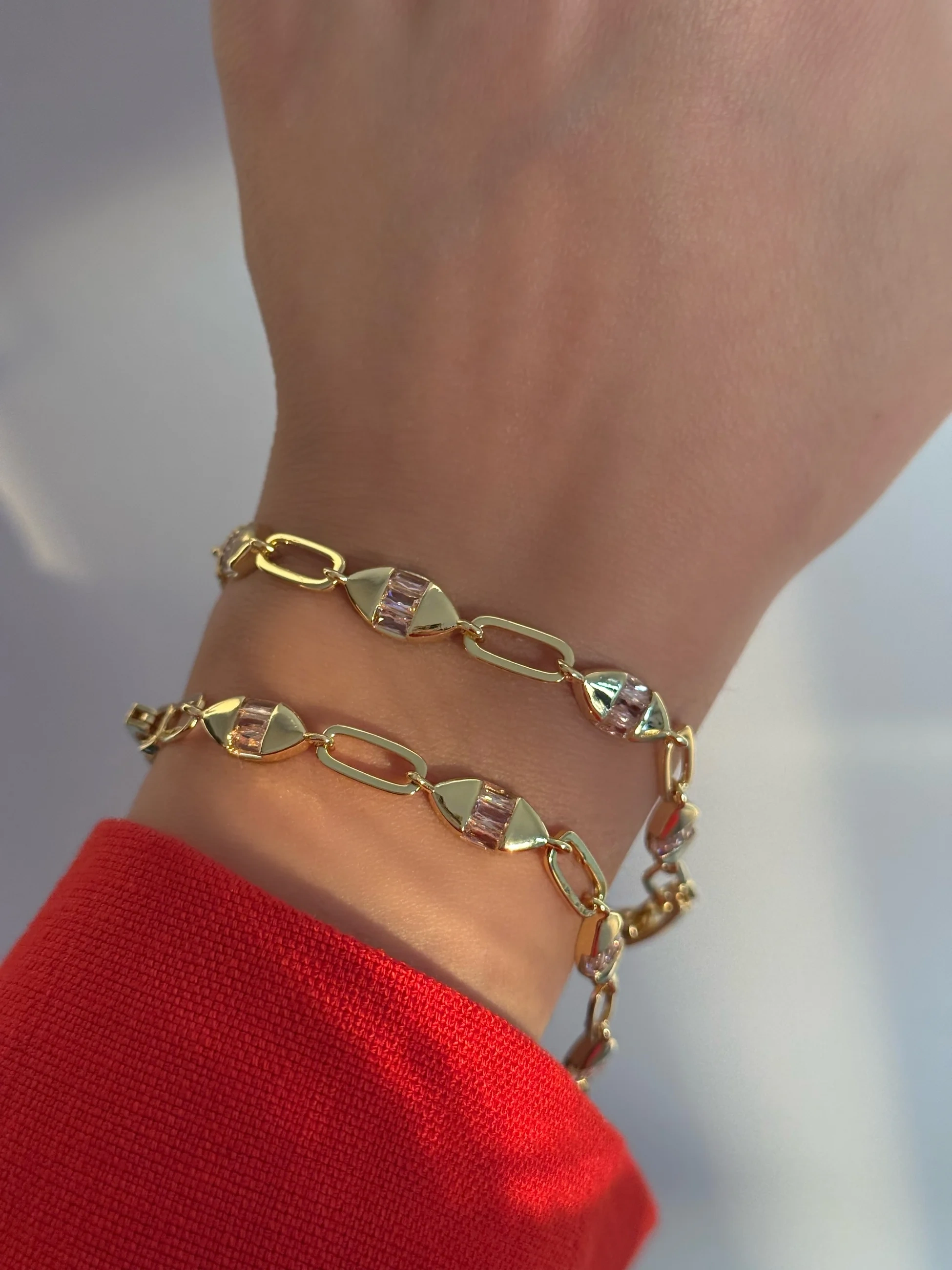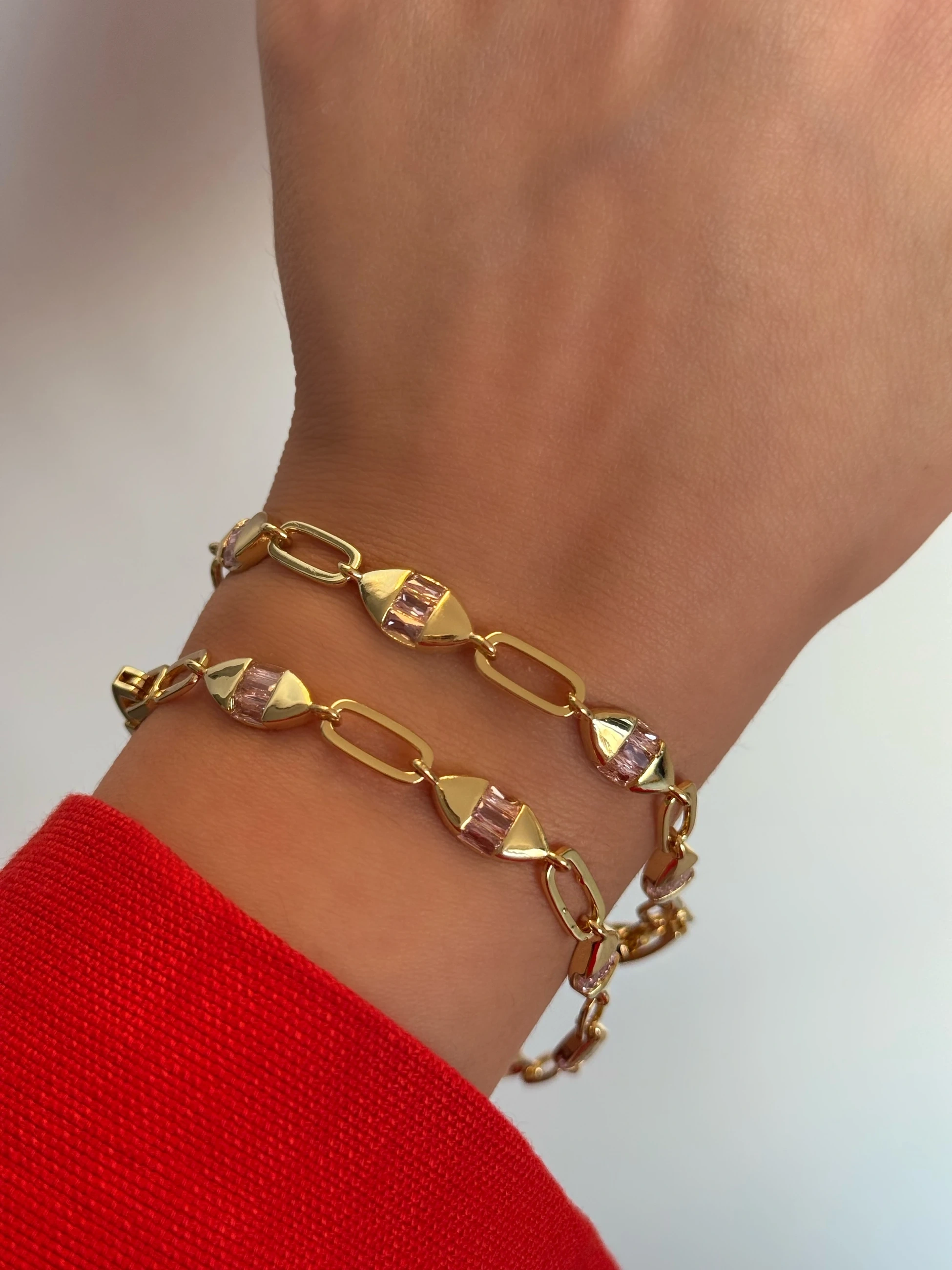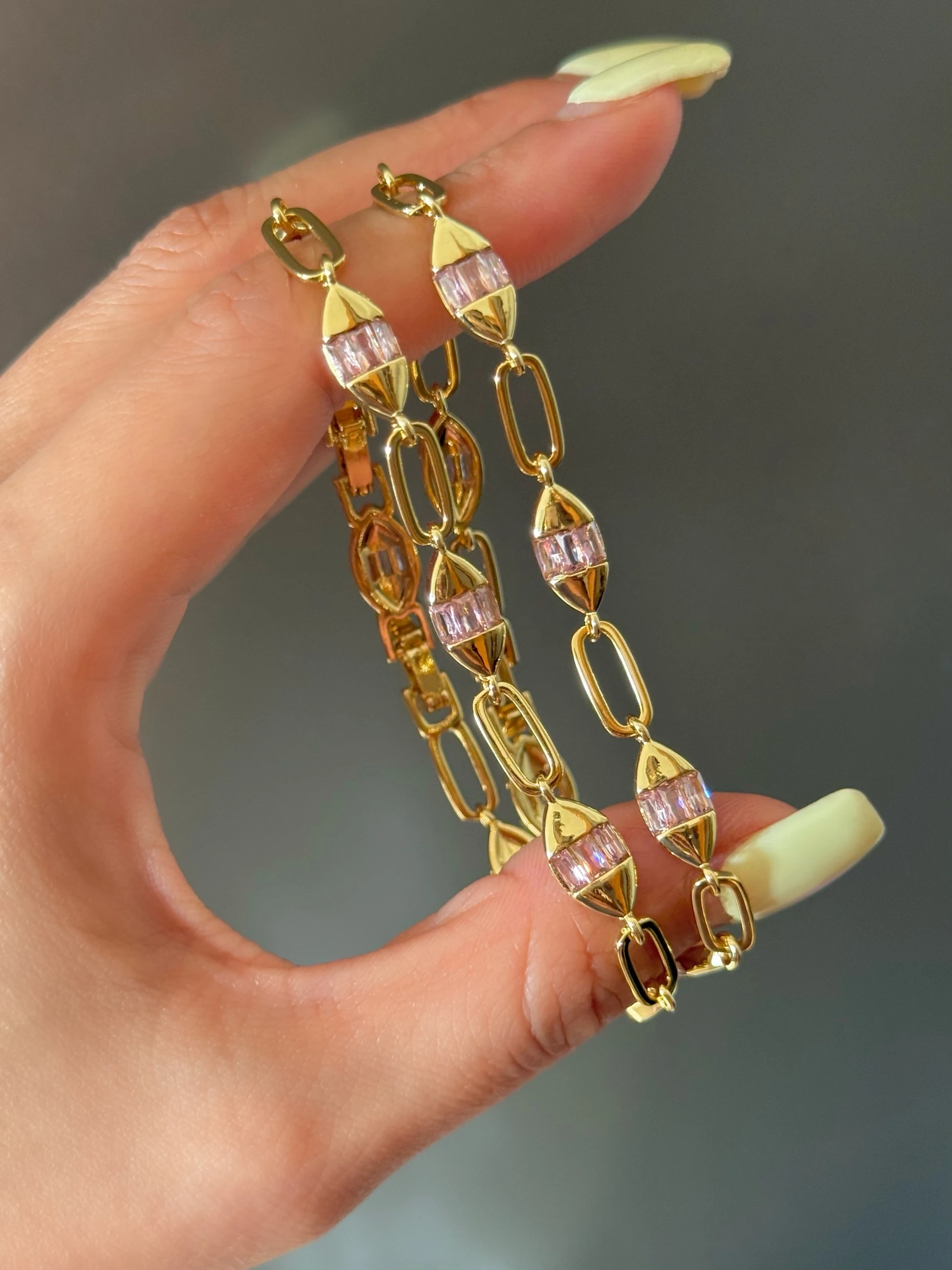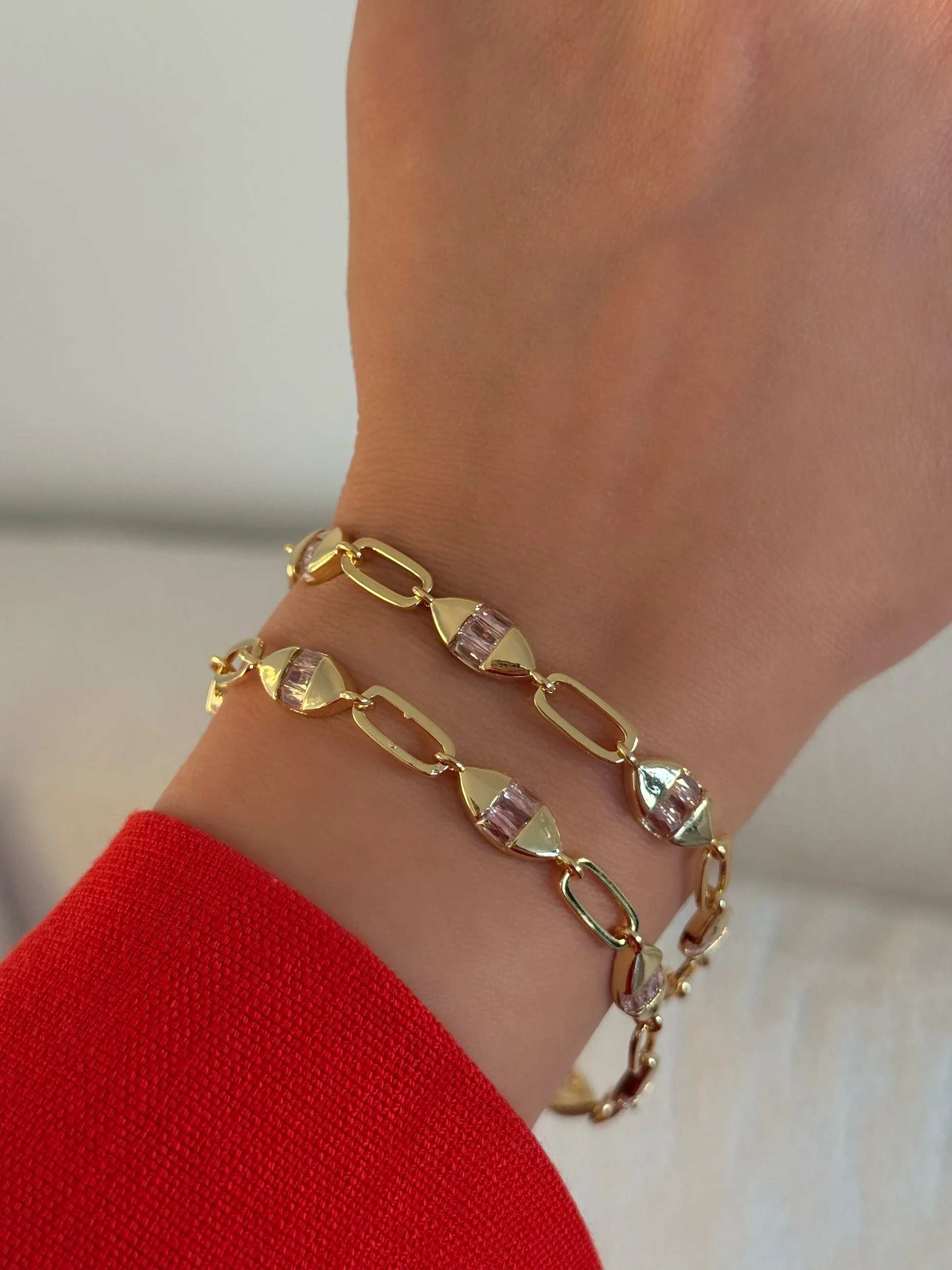Çelik Pembe Minimal Taşlı Bileklik