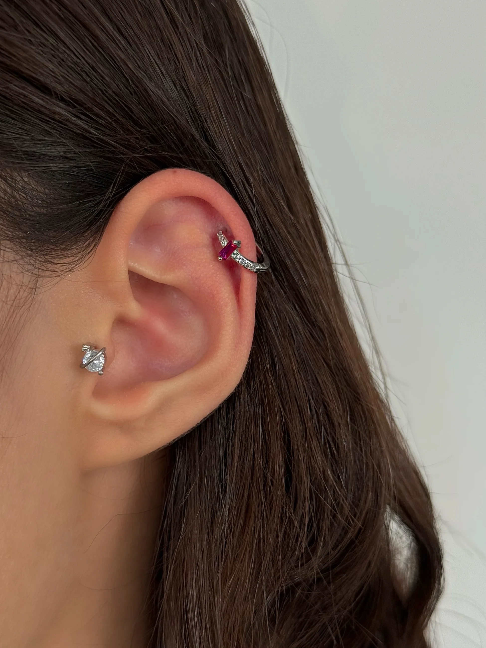 Çelik Pembe Taşlı Halka Piercing