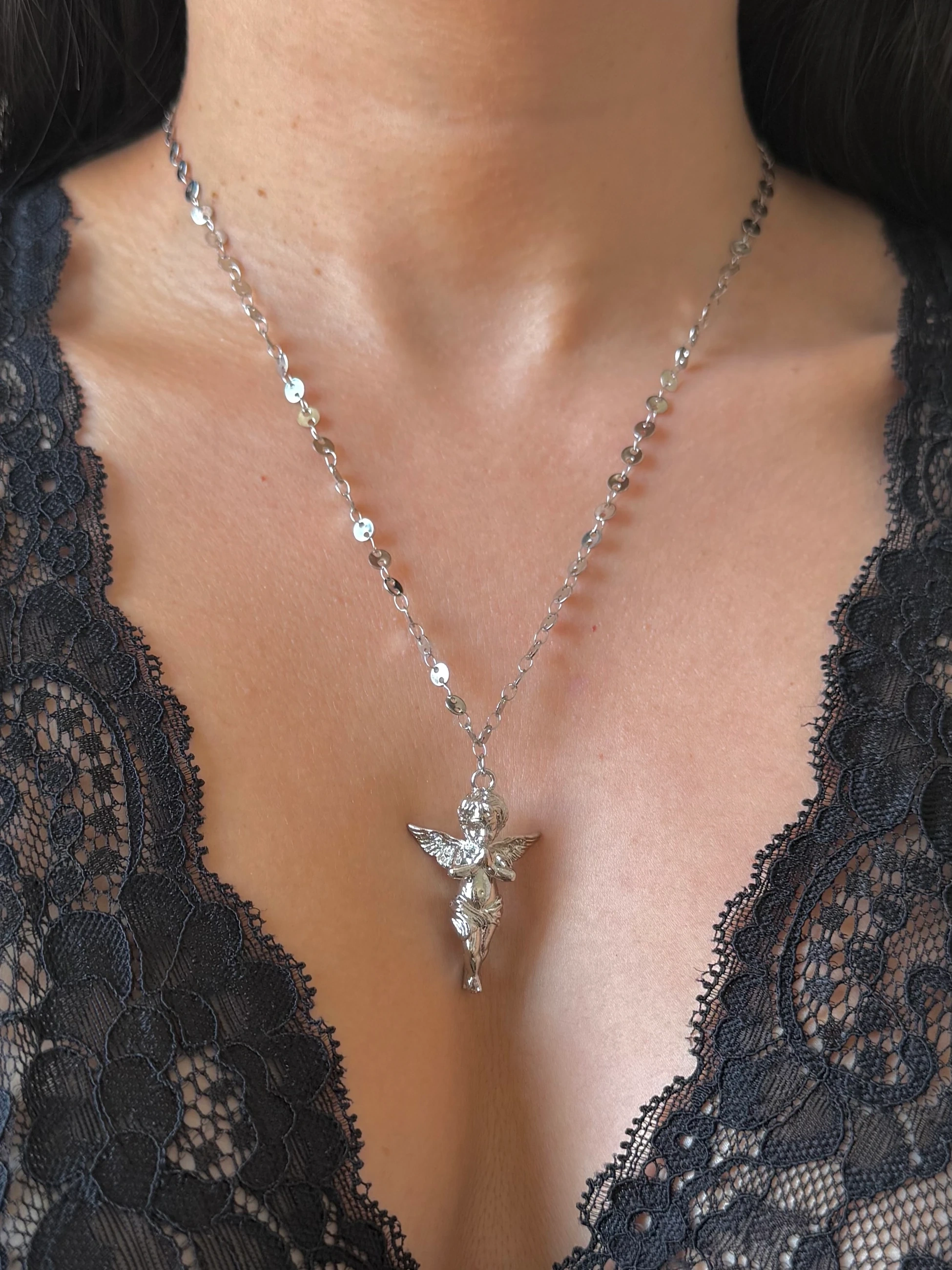 Çelik Silver 3 Boyutlu Melek Kolye