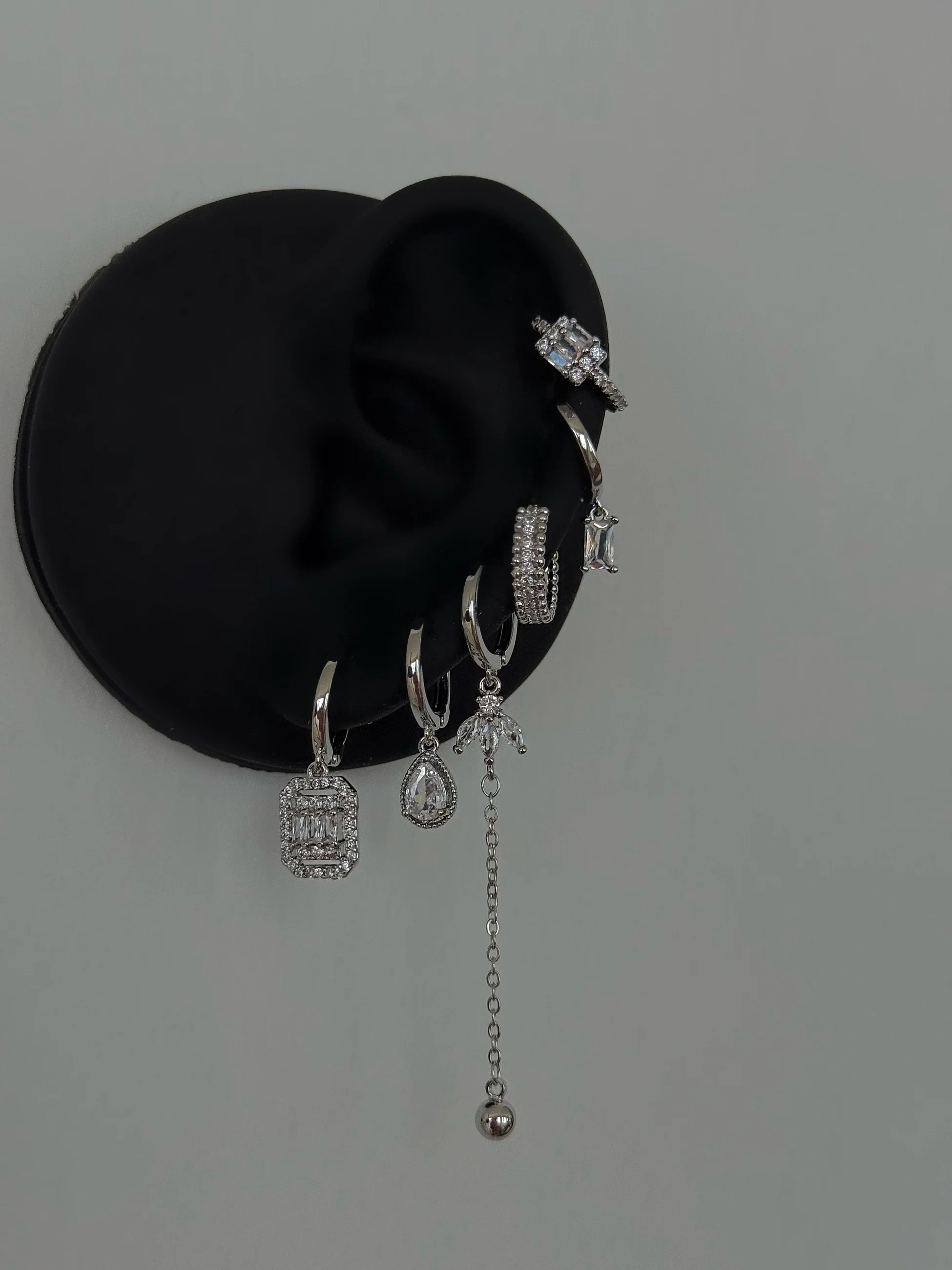 Çelik Silver Baget Taşlı 6 Lı Küpe Seti