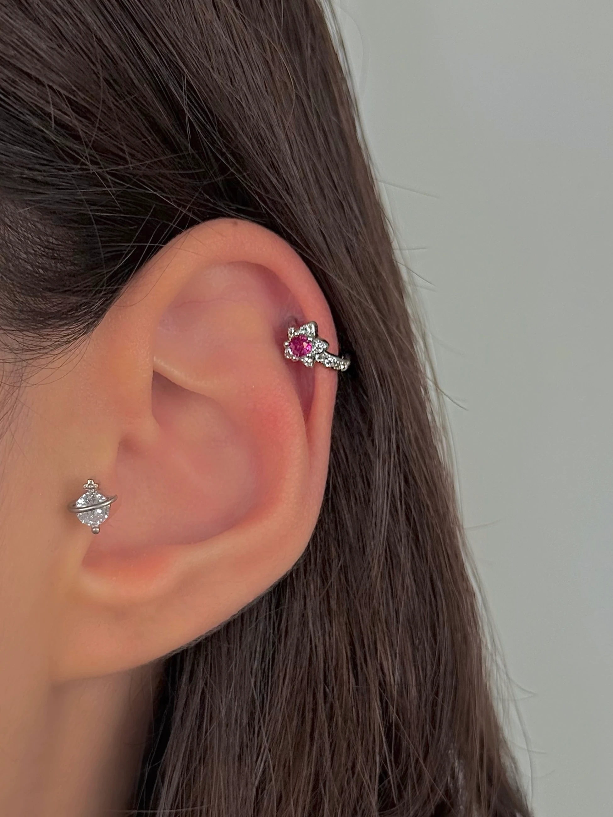 Çelik Silver Çiçek Detaylı Halka Piercing