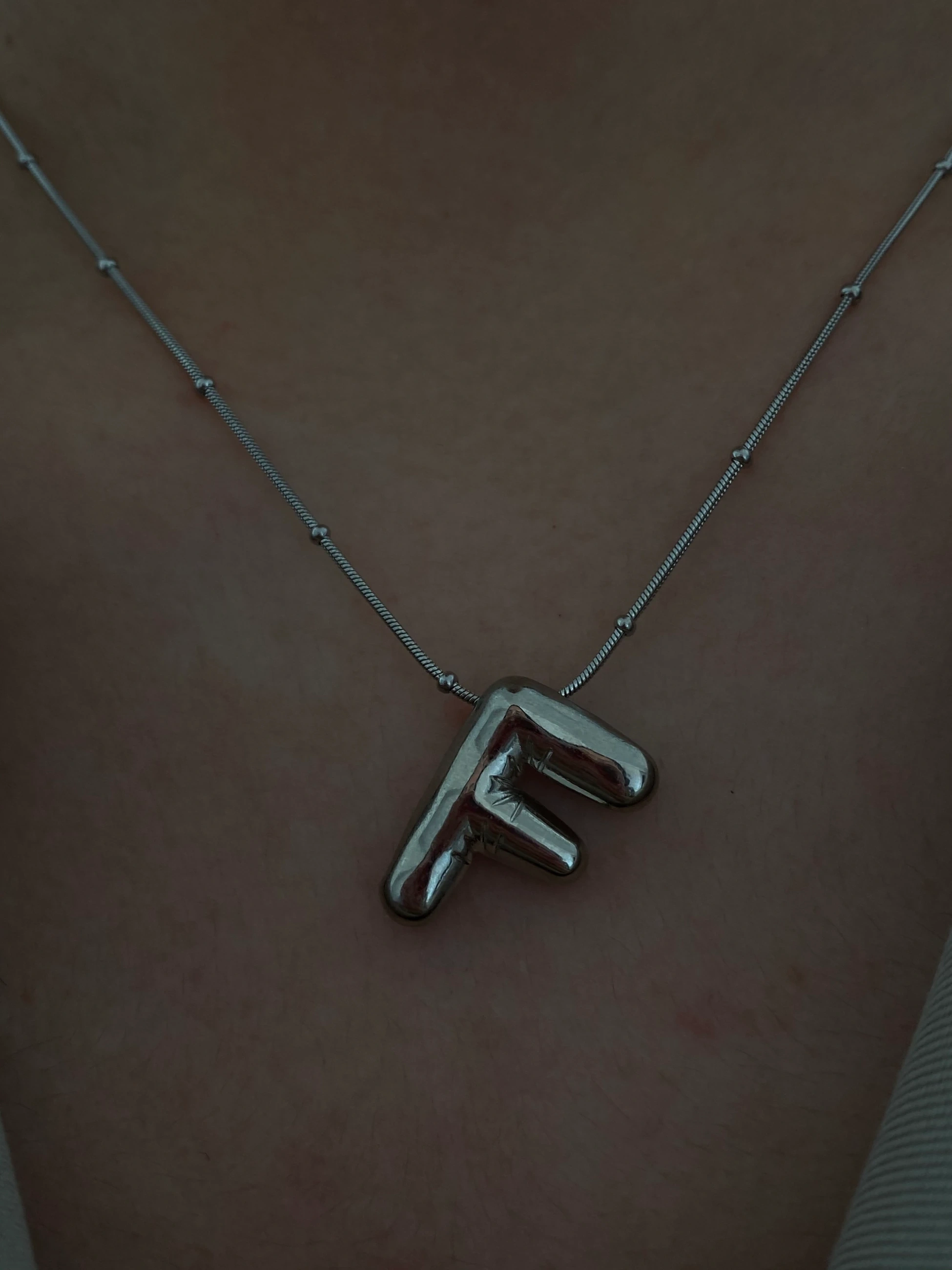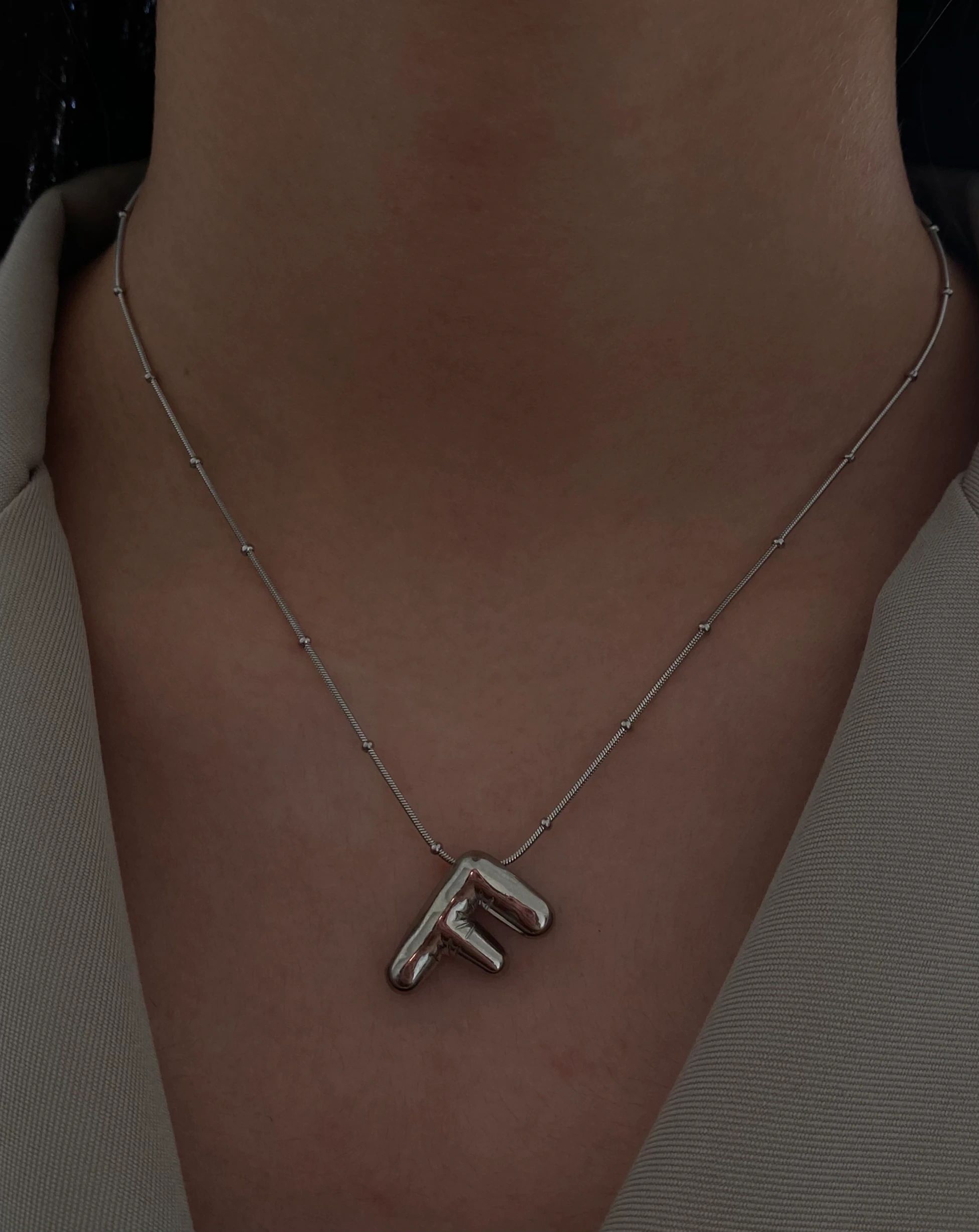 Çelik Silver F Balon Harf Kolye