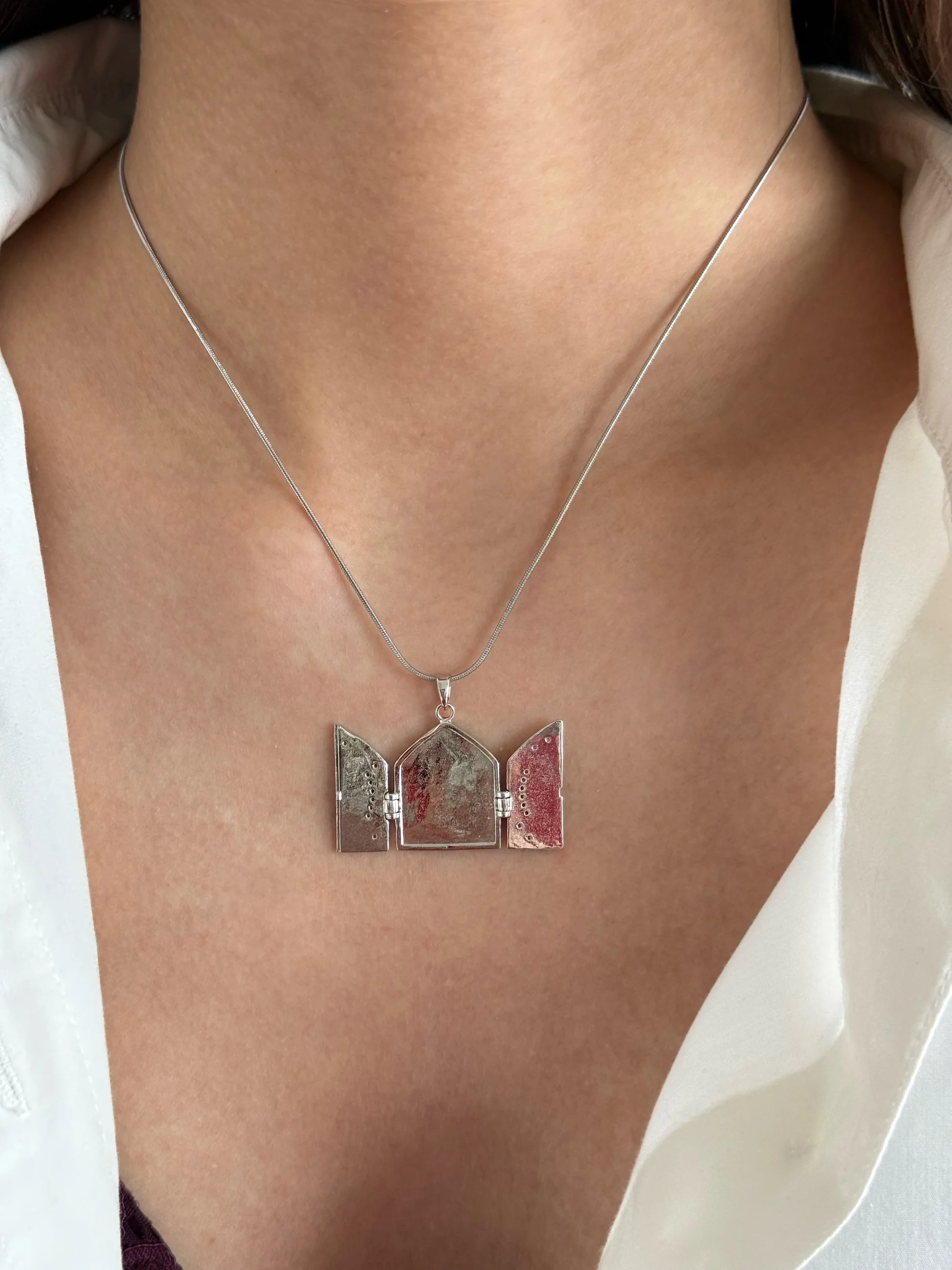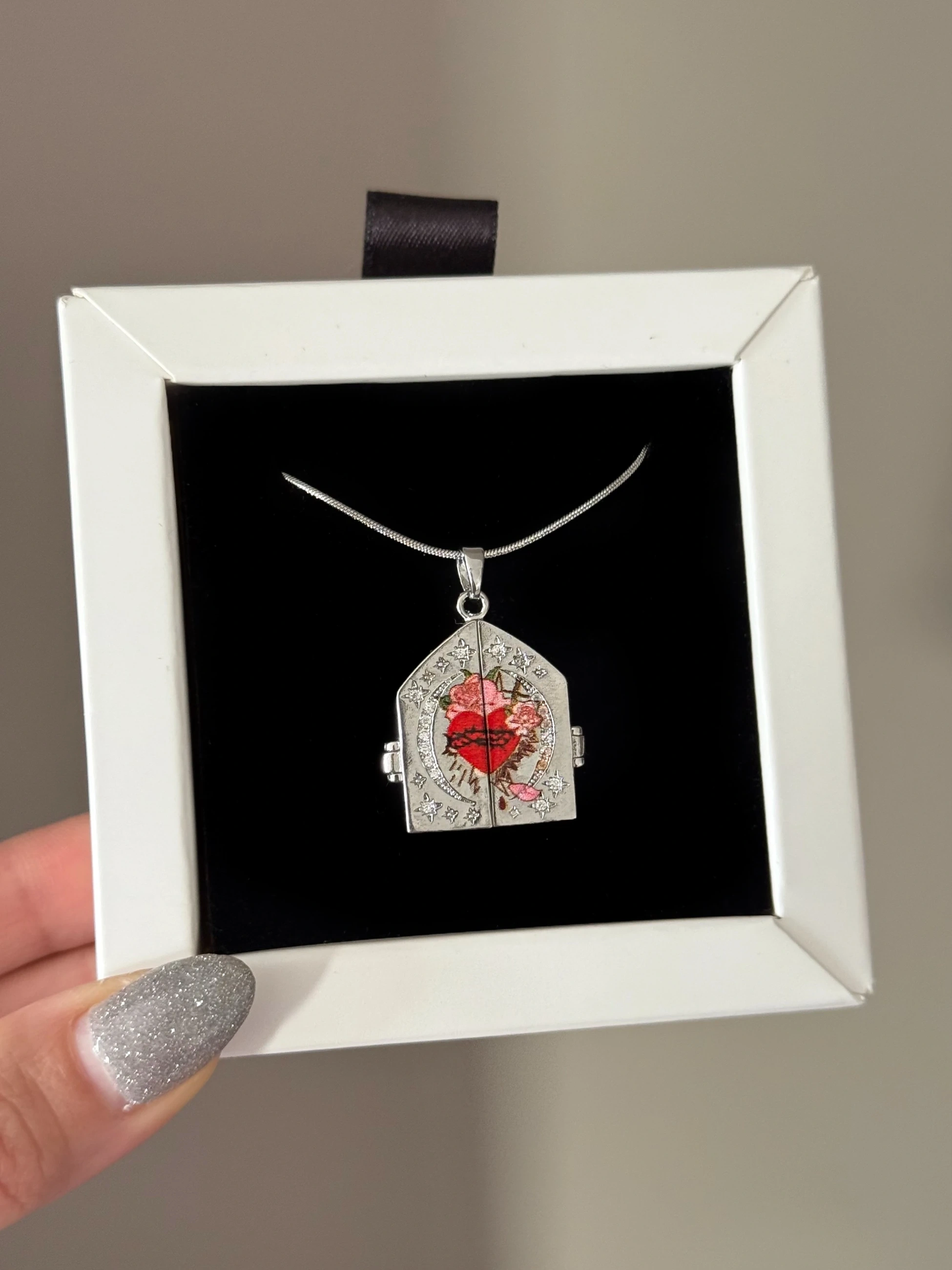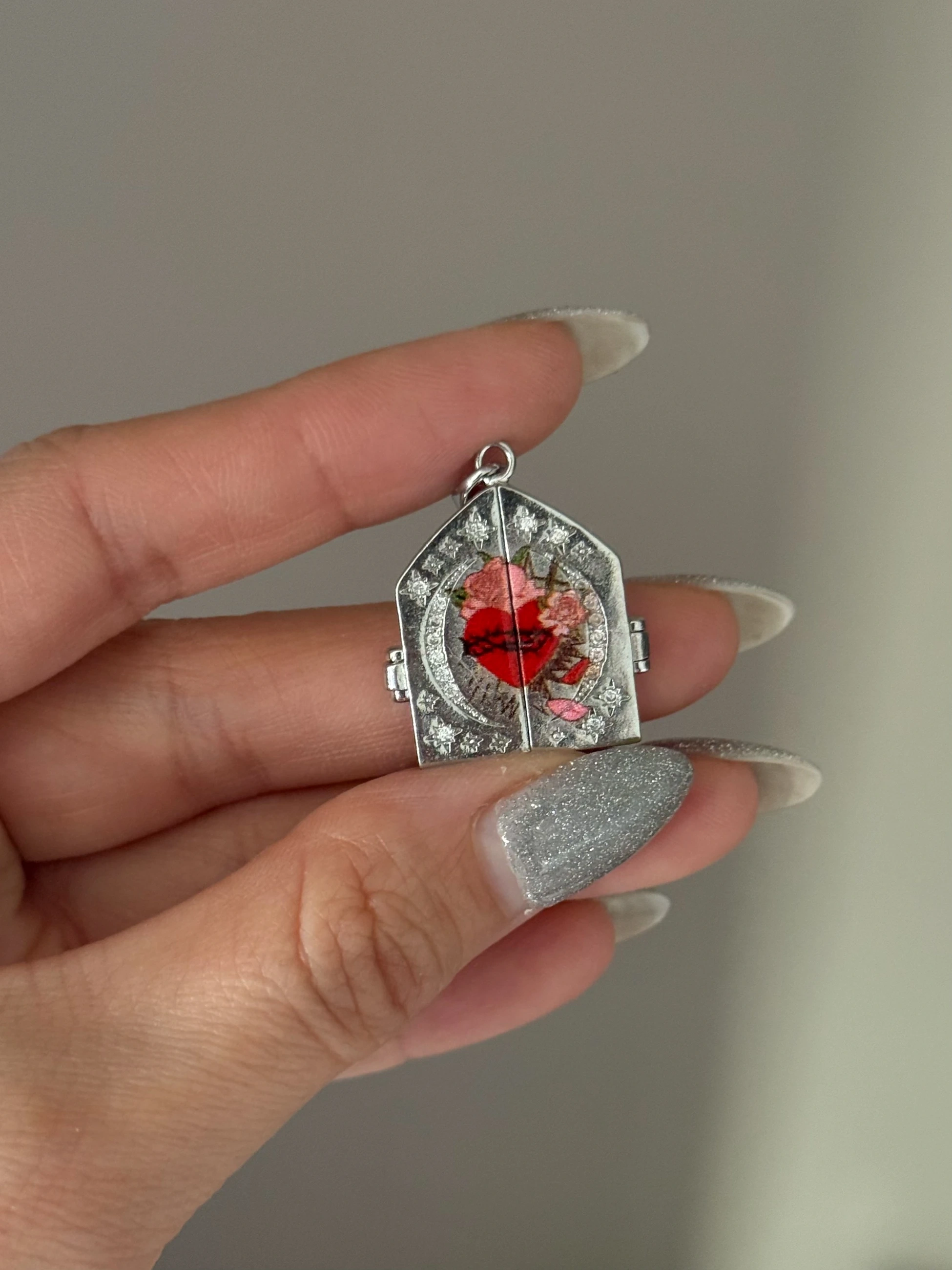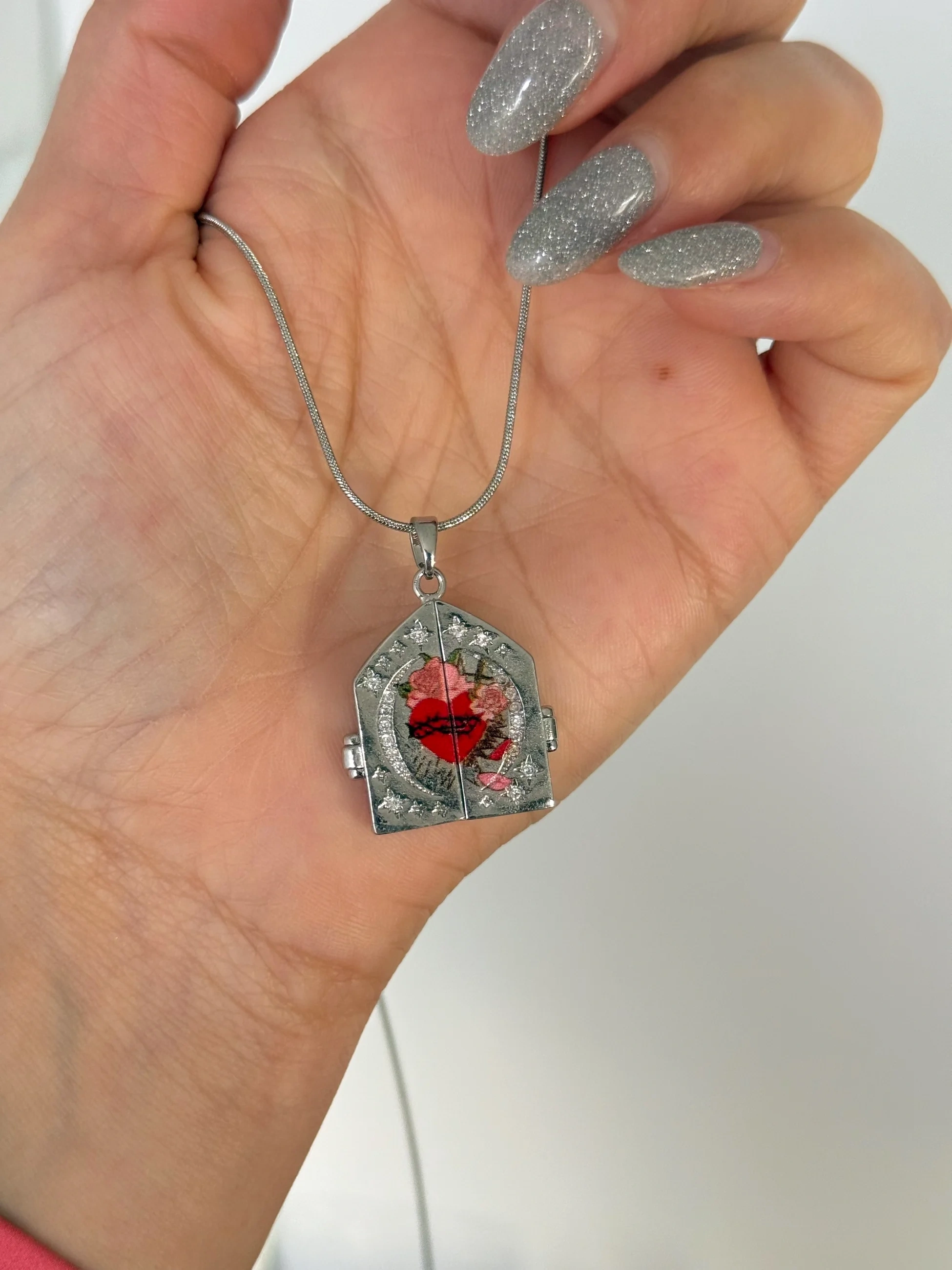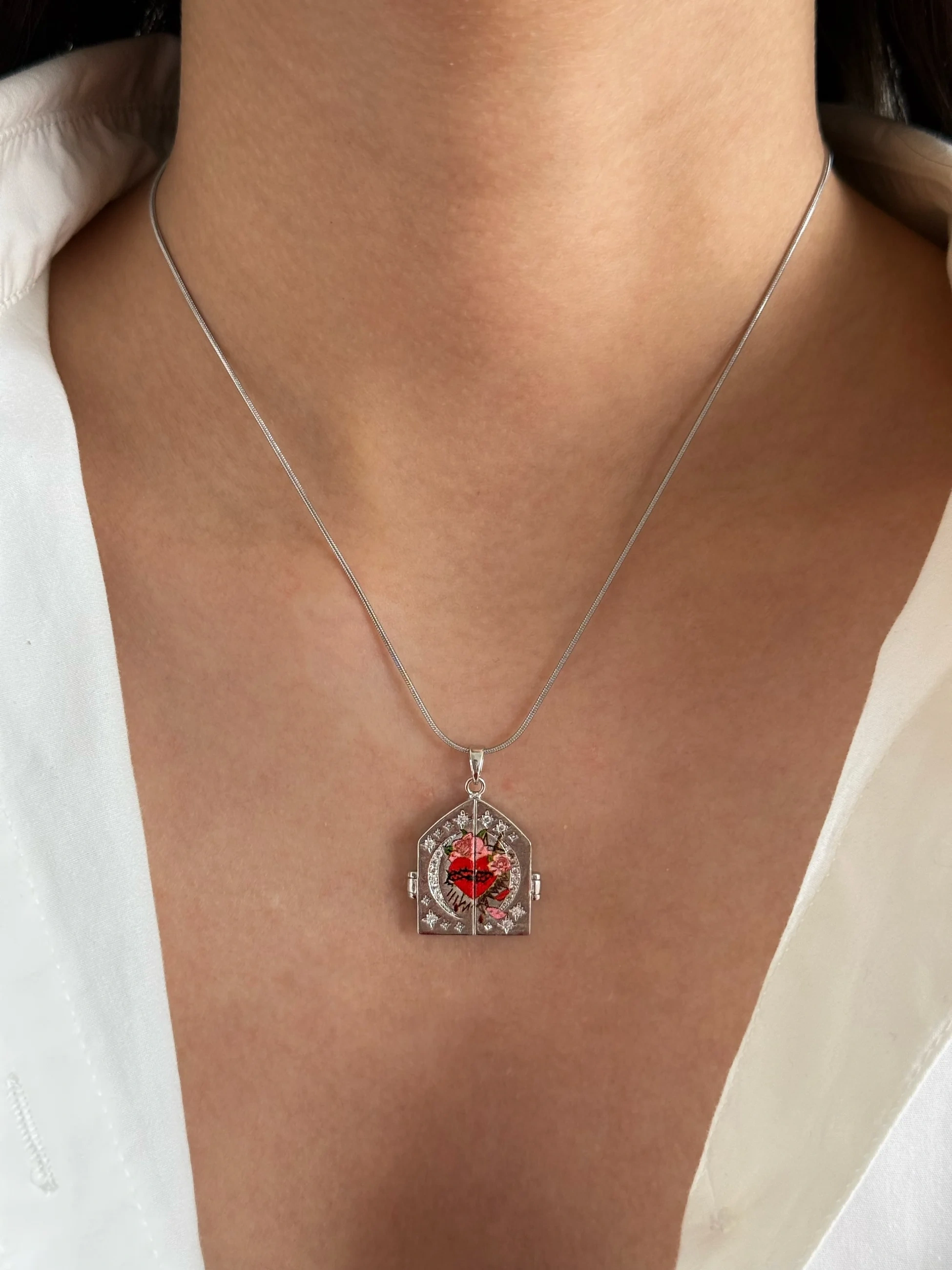 Çelik Silver Heart n Roses Kolye