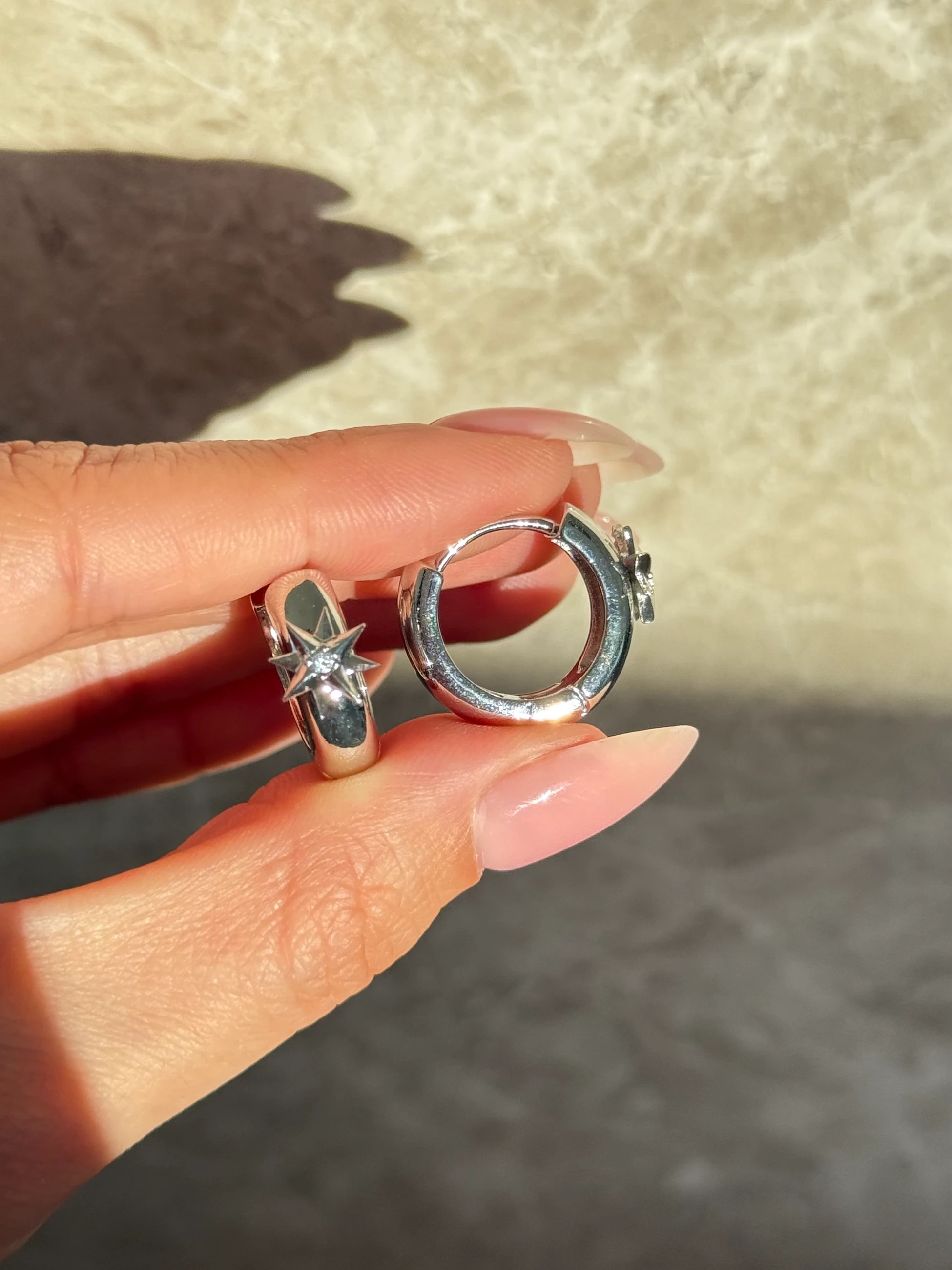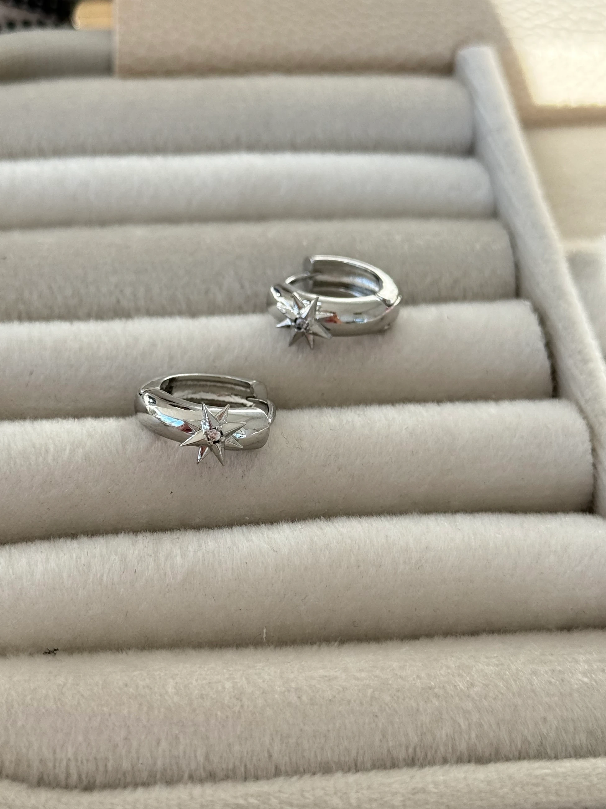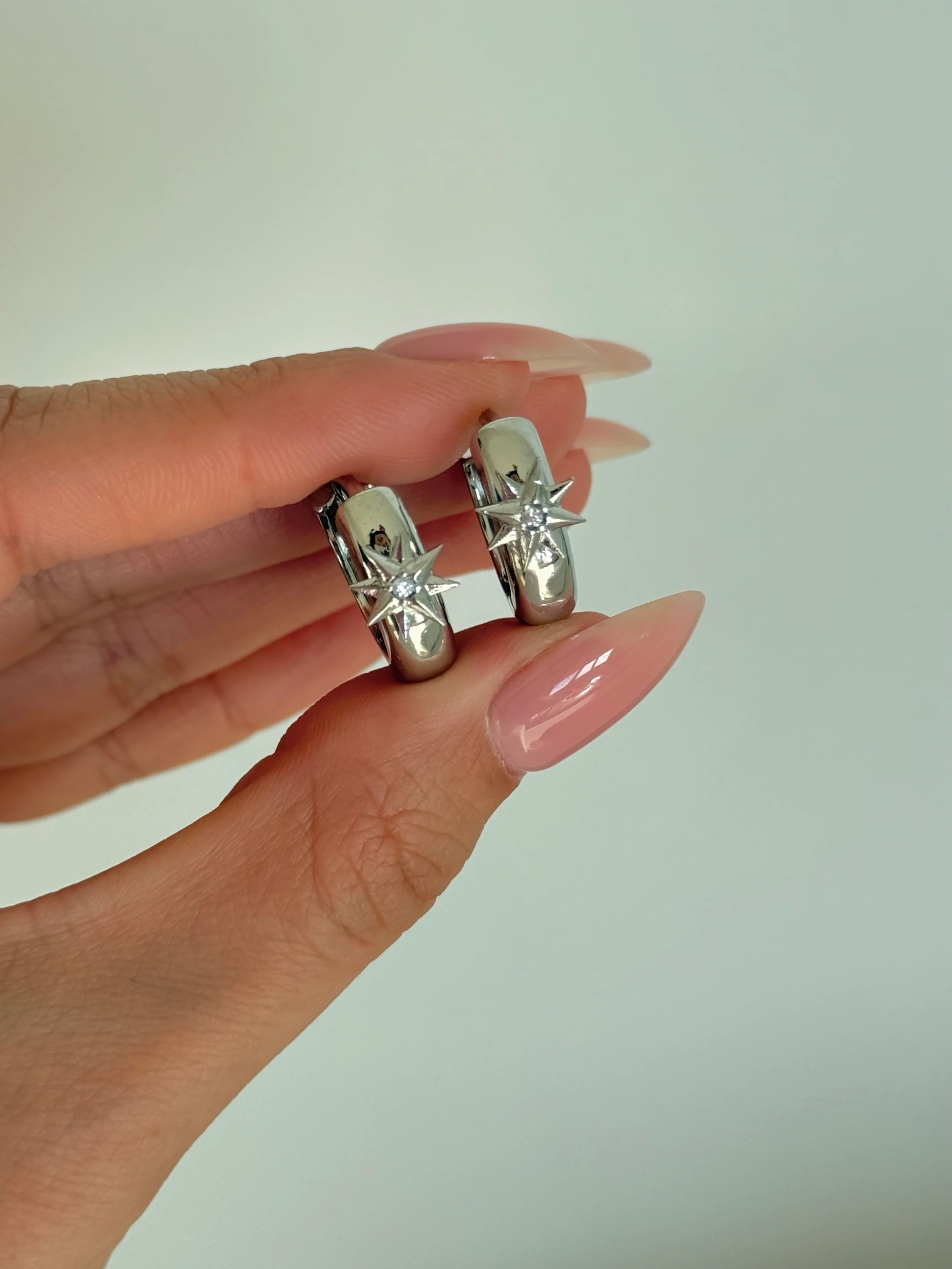 Çelik Silver Kutup Yıldızlı Halka Küpe
