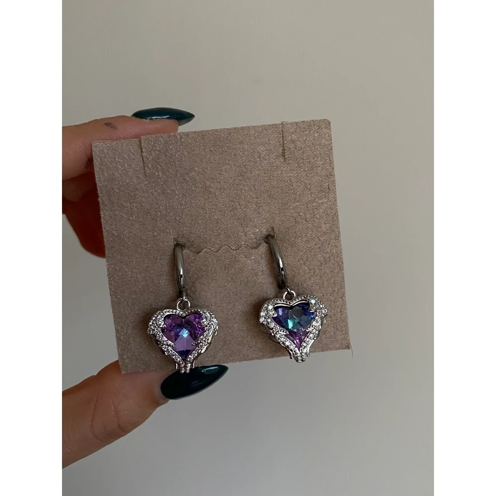 Çelik Silver Lila Melek Kanatlı Küpe