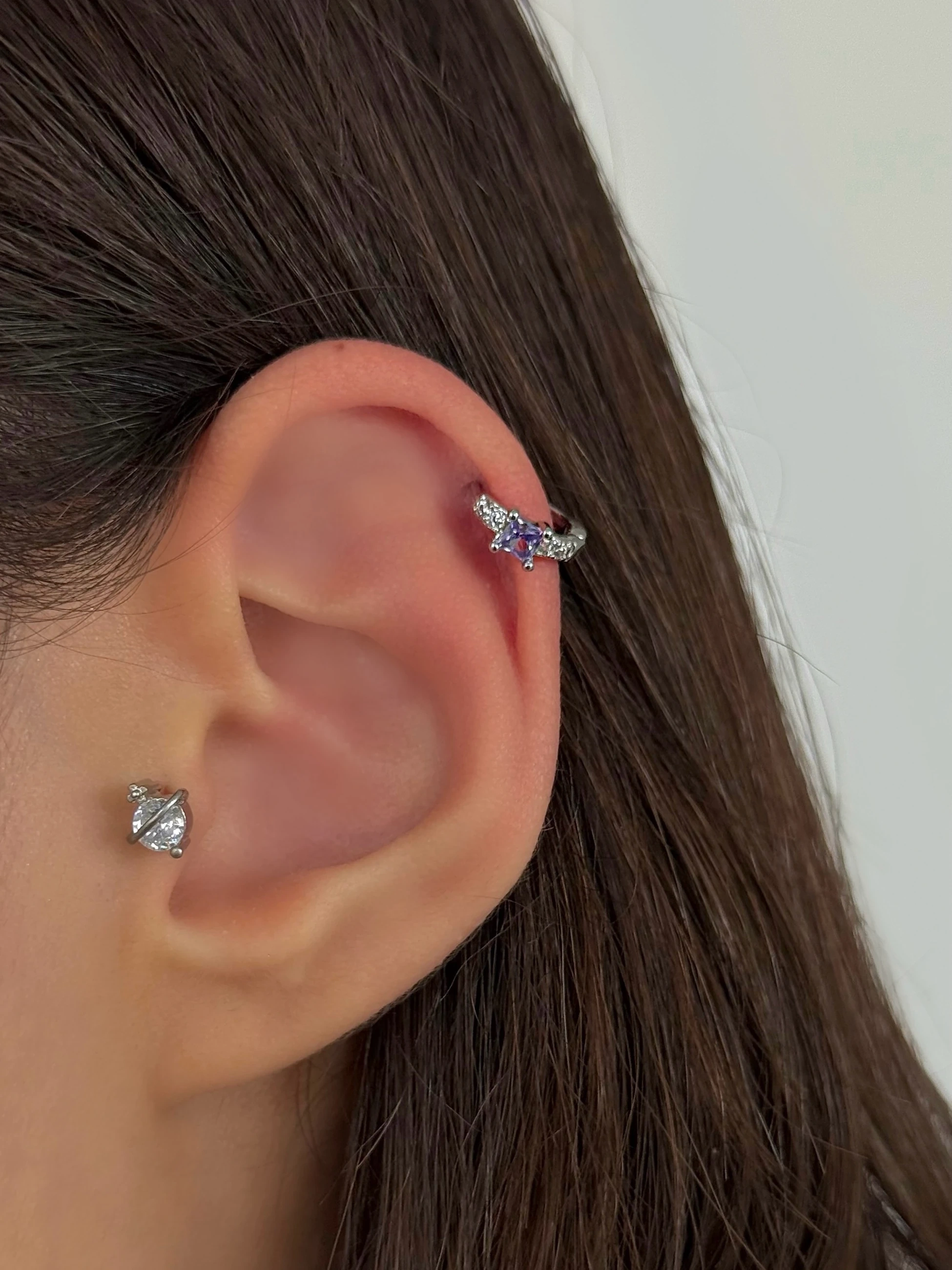 Çelik Silver Mor Taşlı Halka Piercing