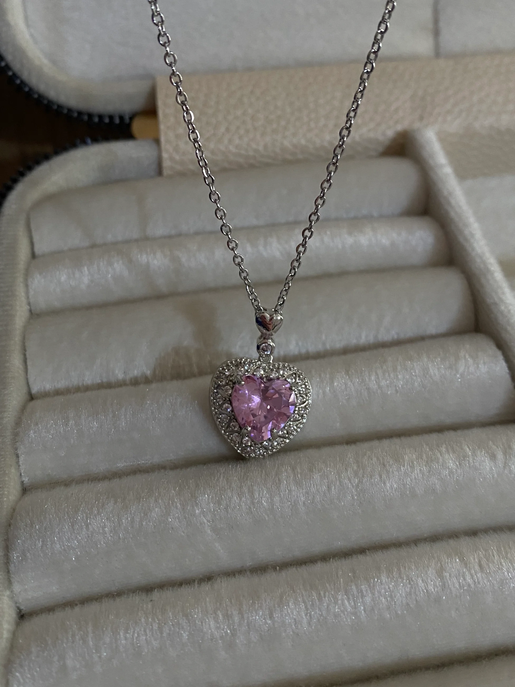 Çelik Silver Pembe Taşlı Kalp Kolye