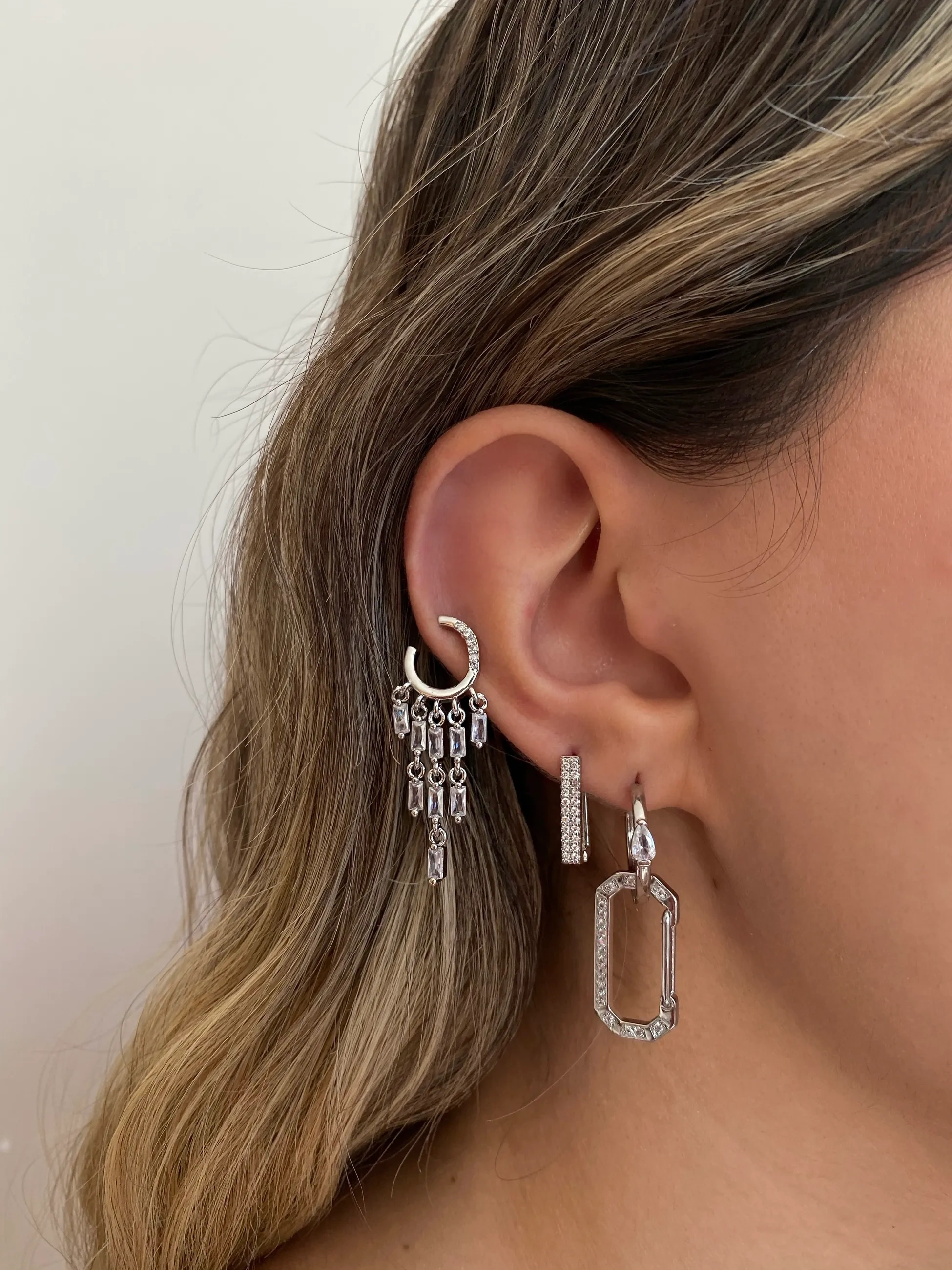 Silver Sallantılı 3 Lü Küpe Seti