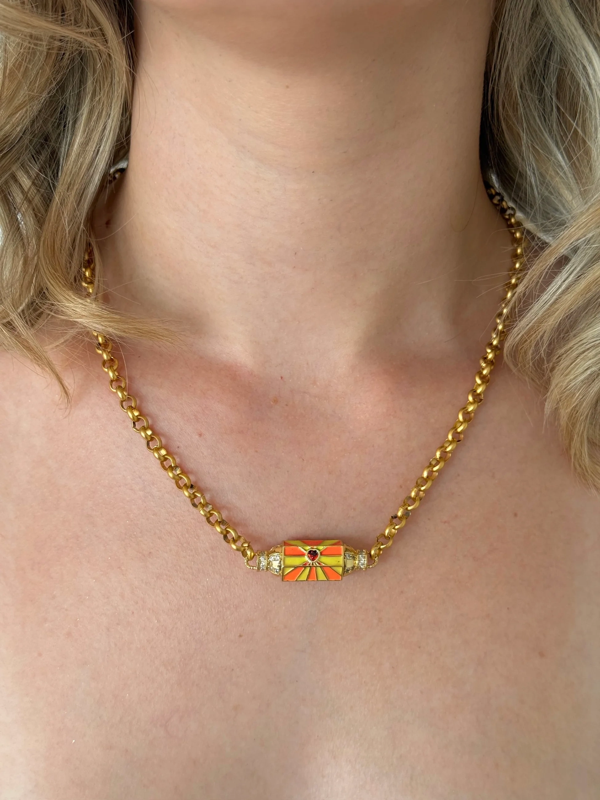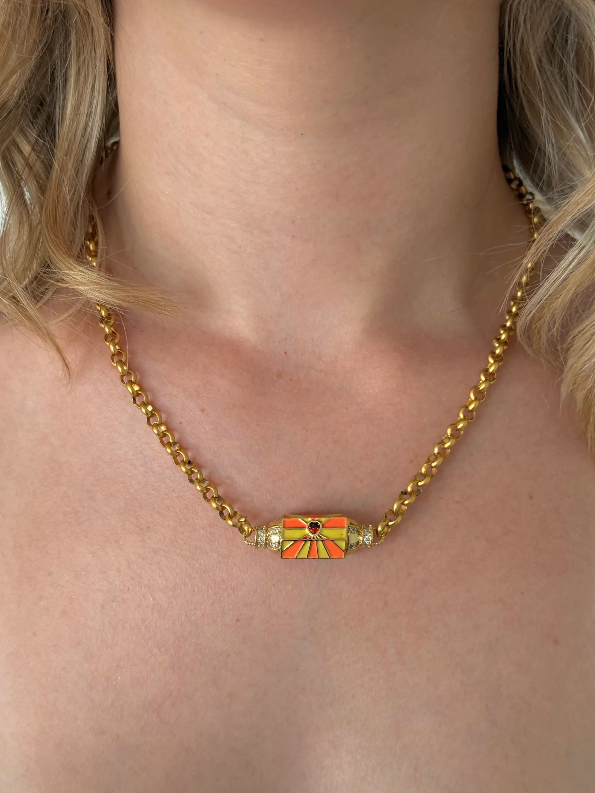 Çelik Turuncu Sarı Şans Kolye