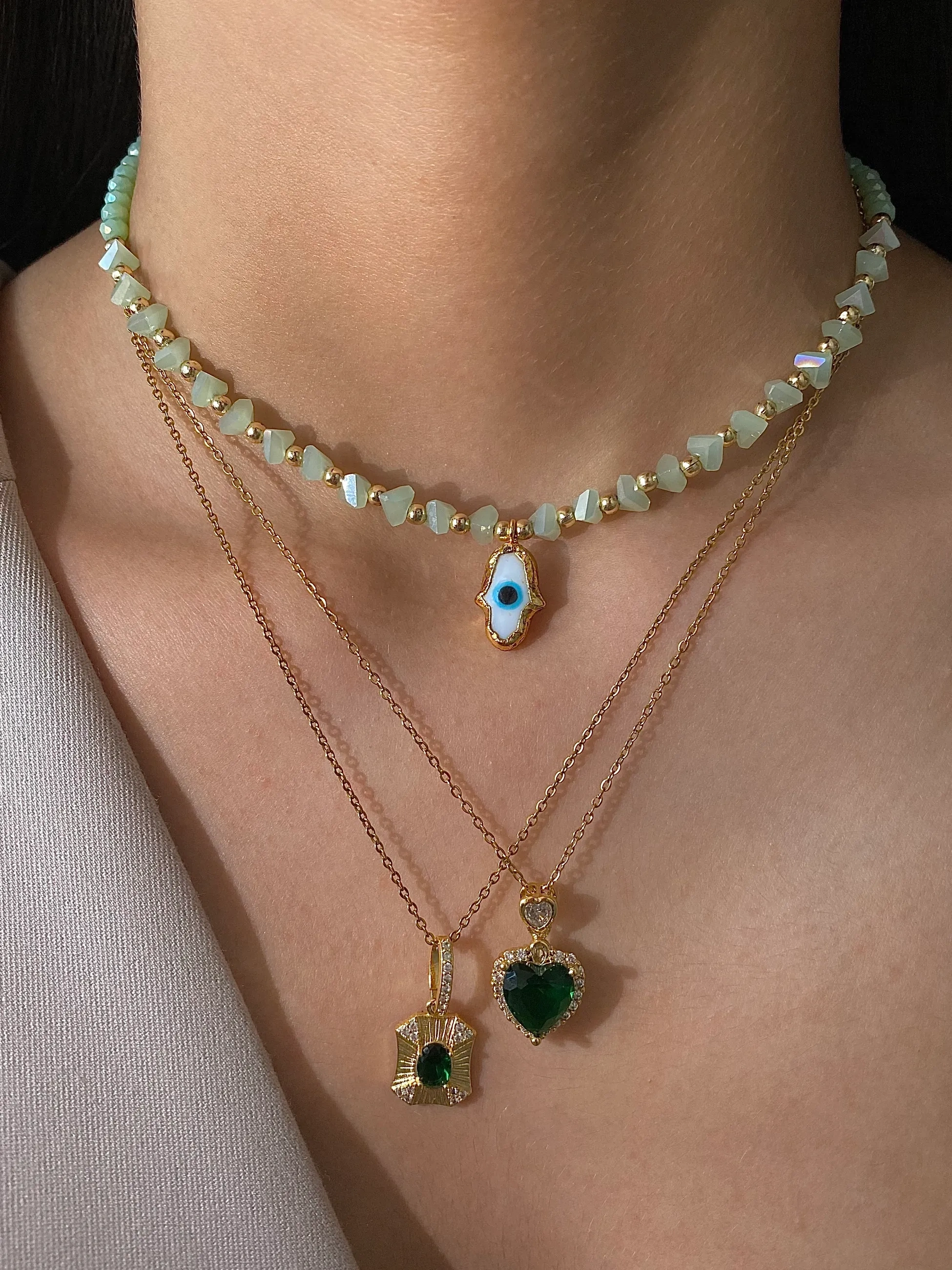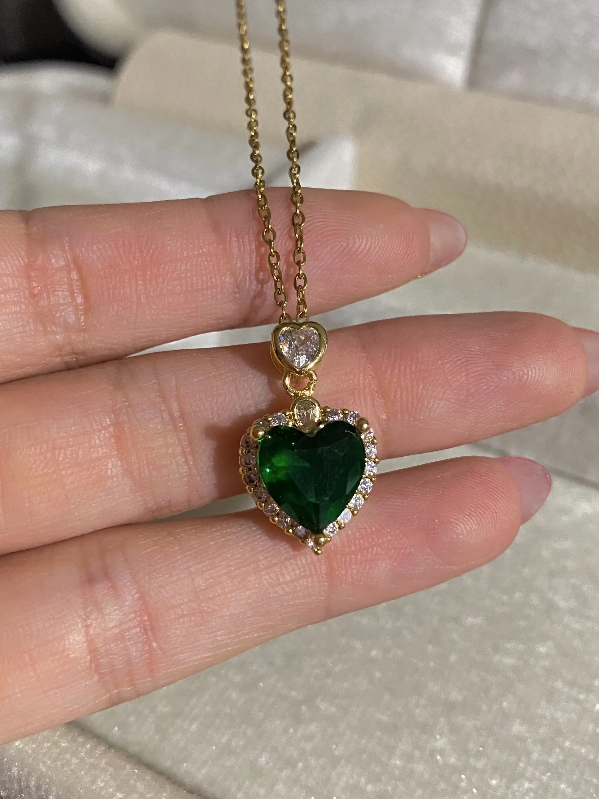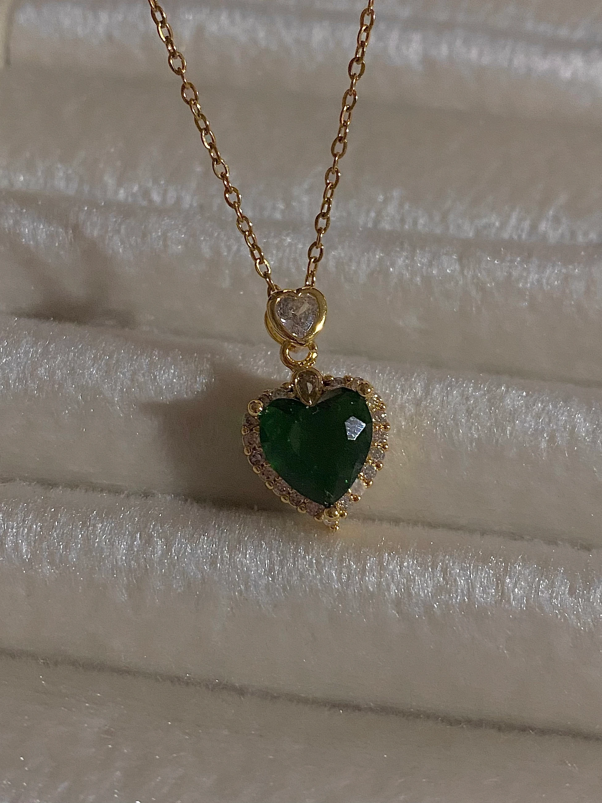 Çelik Yeşil Taşlı Kalp Kolye