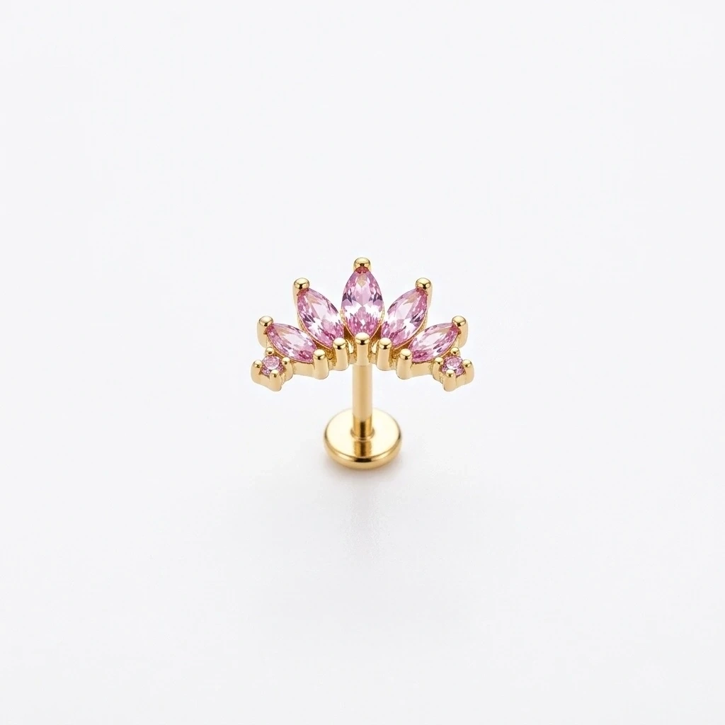 Cerrahi Çelik Pembe 7 Taşlı Piercing