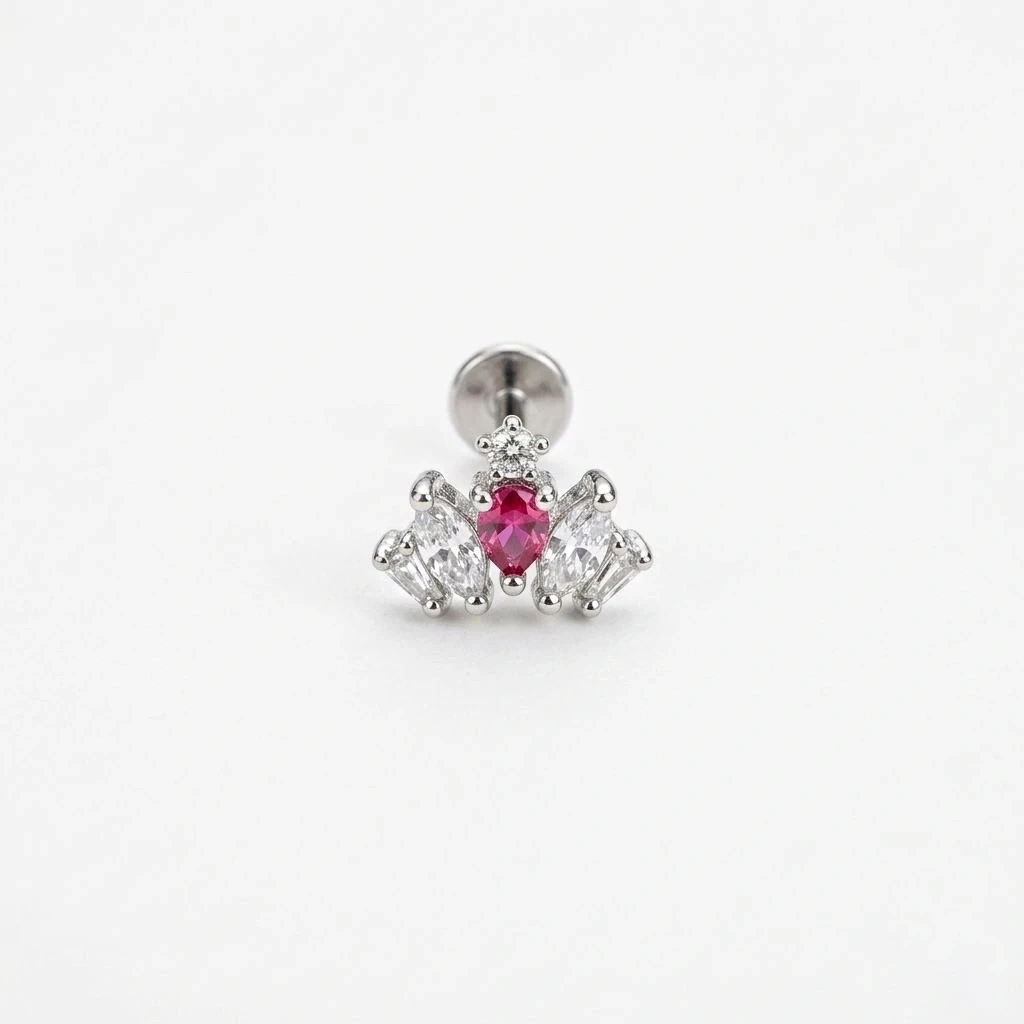 Cerrahi Çelik Silver Fuşya Piercing