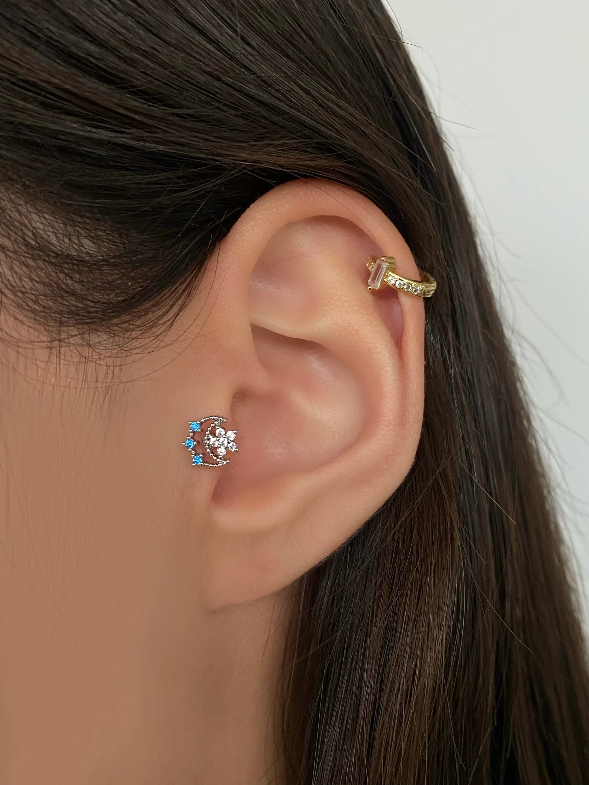 Cerrahi Çelik Silver Mavi Hilal Tragus Piercing